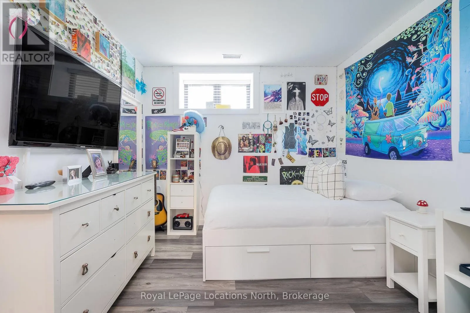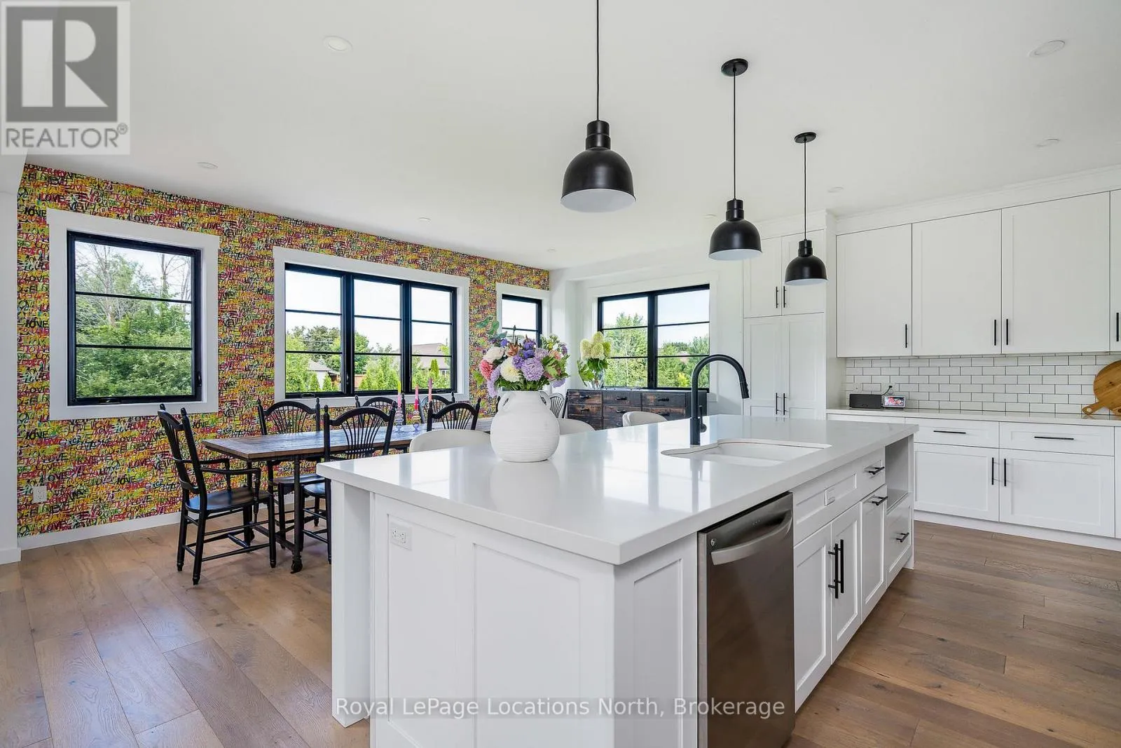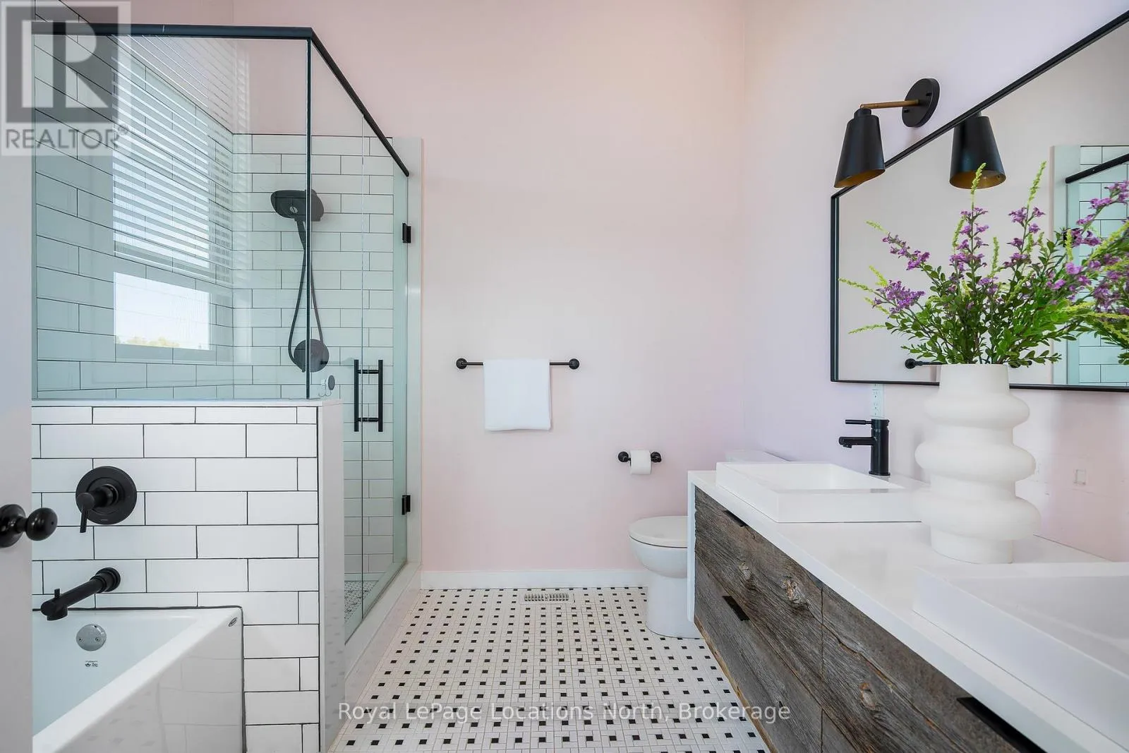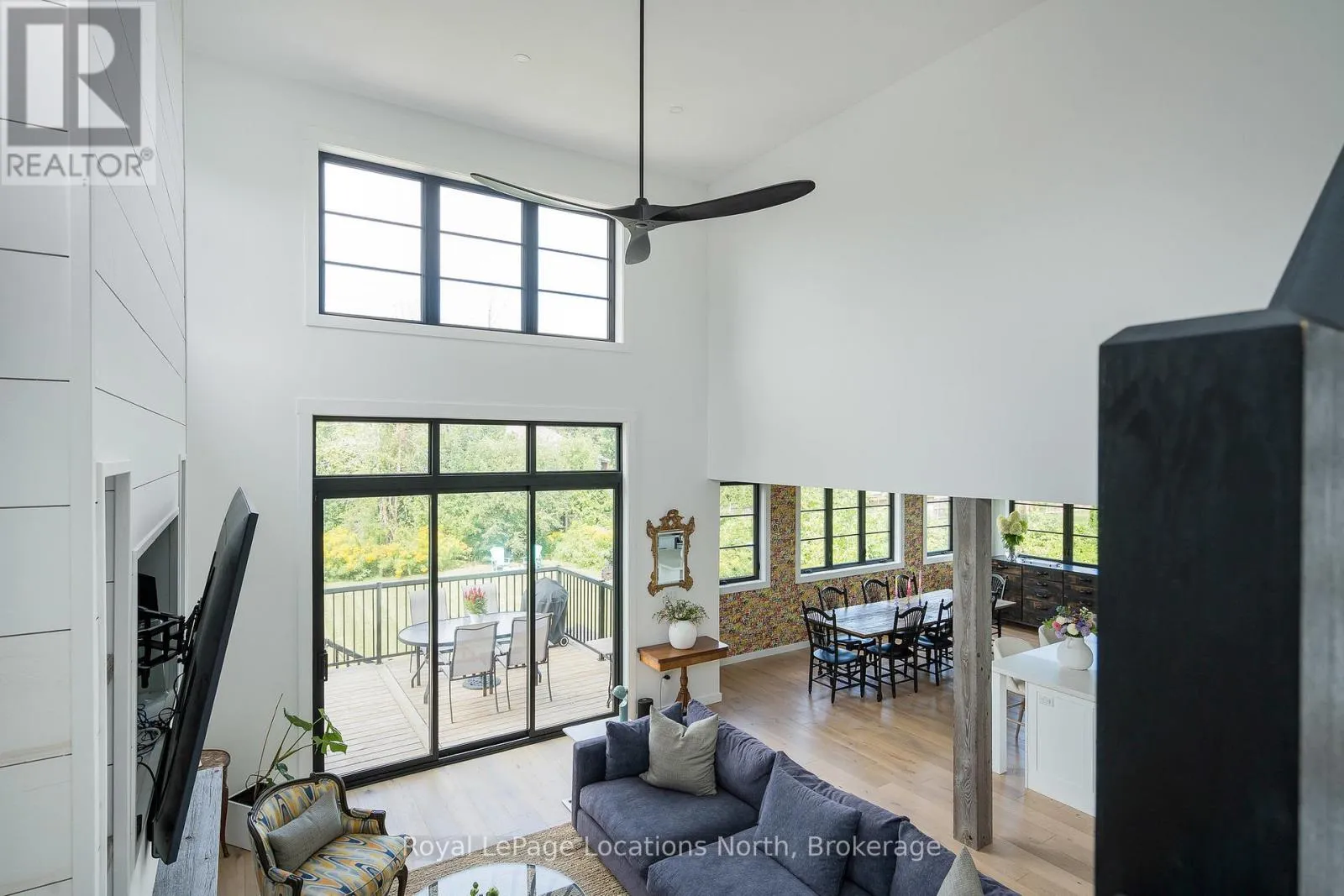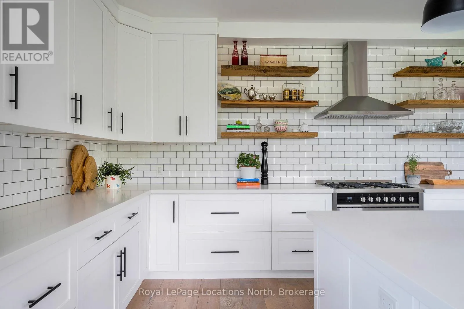 Cross Streets: Hurontario & Stanley Streets. ** Directions: Hurontario Street to west on Stanley Street, arrive at 49 Stanley. Welcome to one of Collingwood's most exclusive addresses, where elegance and comfort blend seamlessly in this custom-built two-storey home. Set on an impressive 66 x 167 ft full town lot, this residence offers over 3,700 sq ft of beautifully finished living space, with 5 bedrooms and 4 bathrooms designed for modern family living and entertaining. From the moment you step inside, soaring ceilings and sun-filled windows create a sense of openness and light. The main floor showcases wide-plank white oak engineered hardwood and thoughtful details throughout. At the heart of the home, the gourmet kitchen invites gathering with its quartz countertops, oversized island, and high-end appliances. The living room makes a statement with its dramatic 20-ft ceiling, cozy gas fireplace, and expansive sliding doors that lead to a private and peaceful backyard. Upstairs, retreat to the luxurious primary suite with remote-controlled blinds, a spacious walk-in closet, and a spa-inspired ensuite featuring double sinks, glass shower, and soaker tub. Two additional spacious bedrooms share a stylish Jack & Jill bathroom, perfect for family or guests. The fully finished lower level extends the living space with a generous recreation room, two more bedrooms, and a five-piece bath. Modern touches like shiplap and barnboard accents bring warmth and character throughout. Outdoors, enjoy a two-tiered deck and hot tub surrounded by nature. The large, private yard would be perfect for a pool. With amazing neighbours, a walkable location to Collingwood's best schools and downtown, and endless style and comfort, this home is truly a must see. (id:27476)