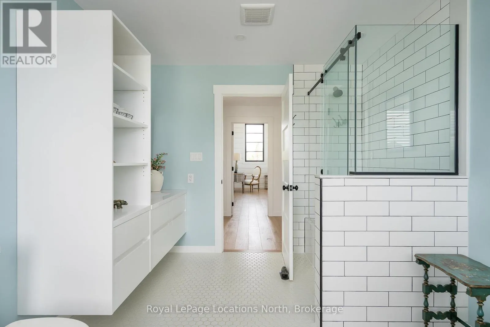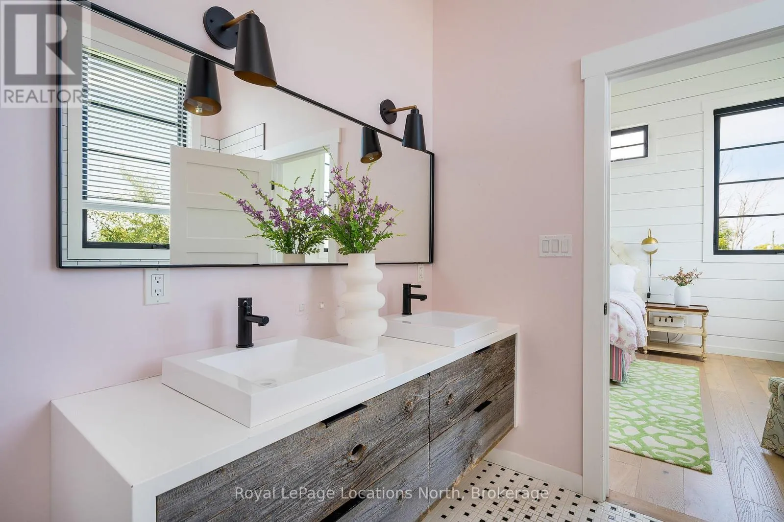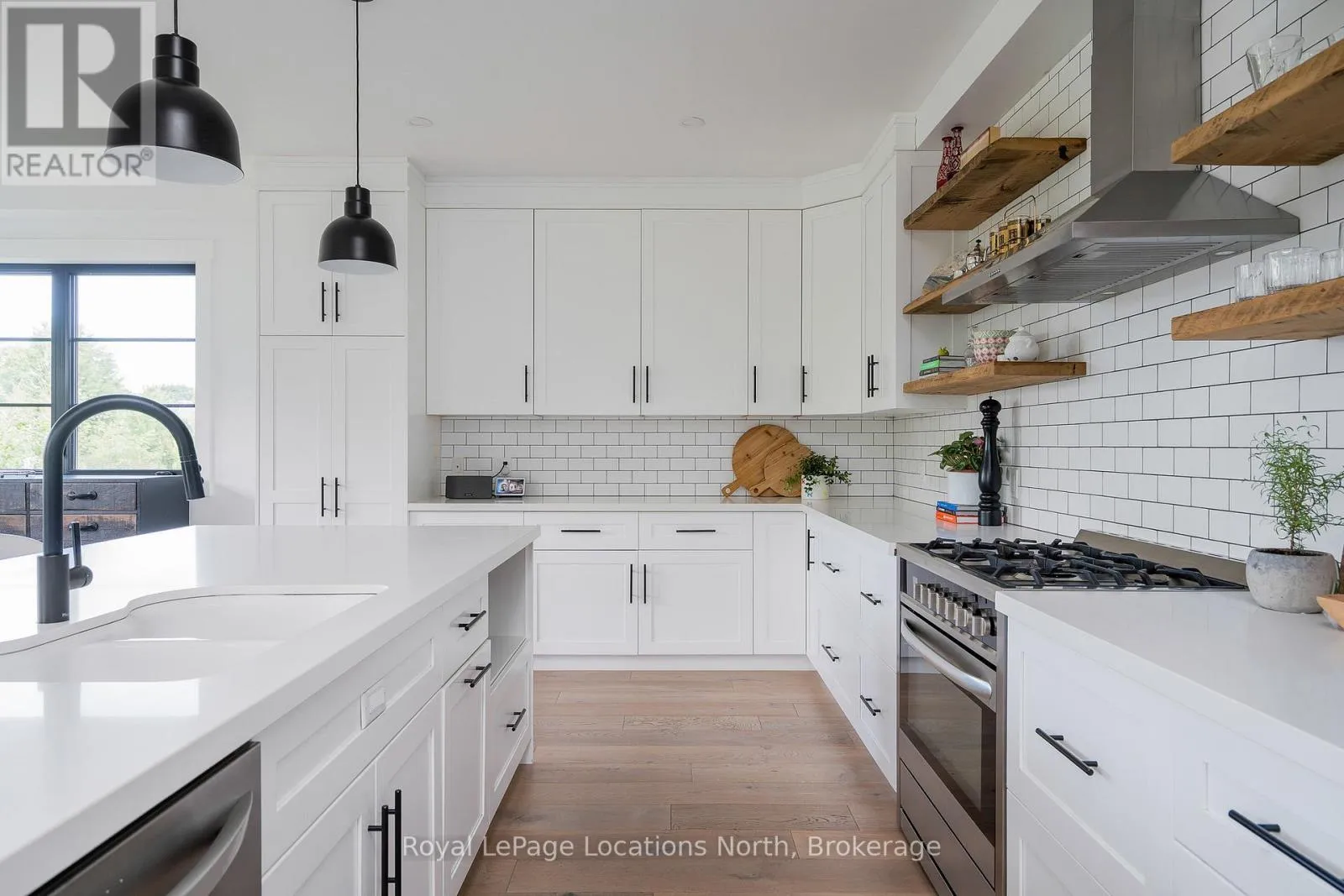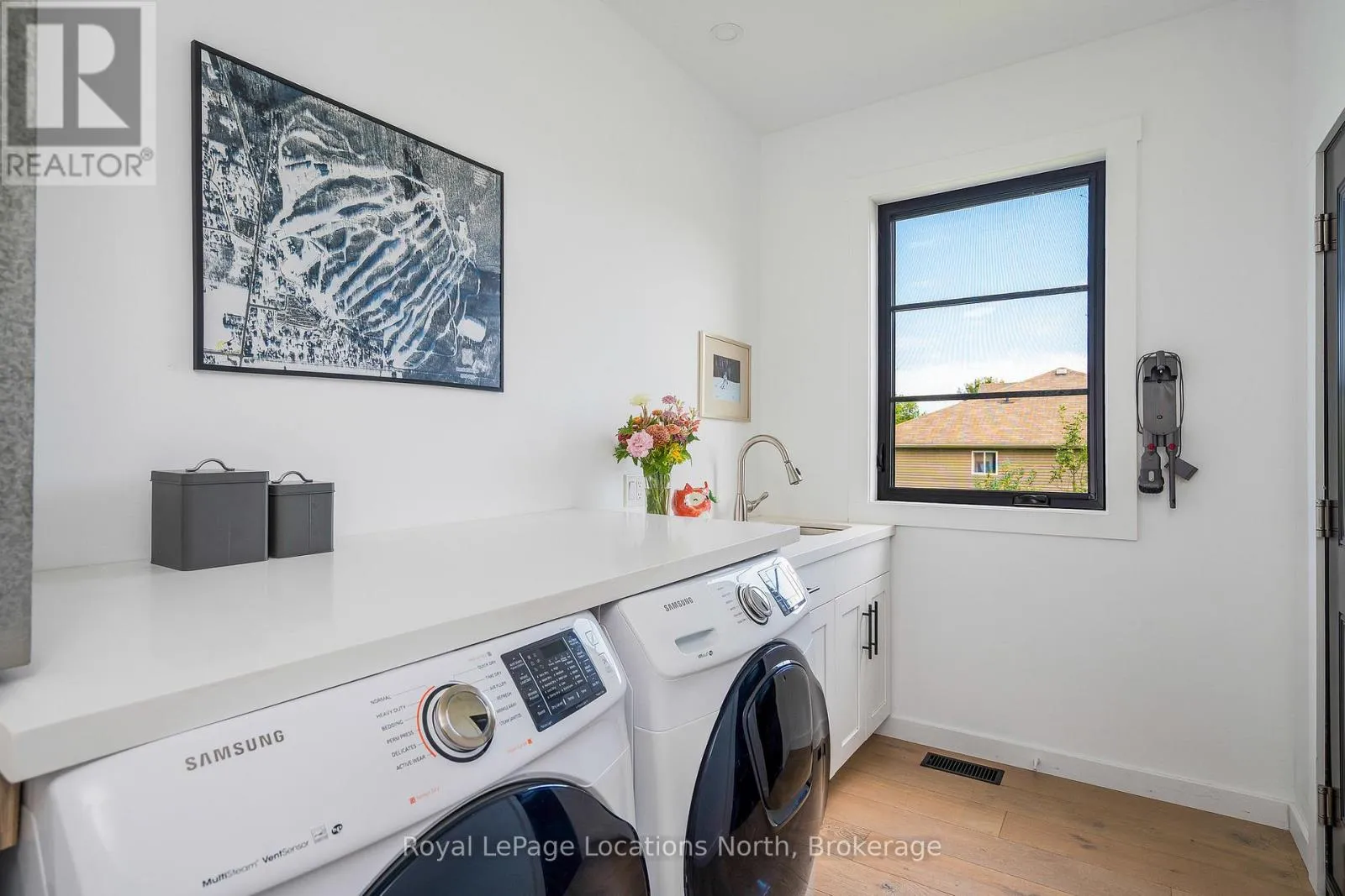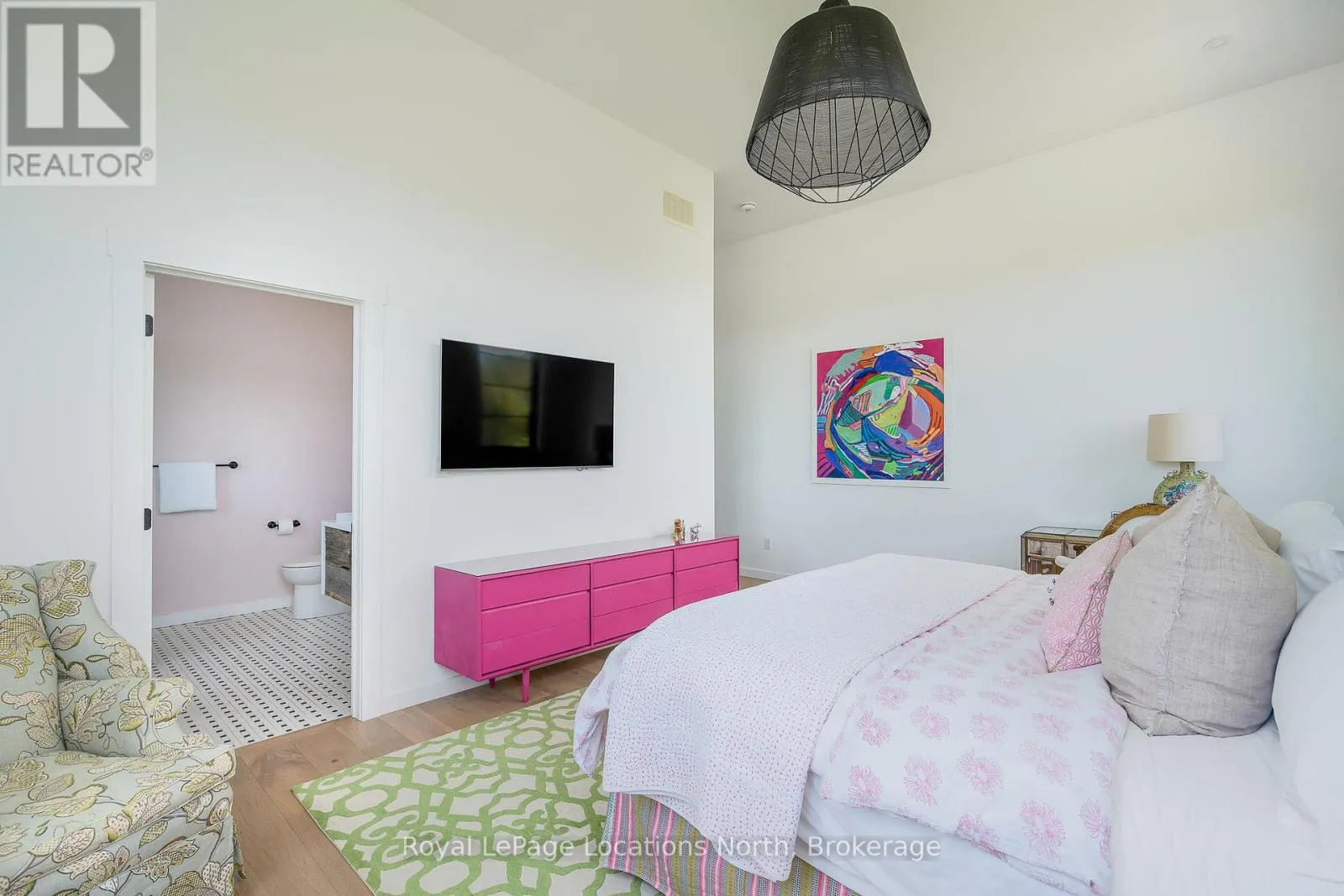 Cross Streets: Hurontario & Stanley Streets. ** Directions: Hurontario Street to west on Stanley Street, arrive at 49 Stanley. Welcome to one of Collingwood's most exclusive addresses, where elegance and comfort blend seamlessly in this custom-built two-storey home. Set on an impressive 66 x 167 ft full town lot, this residence offers over 3,700 sq ft of beautifully finished living space, with 5 bedrooms and 4 bathrooms designed for modern family living and entertaining. From the moment you step inside, soaring ceilings and sun-filled windows create a sense of openness and light. The main floor showcases wide-plank white oak engineered hardwood and thoughtful details throughout. At the heart of the home, the gourmet kitchen invites gathering with its quartz countertops, oversized island, and high-end appliances. The living room makes a statement with its dramatic 20-ft ceiling, cozy gas fireplace, and expansive sliding doors that lead to a private and peaceful backyard. Upstairs, retreat to the luxurious primary suite with remote-controlled blinds, a spacious walk-in closet, and a spa-inspired ensuite featuring double sinks, glass shower, and soaker tub. Two additional spacious bedrooms share a stylish Jack & Jill bathroom, perfect for family or guests. The fully finished lower level extends the living space with a generous recreation room, two more bedrooms, and a five-piece bath. Modern touches like shiplap and barnboard accents bring warmth and character throughout. Outdoors, enjoy a two-tiered deck and hot tub surrounded by nature. The large, private yard would be perfect for a pool. With amazing neighbours, a walkable location to Collingwood's best schools and downtown, and endless style and comfort, this home is truly a must see. (id:27476)
