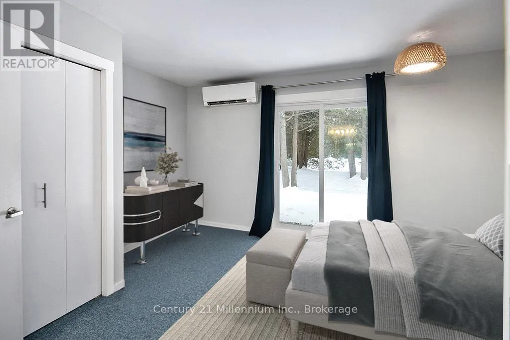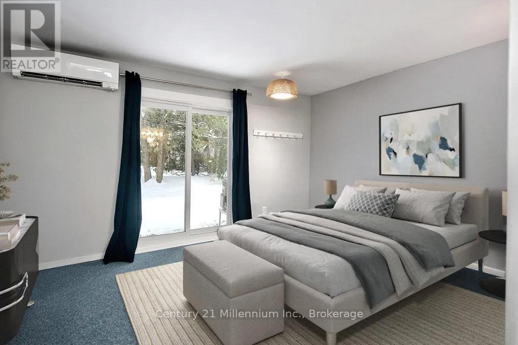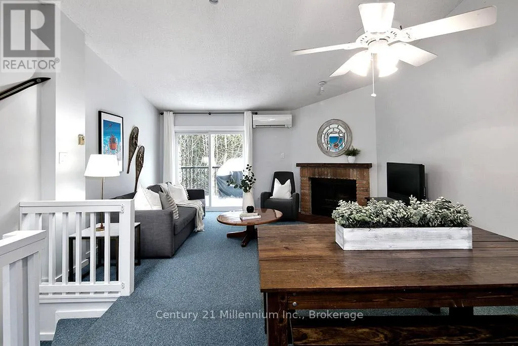 Cross Streets: Oxbow Cres & Dawson Drive. ** Directions: From downtown Collingwood, head towards Craigleith on Highway 26, turn left on Keith Street, Right on Dawson, Left on Oxbow to number 479. The perfect home or getaway in Collingwood - Ontario's Four Season playground. This remarkable condo townhome is located in Living Stone Community (formerly Cranberry) - close to waterfront, trails, golf, beaches and ski hills. Enjoy a reverse floor plan with a bright and open upper main floor - featuring vaulted ceilings with a sky light, a cozy wood burning fireplace, and a large private balcony backing onto mature trees. The ground floor offers two sizeable bedrooms and two updated four-piece bathrooms with a recently installed walkout to your private deck from the primary bedroom. Ample storage is available under the stairs and in your exterior personal shed. Control your temperature efficiently with 2 recently installed ductless cooling and heat pump systems - one on each level, plus baseboard heaters for backup. A rare opportunity for a lovingly maintained home with reasonable condo fees, a well managed community, visitor parking, and beautiful, mature trees surrounding the property. Available partially furnished. Your Collingwood Lifestyle awaits! (id:27476)