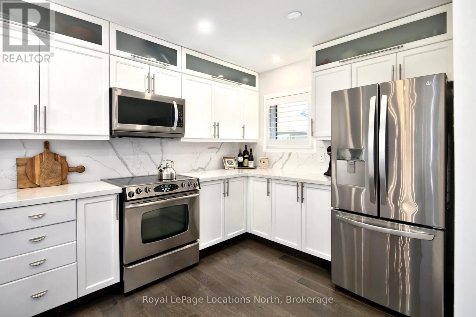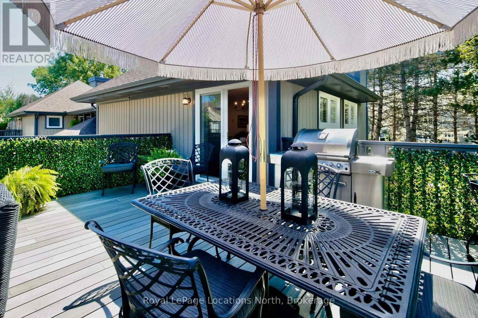 HWY 26 towards Thornbury, turn right at the lights onto Lighthouse Lane, then first right onto Mariners Way - property is on your right 417. QUICK CLOSING AVAILABLE! Stunning Lighthouse Point condo with rare oversized deck!Beautifully upgraded 3-bedroom, 2-bathroom condo with the perfect blend of comfort, style, and resort-style living-just steps from Georgian Bay in one of Collingwood's most sought-after waterfront communities.The bright open-concept layout features a spacious living, dining, and kitchen area ideal for entertaining. The kitchen boasts sleek waterfall quartz countertops and backsplash, a breakfast bar with space for seating, and abundant storage. The dining room opens directly to the incredible private deck-one of only 14 in the entire development-perfect for summer dining, lounging, and hosting friends. The living room is highlighted by a stone-surround gas fireplace and large windows that food the space with natural light.The primary suite includes a walk-in closet with built ins and a stylish 3pc ensuite, while two additional bedrooms and a second bathroom provide plenty of space for family or guests. A separate 270sqft garage adds convenience and additional storage.Enjoy the resort lifestyle Lighthouse Point is known for, with access to 3 pools, 2 hot tubs, 6 state of the art pickleball courts, tennis courts, a gym, 2 beaches, walking trails, a marina, and a clubhouse-all just minutes from downtown Collingwood, Blue Mountain, and private ski and golf clubs.Looking for a low maintenance home in a desirable Collingwood community? This is the perfect place for a summer getaway, winter weekend home or year round retreat.Monthly condo fee:$921.89 (subject to change) (id:27476)