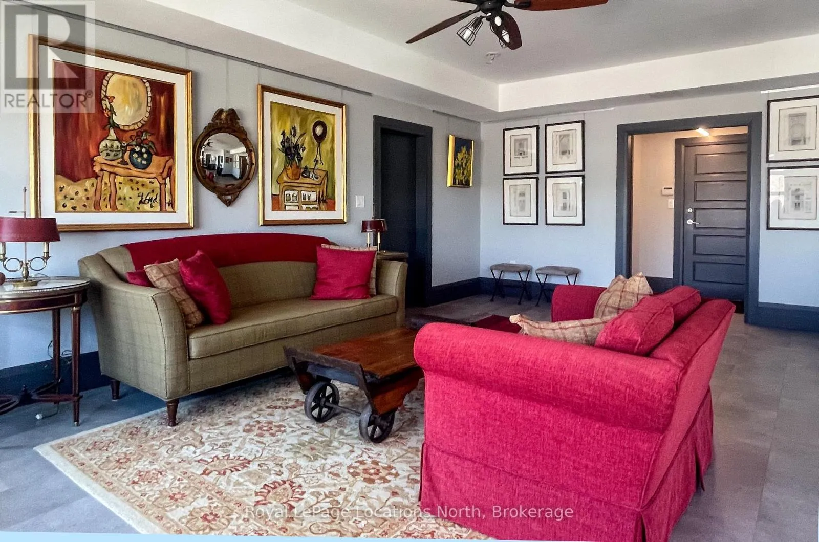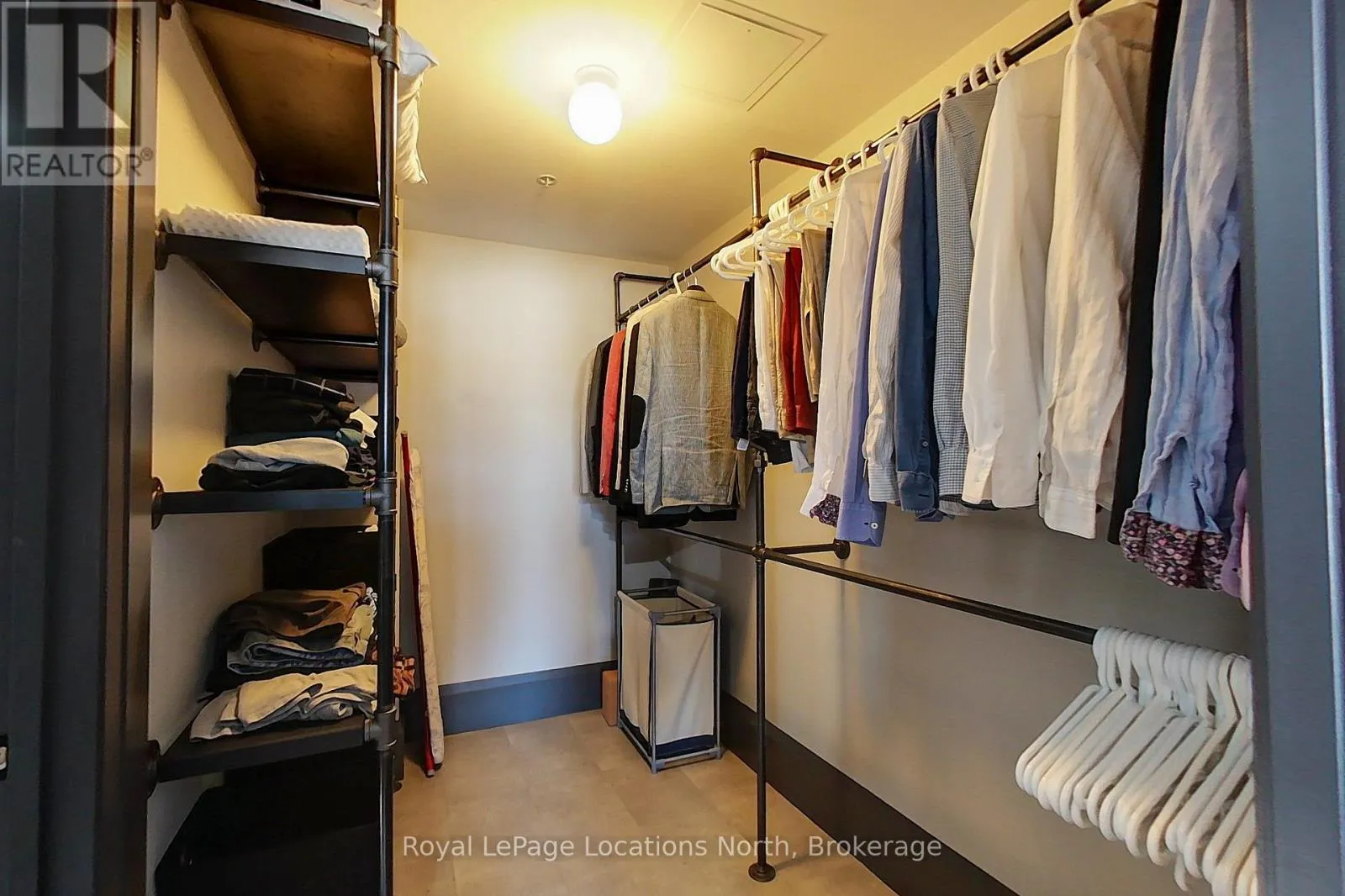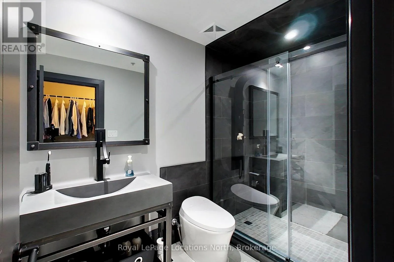 Cross Streets: North Pine St/Shipyard Lane. ** Directions: First St to North Pine St to Shipyard Lane. PENTHOUSE CONDO IN THE SHIPYARDS - Side Launch Building. Enjoy year-round views of the Escarpment. The FOUNDRY, as it was named by the architects, a 1,050 (approx.) square foot, one-bedroom condo, with 1.5 bathrooms, has been reimagined and completely renovated by KDT designs. Its unique minimalist style maximizes space and light. Steel clad cabinetry, custom concrete bathroom sinks, open concept closets, and new concrete style flooring create a calm, clean, airy environment from which to watch the Escarpments changing seasons. Did we mention you can view them from inside, in front of the fire during the winter, or from one of your two balconies during the summer? New Samsung appliances, a smart toilet in the ensuite, and a new, owned HW tank, complete this move in ready condominium. The SIDELAUNCH building is a secure, well-maintained building. The buildings main floor has a renovated social room with a full kitchen, dining and sitting area with a TV, and an outdoor dining and BBQ area. The elevator takes you to/from your unit on the third floor, and the underground parking garage where you have a dedicated parking space, and storage locker, along with a common bike and kayak storage room. (id:27476)
