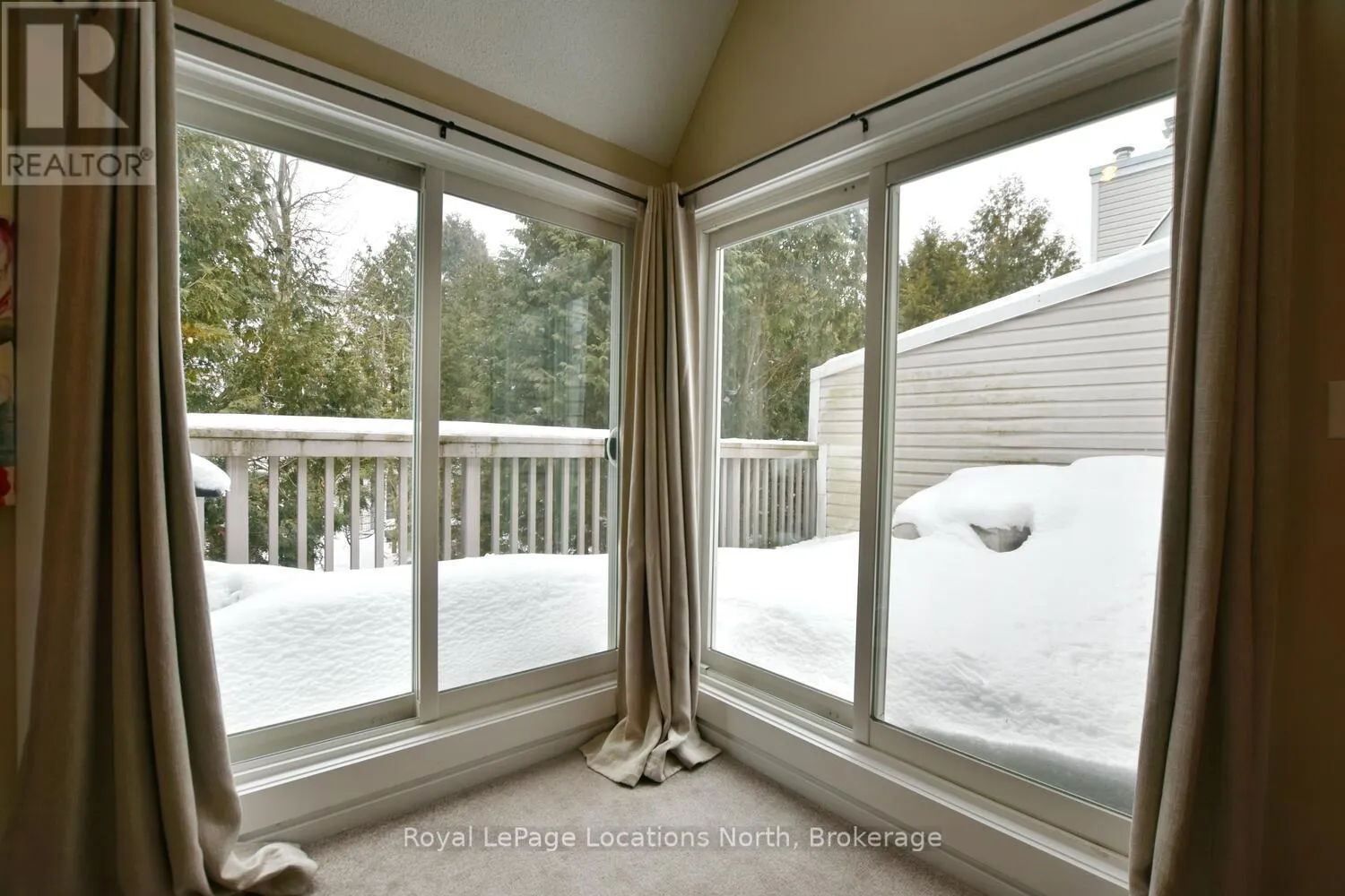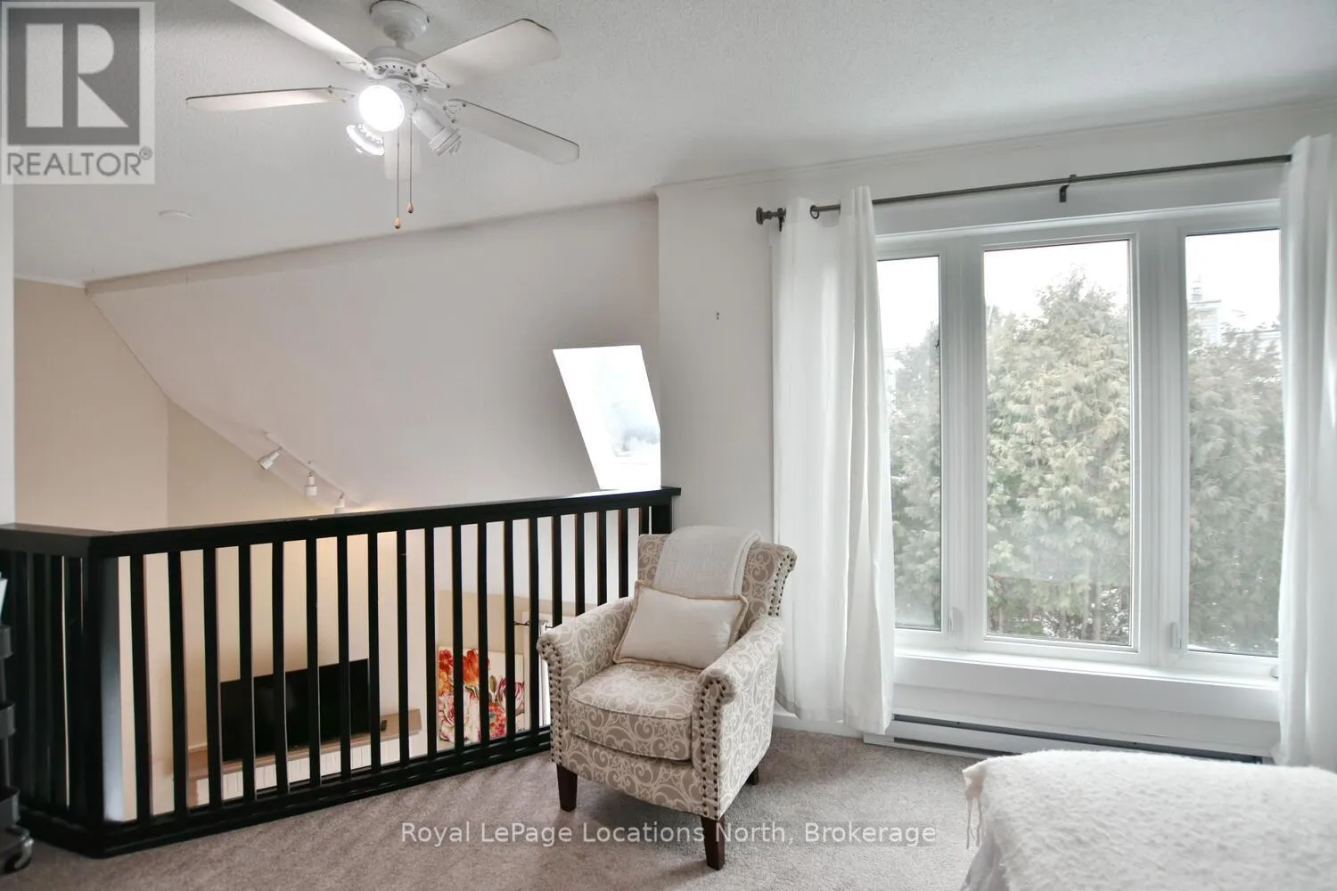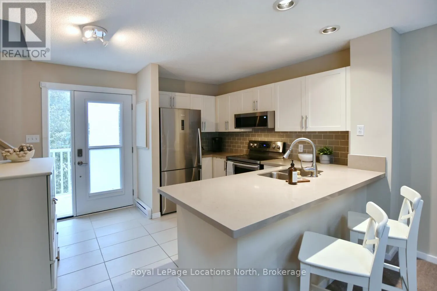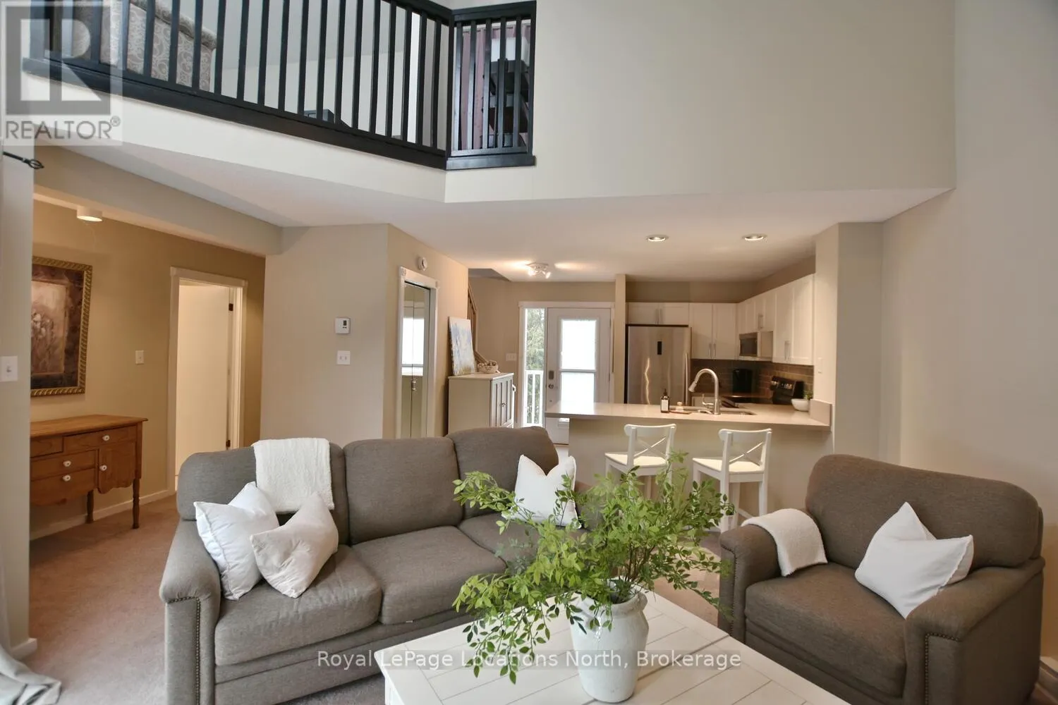 Hwy 26 to Trott Blvd Welcome to this beautifully updated 2 bedroom, 2 bathroom condo nestled in one of Collingwood's most desirable and peaceful settings. Perfectly positioned close to the water, ski hills, scenic trails, and vibrant downtown, this home offers the ideal balance of privacy, convenience, and four-season living. Set well away from traffic noise, the unit enjoys a quiet, treed backdrop with a large private deck overlooking mature trees - an ideal space to relax, entertain, or simply enjoy the natural surroundings. Whether sipping morning coffee or unwinding after a day on the trails, this outdoor area adds exceptional value and tranquility. Inside, the open-concept layout is bright and inviting, enhanced by vaulted ceilings that create a spacious and airy feel. Large windows flood the space with natural light, making the living areas feel warm and welcoming throughout the day. A cozy fireplace anchors the main living space, offering comfort and charm during cooler months. The thoughtfully designed floor plan provides excellent separation of living and sleeping areas. The main floor bedroom features has access to aa full bathroom, creating a private retreat, while the unique lofted second bedroom adds architectural interest and versatility - perfect for guests, a home office, or a cozy den. Kitchen and main bathroom have been tastefully updated, complementing the home's overall modern yet comfortable aesthetic. Well maintained and move-in ready, this condo is ideal as a full-time residence, weekend escape, or investment opportunity. Enjoy easy access to Georgian Bay, Blue Mountain, local shops, restaurants, and recreational amenities, all while coming home to a quiet, private setting surrounded by nature. A rare opportunity to own a bright, stylish condo in a prime Collingwood location - offering comfort, privacy, and lifestyle in one exceptional package. Book your tour now! (id:27476)