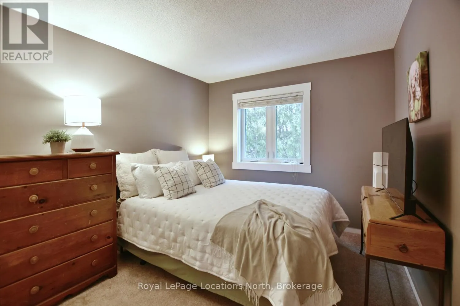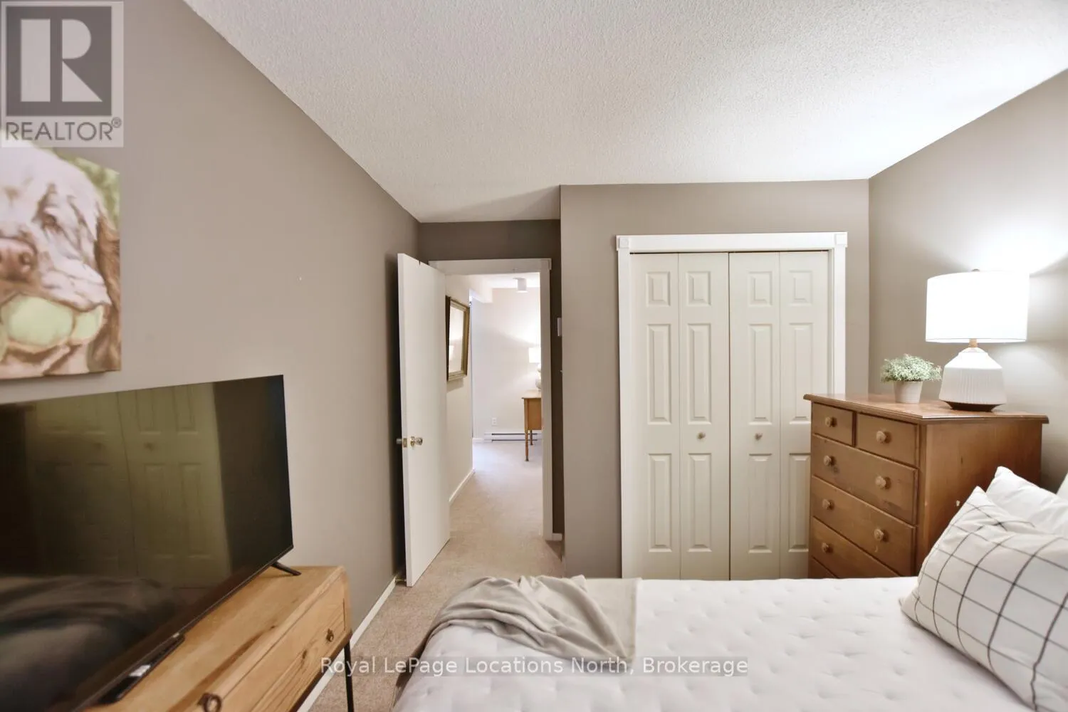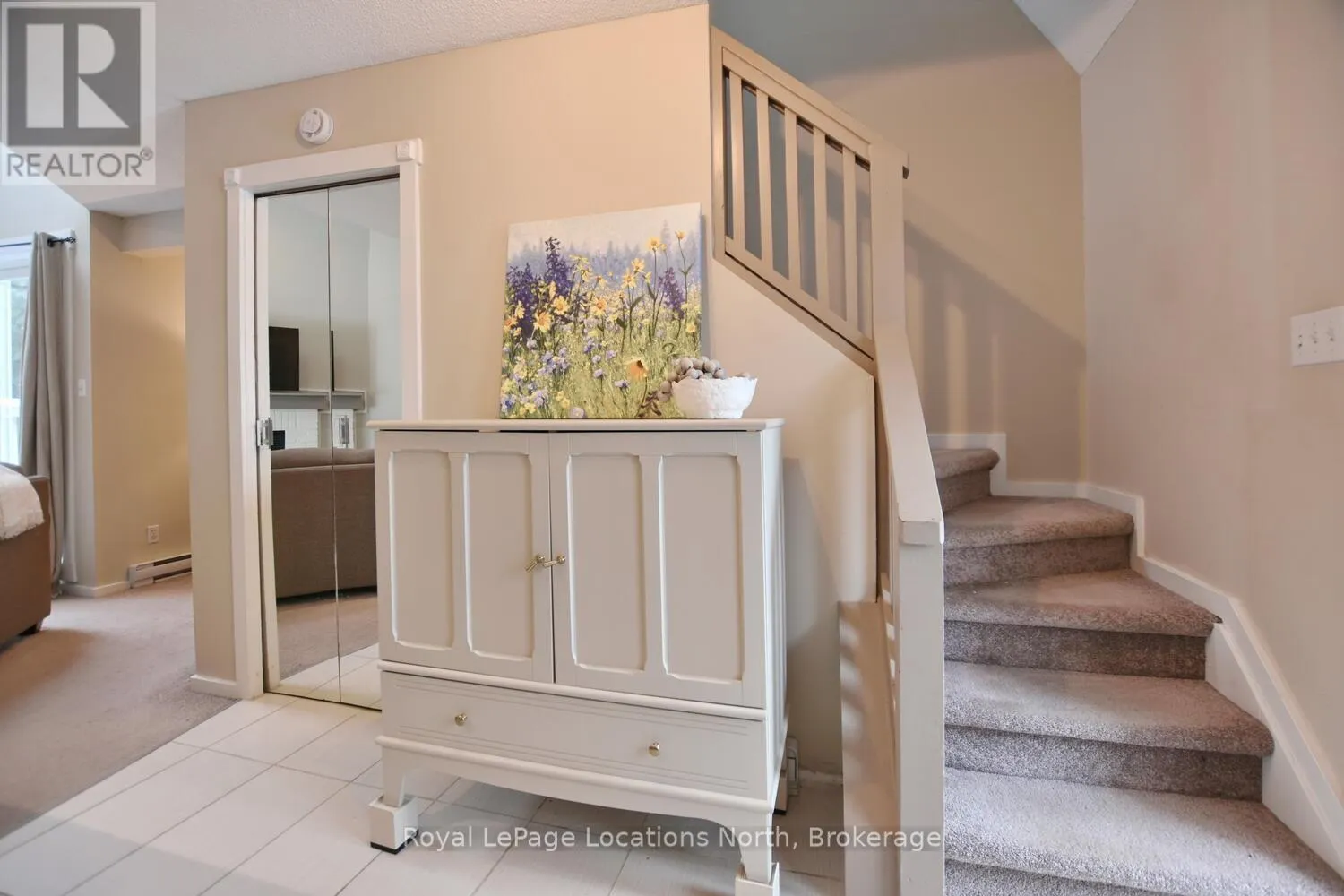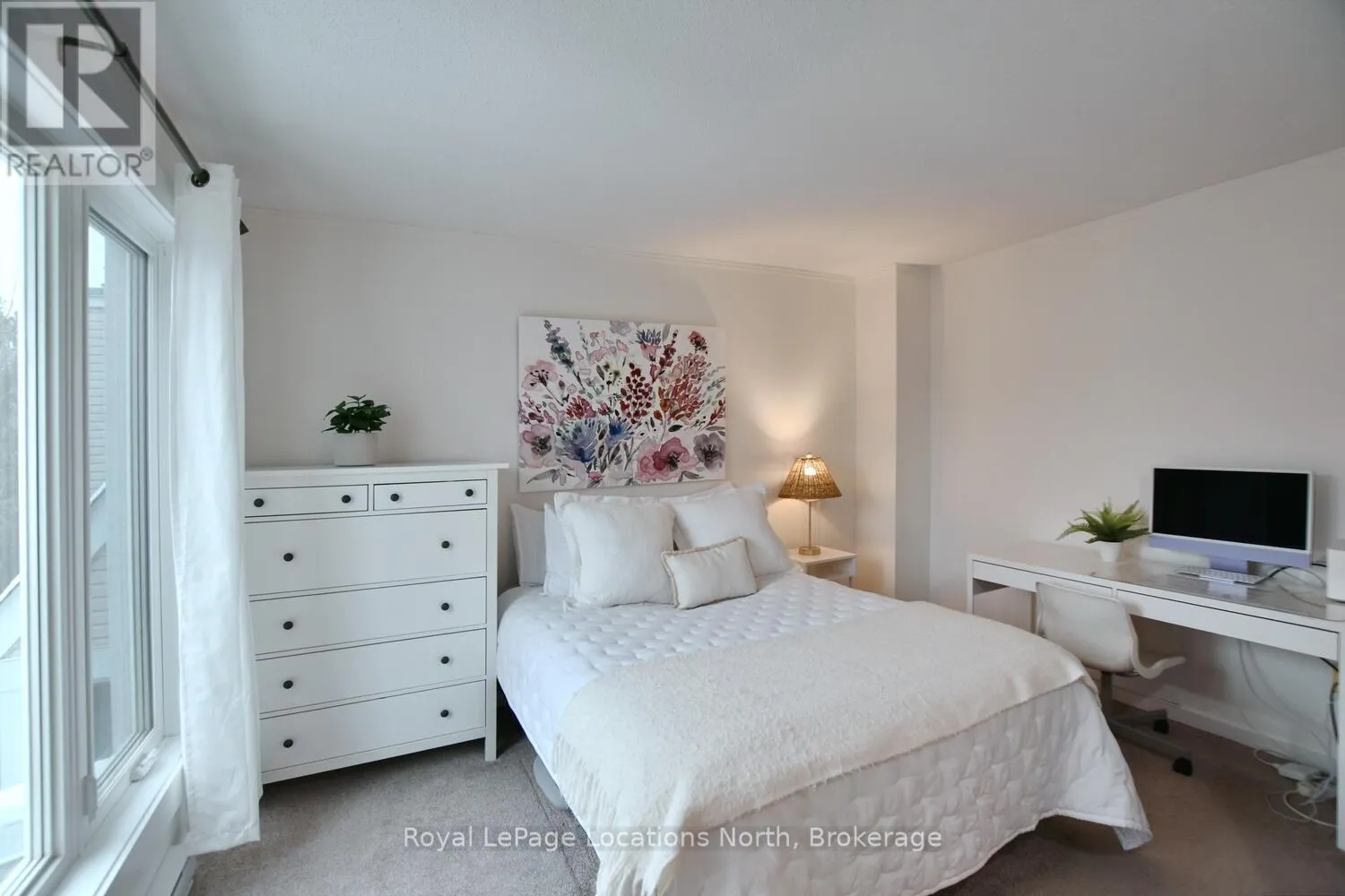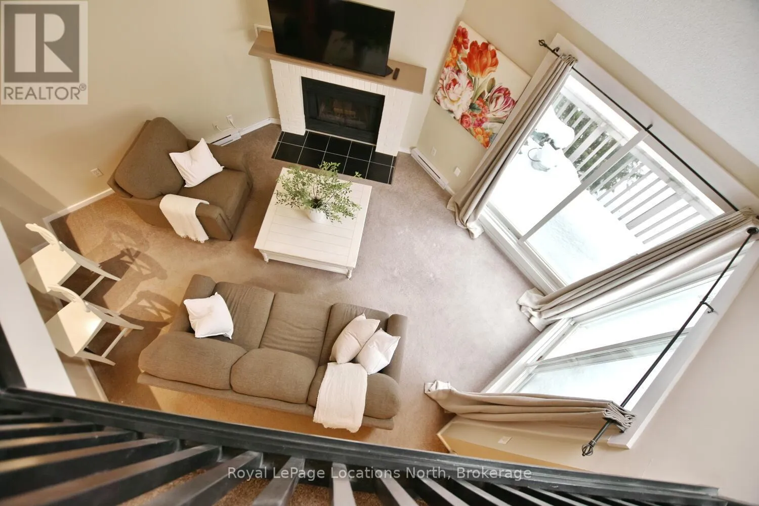 Hwy 26 to Trott Blvd Welcome to this beautifully updated 2 bedroom, 2 bathroom condo nestled in one of Collingwood's most desirable and peaceful settings. Perfectly positioned close to the water, ski hills, scenic trails, and vibrant downtown, this home offers the ideal balance of privacy, convenience, and four-season living. Set well away from traffic noise, the unit enjoys a quiet, treed backdrop with a large private deck overlooking mature trees - an ideal space to relax, entertain, or simply enjoy the natural surroundings. Whether sipping morning coffee or unwinding after a day on the trails, this outdoor area adds exceptional value and tranquility. Inside, the open-concept layout is bright and inviting, enhanced by vaulted ceilings that create a spacious and airy feel. Large windows flood the space with natural light, making the living areas feel warm and welcoming throughout the day. A cozy fireplace anchors the main living space, offering comfort and charm during cooler months. The thoughtfully designed floor plan provides excellent separation of living and sleeping areas. The main floor bedroom features has access to aa full bathroom, creating a private retreat, while the unique lofted second bedroom adds architectural interest and versatility - perfect for guests, a home office, or a cozy den. Kitchen and main bathroom have been tastefully updated, complementing the home's overall modern yet comfortable aesthetic. Well maintained and move-in ready, this condo is ideal as a full-time residence, weekend escape, or investment opportunity. Enjoy easy access to Georgian Bay, Blue Mountain, local shops, restaurants, and recreational amenities, all while coming home to a quiet, private setting surrounded by nature. A rare opportunity to own a bright, stylish condo in a prime Collingwood location - offering comfort, privacy, and lifestyle in one exceptional package. Book your tour now! (id:27476)