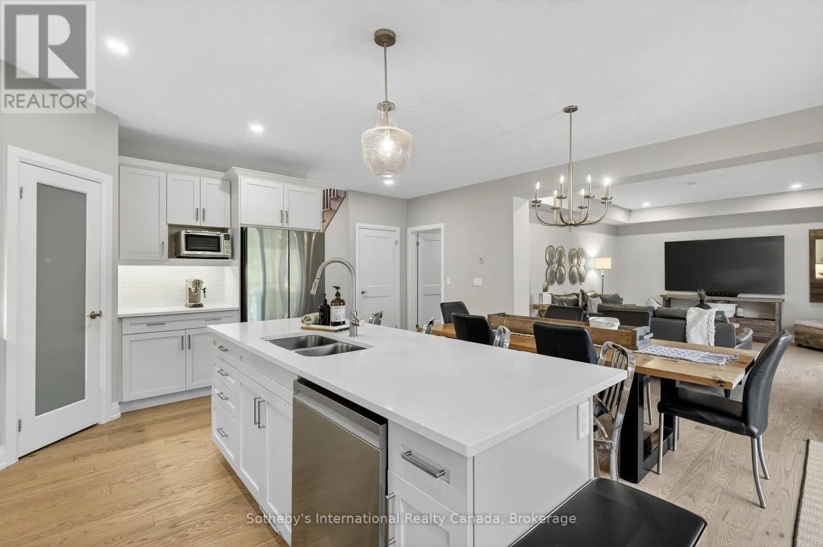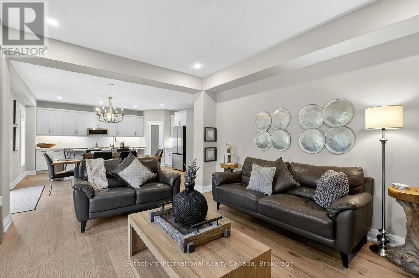 Cross Streets: Plewes between Maiden and Shipley. ** Directions: High Street to Plewes Drive. One-of-a-kind Kensington model on premium lot backing onto town-owned green space in the desirable Summit View neighbourhood. This exceptional family home features a fully finished lower level walk-out in-law suite with separate entrance from the garage, 1 bedroom, family room and wet bar - ideal for extended family or extra space. Main floor boasts an open Great Room seamlessly flowing to the breakfast area and large kitchen with stainless steel appliances, quartz countertops, double sink and oversized island. Main floor den easily adapts as an office or additional bedroom. Upper level offers three generous bedrooms, including a primary bedroom with luxurious 5-piece ensuite. With abundant natural light, plenty of storage, vacusweep, pot lights throughout and a double car garage with inside entry, this home delivers comfort and style. Enjoy the premium lot backing onto green space and family-friendly location just steps to trails and Den Bok Family Park. Book your private showing and prepare to be impressed! (id:27476)