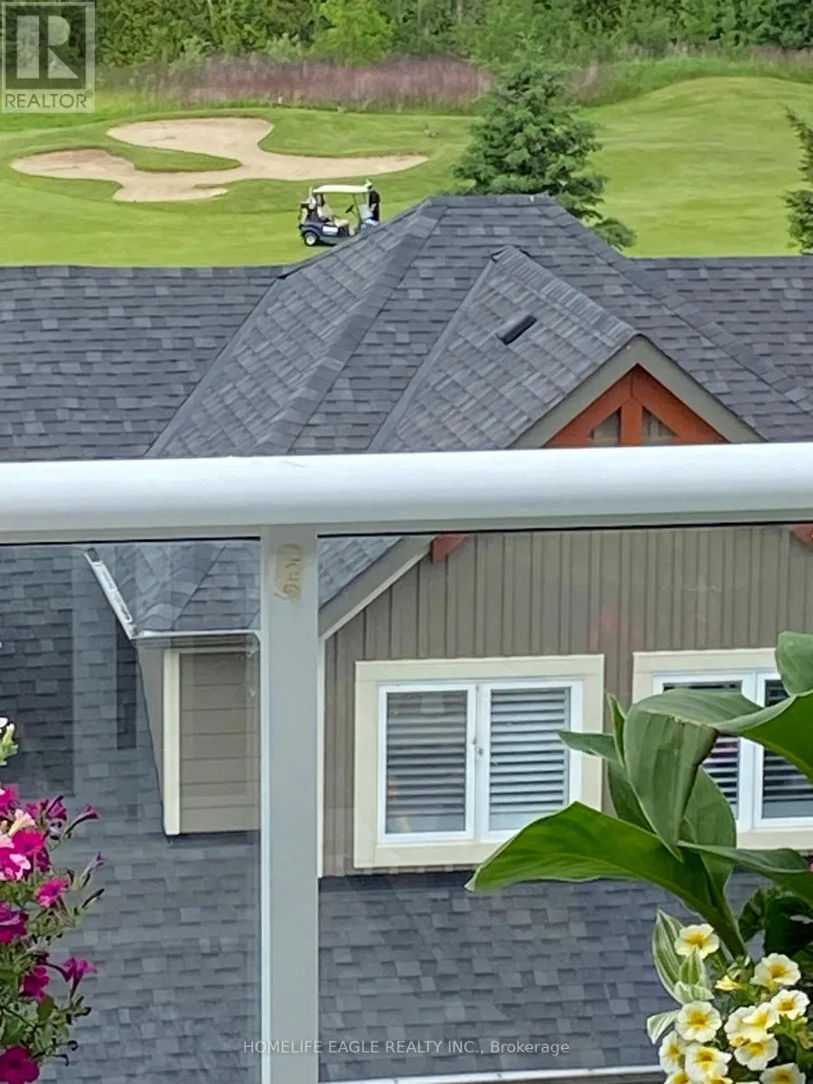 Cross Streets: Hwy 26 to Cranberry Trail. ** Directions: 26/Cranberry Tr. The View - this brand new building in the Cranberry Golf Course community doesn't need an introduction. Top-floor unit with breathtaking views of the golf course and Blue Mountain. This 887 sq. ft. suite features 2 spacious bedrooms, 2 full bathrooms, and a large 17' x 8' terrace balcony with glass railings, BBQ gas line, water bib, light fixture, and electrical outlet - ideal for four-season living. The unit offers upgraded flooring in the main living areas, 9-foot ceilings, smooth ceilings in the kitchen and bathrooms, and California knockdown ceilings throughout. The gourmet kitchen includes granite countertops, under-cabinet lighting, an upgraded under-mount stainless steel sink, gas stove, venting microwave, and brand-new appliances. The primary bedroom features a walk-in closet and ensuite with granite countertop, while the second bedroom includes a regular closet and its own ensuite with granite countertop and a glass walk-in shower. Additional features include an oversized attached storage locker next to the entry door and one indoor parking space. Amenities include an outdoor pool, clubhouse, and gym. Enjoy true bungalow-style, one-level living with self-controlled heating and air conditioning, plus an open-air terrace balcony that feels like a private backyard in the sky. (id:27476)