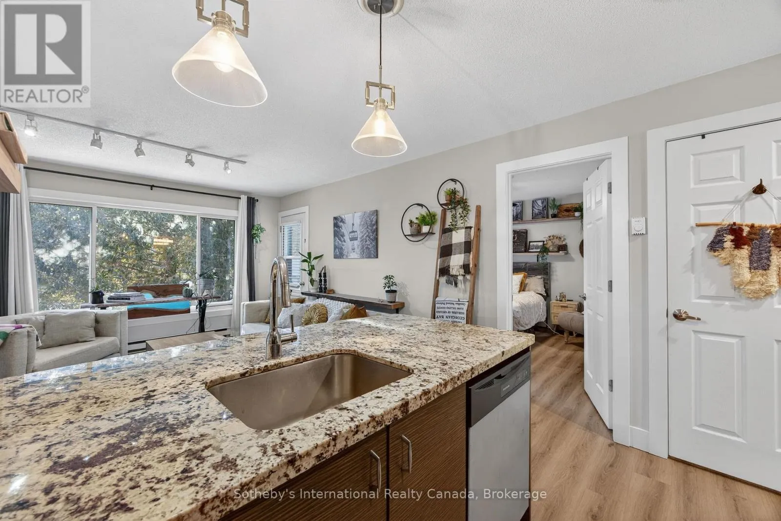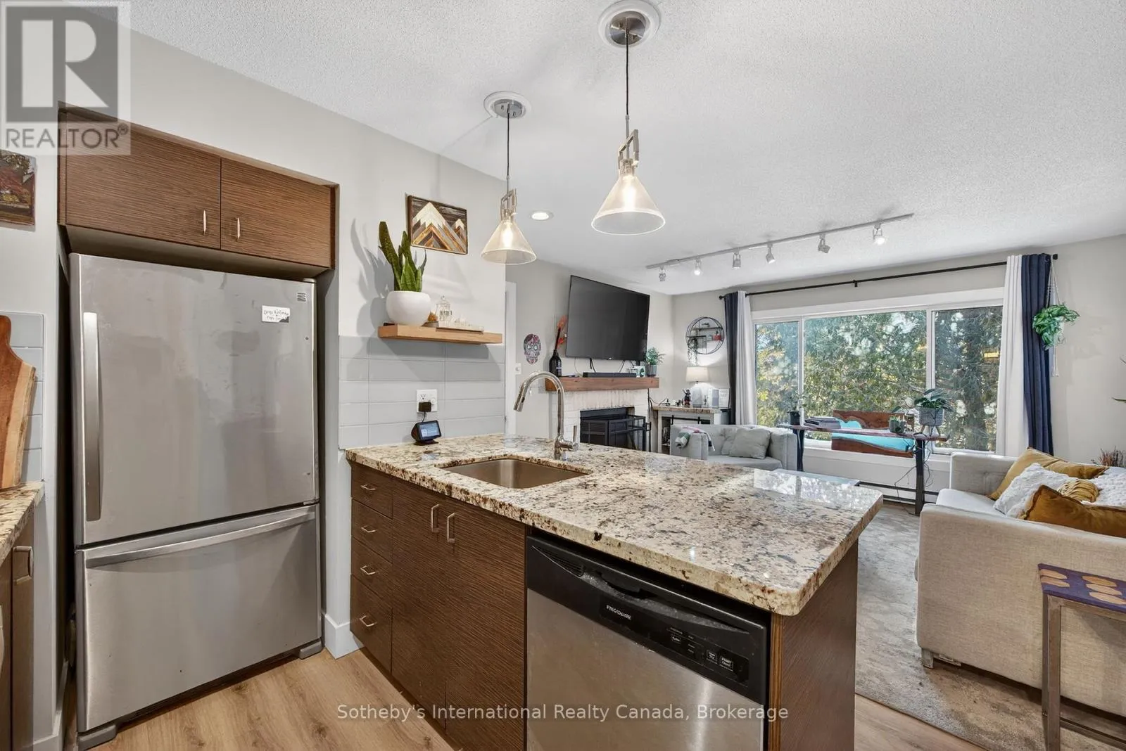 Cross Streets: Hwy 26 and Keith Ave. ** Directions: Hwy 26 to Keith Avenue then right on Dawson. Oxbow Cres/Dawson Dr. Welcome to this beautifully updated 2 bedroom, 2 bathroom, single floor condo in sought after Cranberry/Living Stone. Perfect as a full-time residence, vacation property or investment, this condo has been updated with fresh paint throughout, new doors throughout and an updated kitchen including stone counters, stainless steel appliances and stylish cabinets. The open concept living room and kitchen boasts tons of natural light, a classic wood burning fireplace and walk-out to a spacious deck. The primary bedroom, complete with its own walk-out to the deck, a walk-in closet and 4 piece ensuite bathroom and the spacious guest bedroom and 3 pc guest bathroom provide ample space for family or guests. The added convenience of an in-suite laundry with new washer/dryer is the icing on the cake. Located just steps from Georgian Bay, Cranberry Golf course and the trail system and just minutes to downtown Collingwood and Blue Mountain Resort, you are in the heart of Southern Georgian Bays four season living! (id:27476)