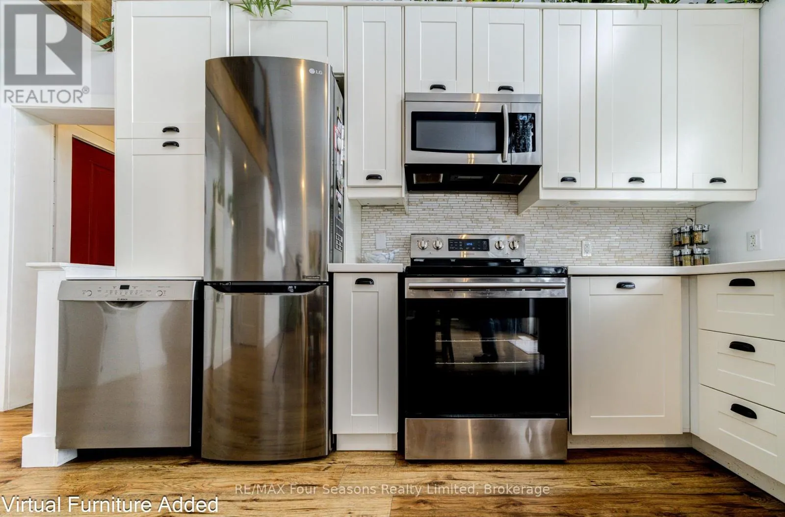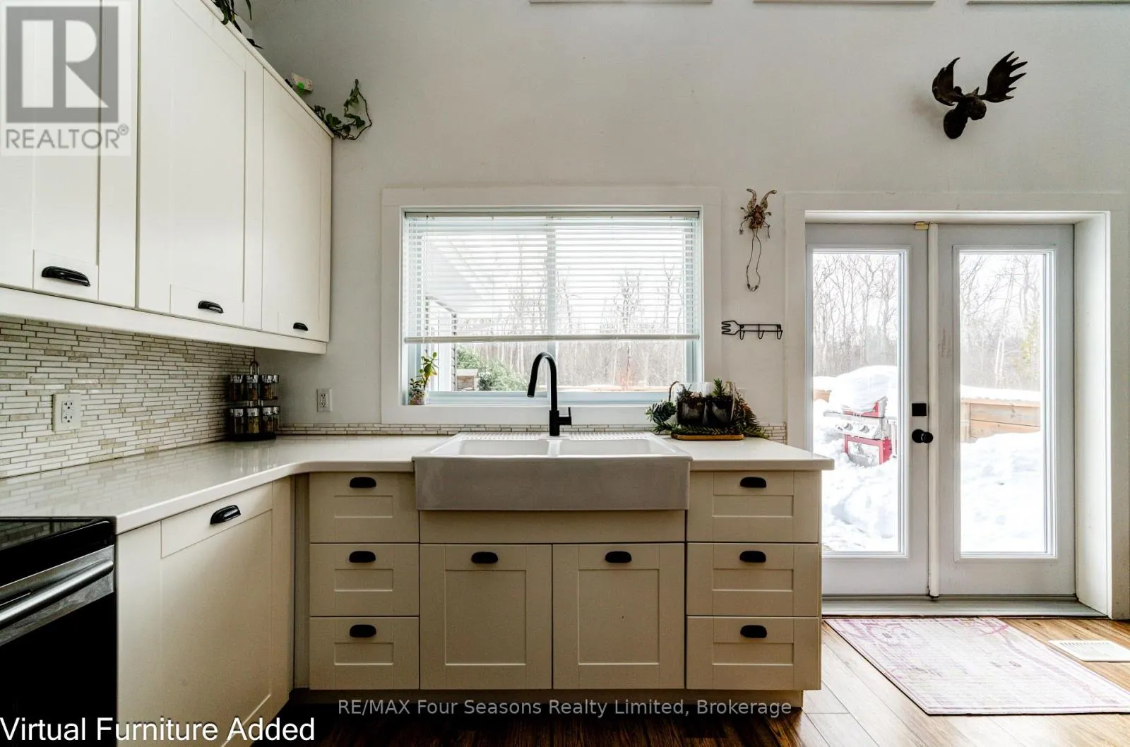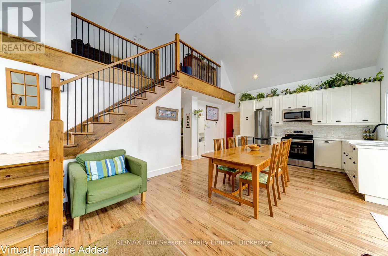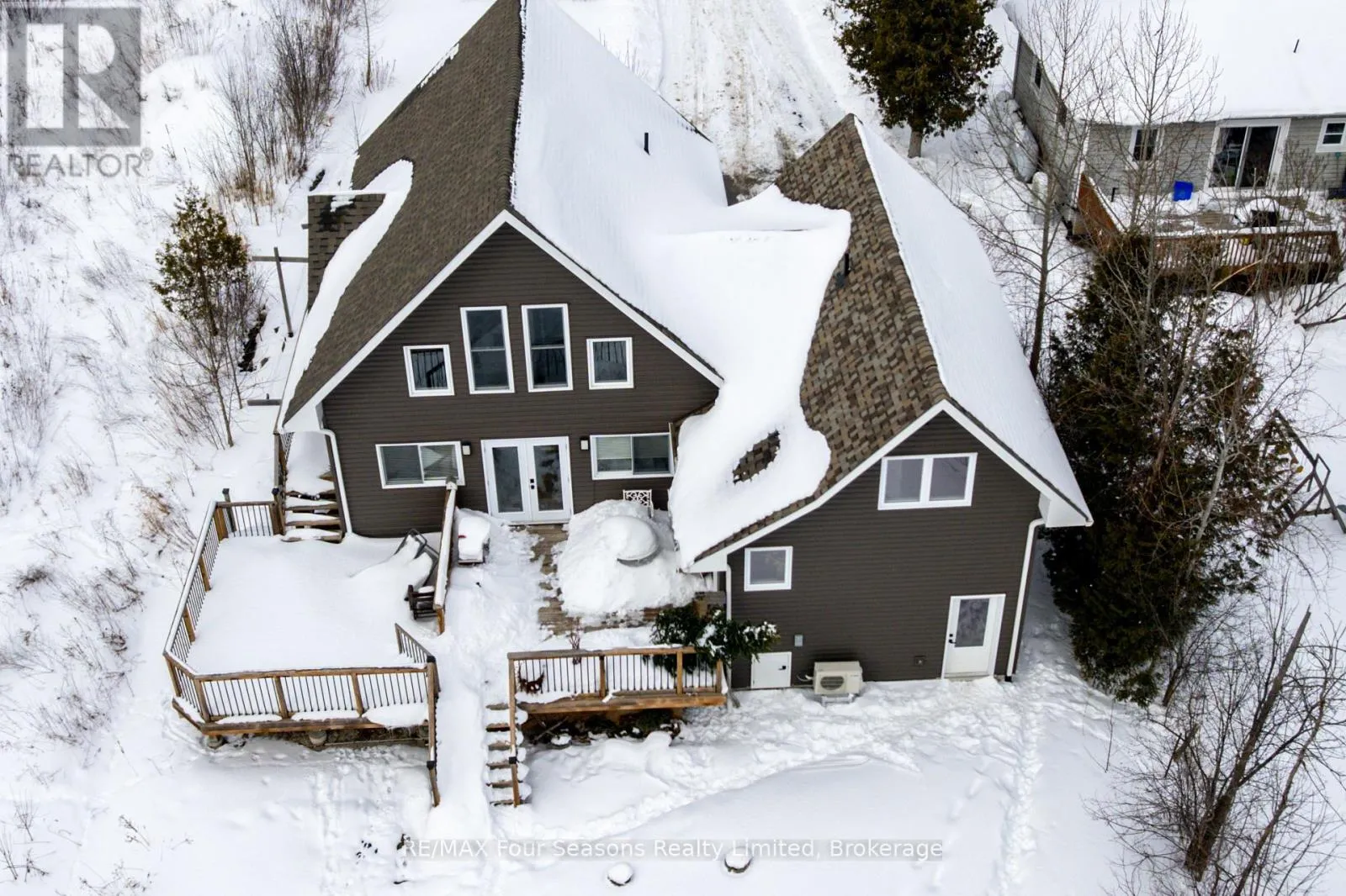 Cross Streets: Beachwood Rd. ** Directions: Beachwood Rd. east to Braeside St. Located just a short drive from the Historic downtown Collingwood, a short walk to the lake and 20 minute drive to the ski hills. This 3 bedroom 2 bathroom home was built in 2019 with an addition added in 2021. Set on a large lot backing on to a wooded area gives you plenty of privacy and opportunity to enjoy the large wrap around deck. The long driveway leads to this spacious, light filled home. The main floor boasts a huge kitchen/dining area with soaring cathedral ceilings and large windows to let all that sunlight in to two bedrooms and 3 piece bathroom also on the main level. The loft area is a cozy bright family room. The primary bedroom is located in it's own private area separated by a long hallway, with bathroom and office space. The lower level is finished with a recreation room and laundry room. The garage is insulated, drywalled and has an inside entry door. (id:27476)