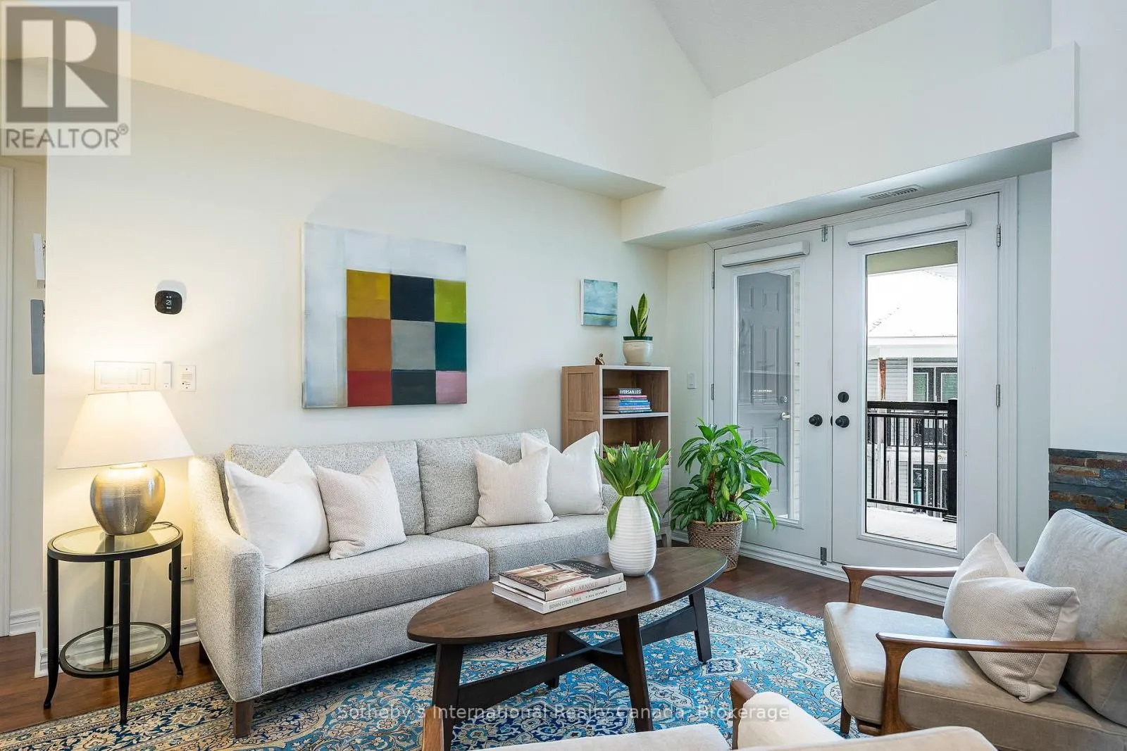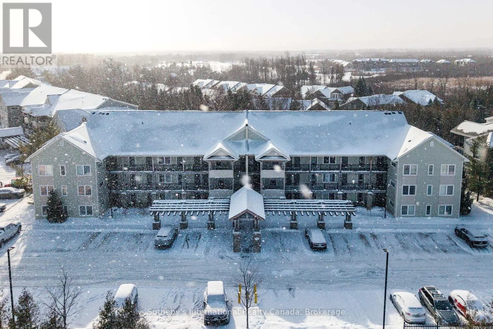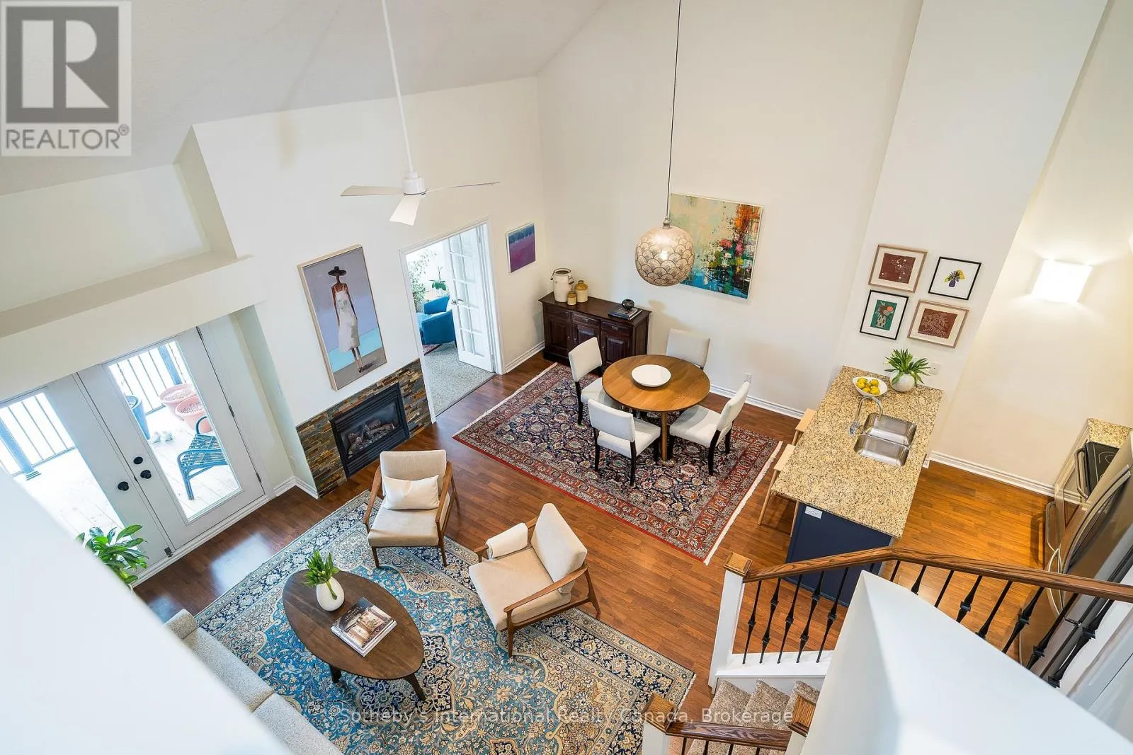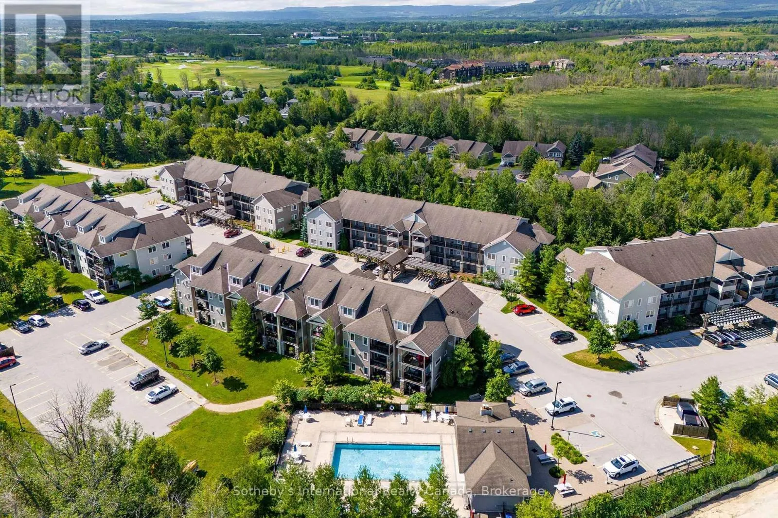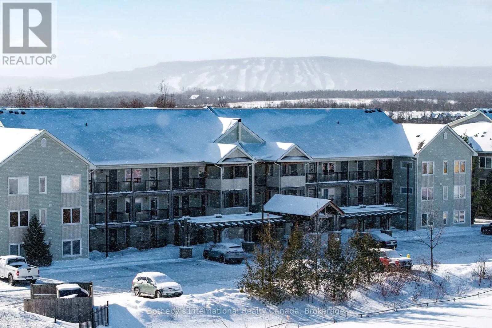 Cross Streets: Hwy 26 and Cranberry Trail East. ** Directions: Hwy 26 to Cranberry Trail East. Right onto Brandy Lane Dr. Building 6 is around to the left. Exceptional value and superior design define this beautifully upgraded 1,394 sq ft loft-style condo in sought-after Wyldewood. Offering one of the most livable and well-proportioned floor plans in the community, this 3-bedroom, 2-bath residence features soaring 17-ft vaulted ceilings, an expansive open-concept layout, and exceptional natural light throughout. Over $30K in upgrades completed within the past two years reflect true pride of ownership. A cozy gas fireplace anchors the inviting living and dining areas, while the well-appointed kitchen features granite countertops, stainless steel appliances, a breakfast bar, and a generous pantry-ideal for both everyday living and entertaining. Elegant flooring and contemporary solid doors enhance the home's warm, refined aesthetic. A rarely found dedicated laundry room sets this unit apart, thoughtfully redesigned with a full-size stacking washer/dryer, stainless steel laundry sink, built-in drying rack, and additional storage-delivering a level of functionality rarely seen in condo living. A main-floor bedroom, accessed through French doors and overlooking Cranberry Trail, offers flexibility as a guest room or sun-filled retreat. The main floor primary suite provides a peaceful escape with a private 4-piece ensuite. Upstairs, the versatile loft level doubles as a third bedroom with a Murphy bed, a 4-piece bathroom, and ample space for a home office or relaxation area. Outdoor living is enjoyed on the private terrace with Phantom screens and BBQ hookup, surrounded by treed trails and scenic views. Additional highlights include contemporary blinds, a custom storm/screen door, ceramic tile entry, and a high-efficiency whisper-quiet furnace and A/C with smart thermostat. Residents enjoy access to a year-round heated outdoor pool and a prime Collingwood location-minutes to Blue Mountain, skiing, golf, trails, downtown, craft breweries, and Georgian Bay. An outstanding opportunity for quality, comfort, and exceptional value. (id:27476)