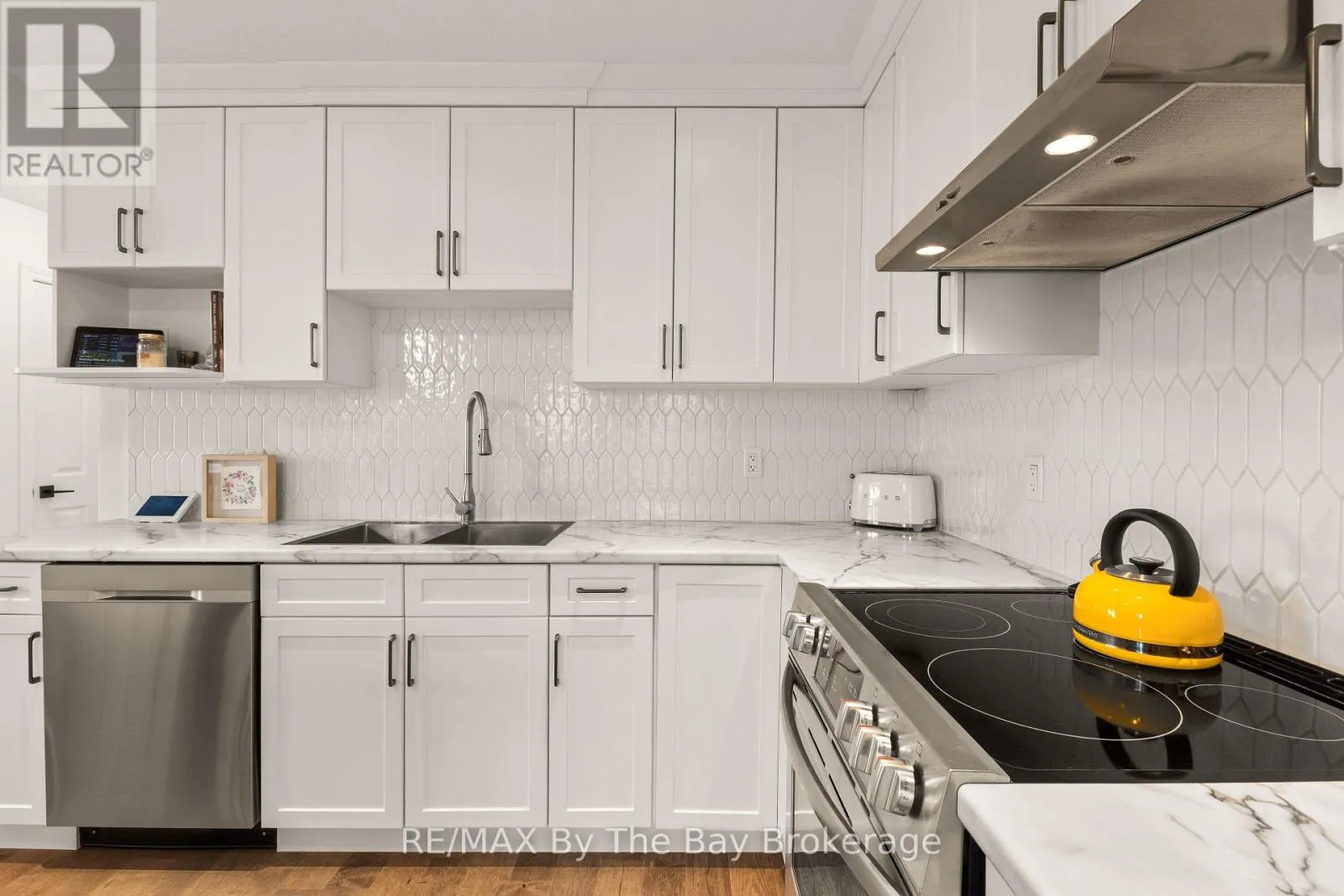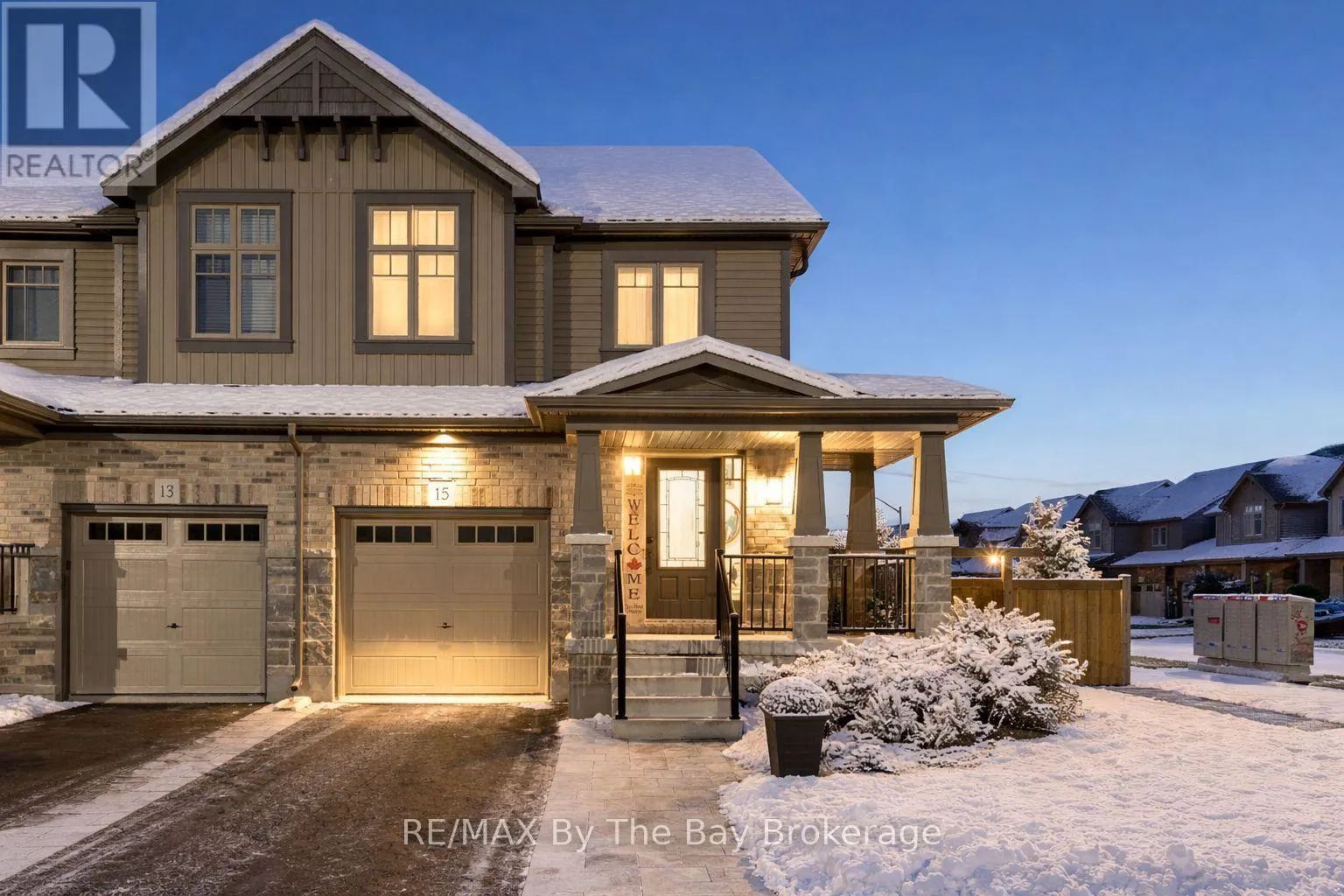 Cross Streets: High St / Plewes Dr. ** Directions: High St. to Plewes Dr. to Foley Cres. Welcome to 15 Foley Crescent a bright and beautifully maintained END-UNIT townhome nestled on a premium 43' wide CORNER LOT in Collingwood's desirable Summit View community. From the moment you step inside, you'll appreciate the open-concept layout, flooded with natural light and finished with elegant engineered hardwood flooring throughout. The modern eat-in kitchen offers a breakfast bar, sleek backsplash, and a generous dining space perfect for everyday living and entertaining. Step out from the living room into your own private outdoor retreat, a fully fenced backyard featuring a low-maintenance hardscaped patio, gazebo, gas BBQ hookup, and a large shed for added storage.Upstairs, the spacious primary bedroom offers double closets, while two additional bedrooms provide flexibility for a growing family, home office, or guests including one with a walk-in closet. A 4-piece bathroom and oversized linen closet complete the upper level. The unfinished basement provides a blank canvas with a bathroom rough-in, ready for your personal touch. Set in a family-friendly neighbourhood, just minutes to trails, schools, downtown Collingwood, and Blue Mountain - this home is the perfect blend of comfort, function, and lifestyle. (id:27476)