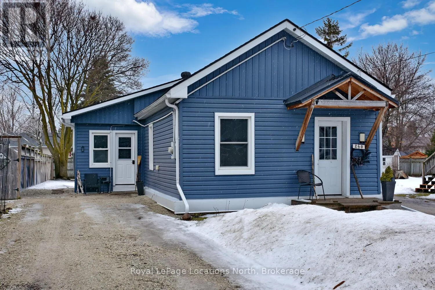 Cross Streets: Cedar & 4th. ** Directions: GOING WEST ON FIRST ST TURN SOUTH ON CEDAR ST TO #260. IN BETWEEN 3RD AND 4TH STREETS. Welcome to 260 Cedar St Collingwood! Located on the ever-desirable Tree Streets & just a short walk to downtown, this charming renovated home truly checks all the boxes. Featuring 2-bed & 1-bath, this adorable bungalow is ideally situated in the heart of Collingwood. Perfectly suited for first-time buyers, downsizers, or those seeking a weekend retreat, this home offers the ease & comfort of all main-floor living on a generous, deep lot. Step inside to a welcoming interior featuring tasteful updates throughout, creating a move-in-ready space that blends character with modern convenience. The functional layout offers comfortable living areas, the kitchen is equipped with everything you need to prepare daily meals or entertain with appliances updated in 2023 & laundry room conveniently off kitchen. 2 well-proportioned bedrooms (one currently used as an office), & an updated bathroom, all designed for easy everyday living. Outside, enjoy the rare bonus of a large, deep yard-ideal for entertaining, gardening, or simply relaxing outdoors. Ample parking for up to 4 vehicles adds everyday convenience, whether hosting guests or accommodating multiple drivers. This property's location truly shines. Enjoy a short walk to downtown Collingwood's shops, cafes, restaurants & waterfront trails, while being just a quick drive to Blue Mountain ski hills, golf courses, beaches & year-round recreational amenities. 4-season living is right at your doorstep. For added peace of mind, a recent home inspection has been completed, with receipts available for items that have already been addressed. Numerous updates throughout the home further enhance its value & appeal. Major updates include new siding & bathroom (2018), roof, windows, kitchen & HVAC. Whether you're looking for a full-time residence, investment opportunity, or a low-maintenance getaway close to it all, this cute & well-maintained bungalow is a fantastic opportunity in one of Collingwood's most desirable locations! (id:27476)