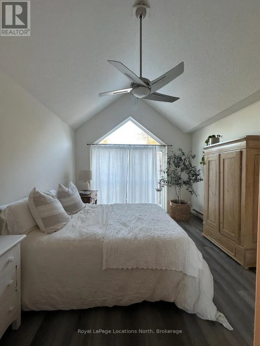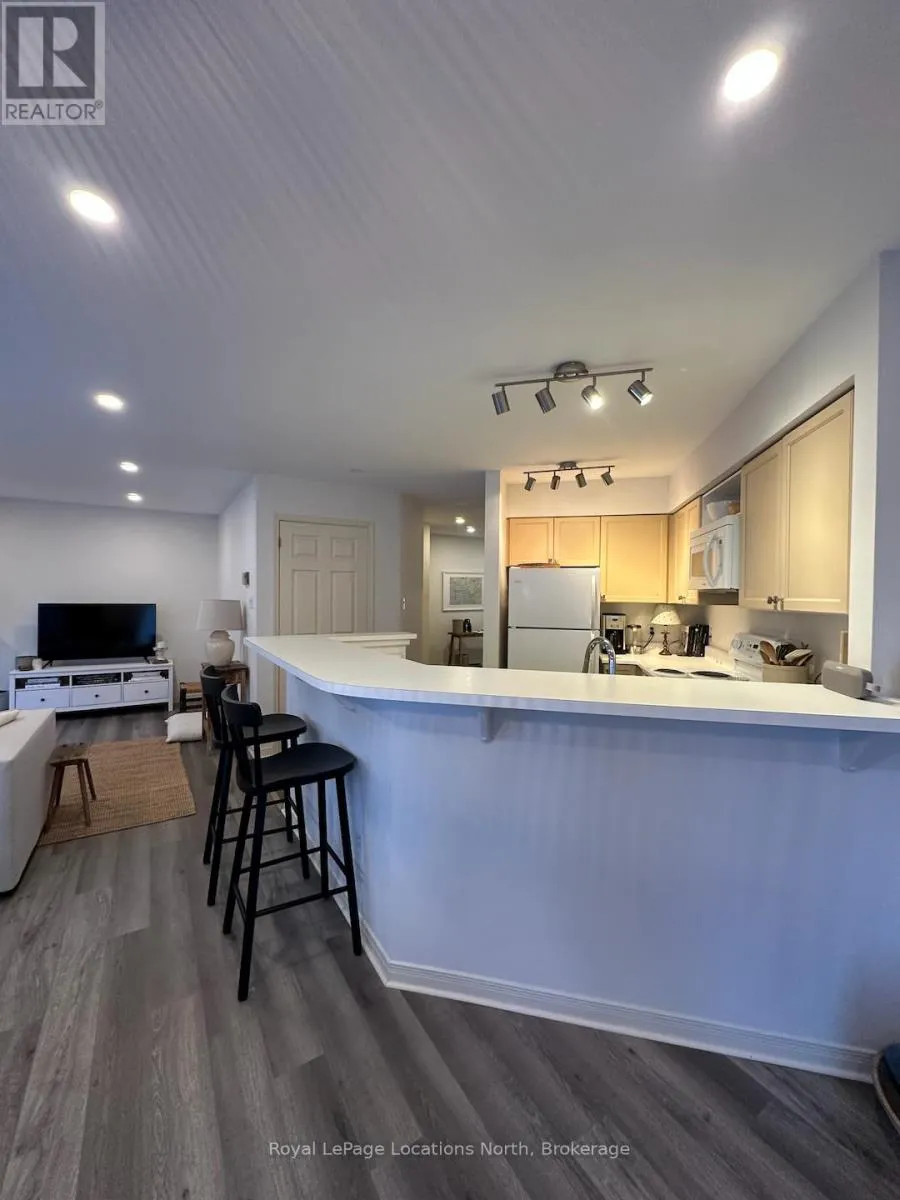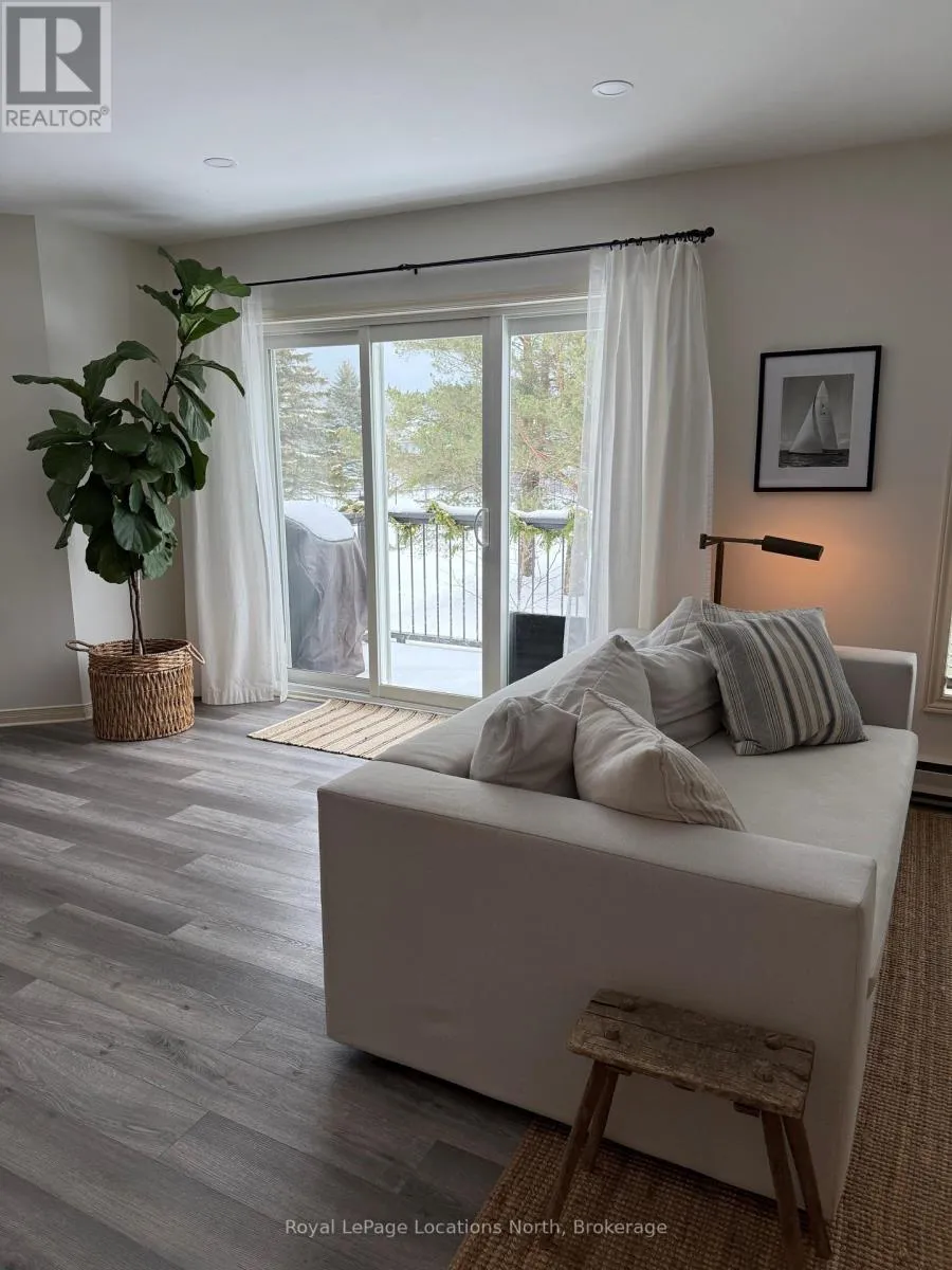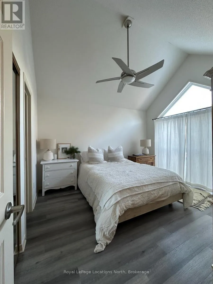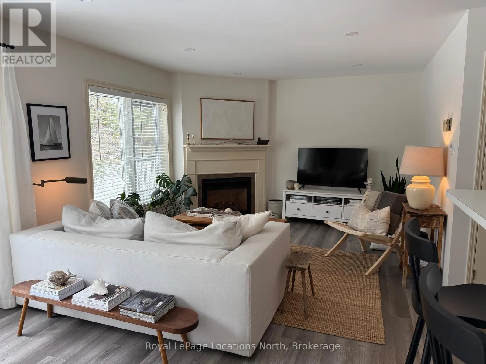 Cross Streets: Hwy 26 and Lighthouse Lane. ** Directions: Hwy 26 west from Collingwood to Lighthouse Lane then right onto Mariners Way. ANNUAL RENTAL in the highly desirable Lighthouse Point community. This bright and spacious three-bedroom, 2.5-bath condo has been updated with laminate flooring and stylish pot lights in the living and dining areas.The open-concept main level features a full kitchen with a convenient breakfast bar, a dining area with sliding doors to a private balcony, and a welcoming living room anchored by a cozy gas fireplace. A powder room, in-suite laundry, and a large storage closet complete this level. Upstairs, the primary bedroom is filled with natural light and showcases a cathedral ceiling, juliette balcony, and a private 3-piece ensuite. Two additional bedrooms and a full bathroom provide comfortable space for family or guests. Overlooking the tennis courts and just a short stroll to the recreation centre, this two-storey unit offers an exceptional lifestyle. Enjoy all that Lighthouse Point has to offer, including an indoor pool, hot tubs, sauna, games room, clubhouse with marina views, and both tennis and pickleball courts. (id:27476)