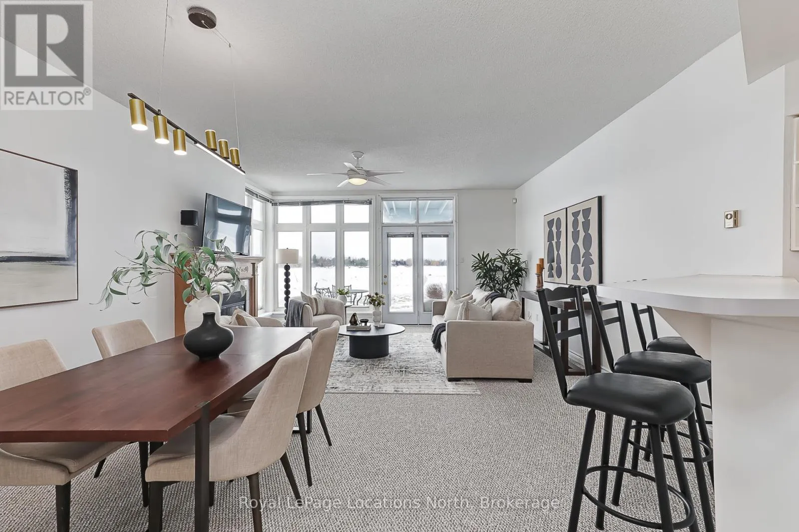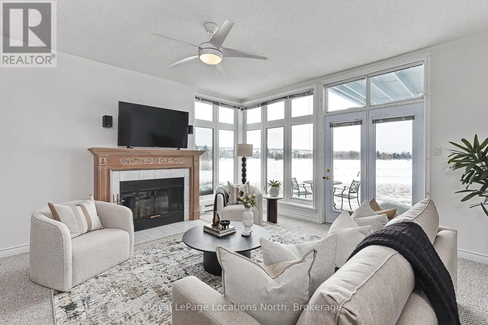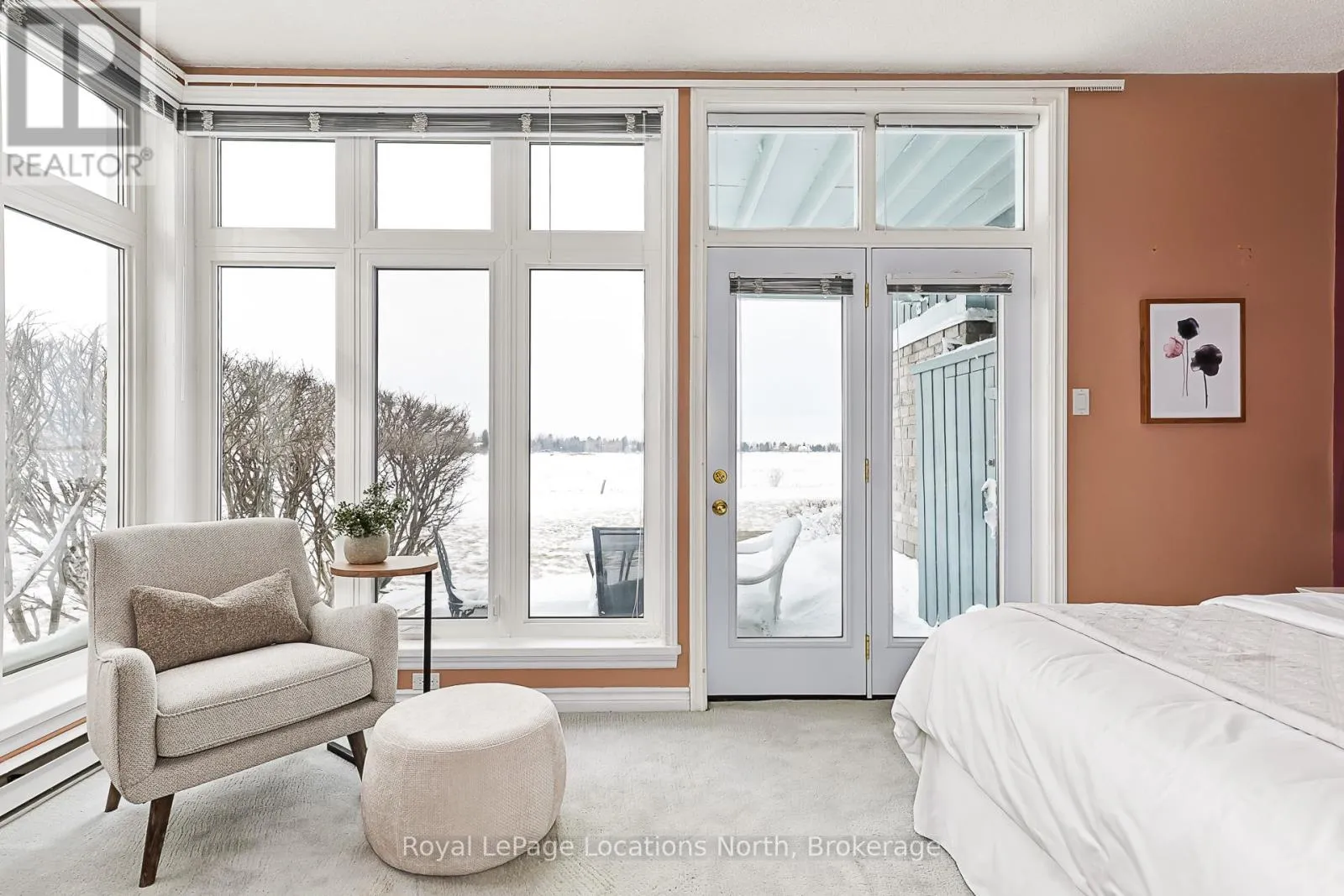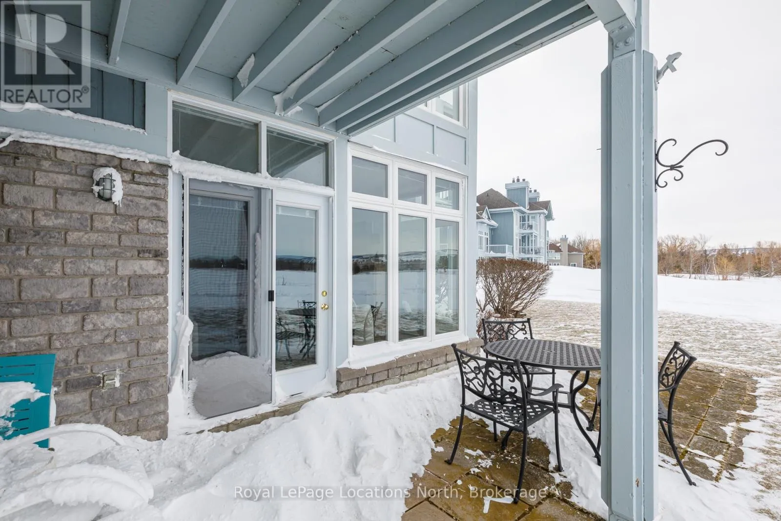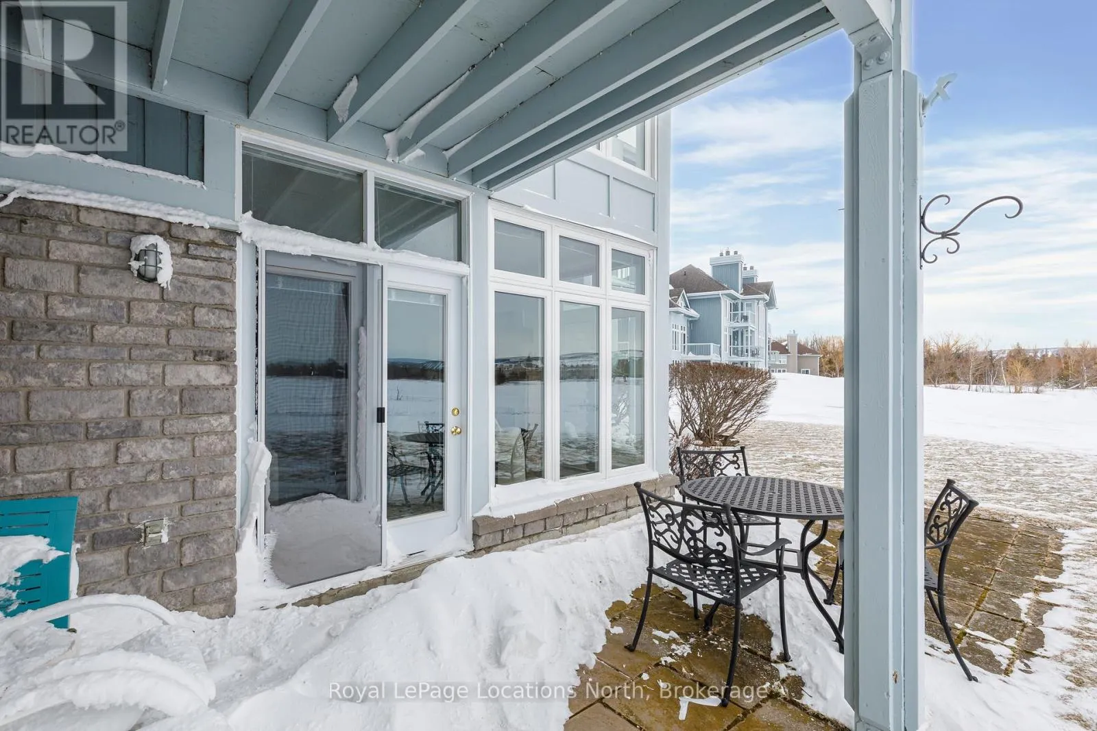 Cross Streets: Johnston Park Ave. ** Directions: Hwy 26 to Lighthouse Point. Welcome to the rare opportunity to own a WATERFRONT ground floor bungalow-style 3-bedroom, 2-bath end-unit in Collingwood's premier Lighthouse Point. At 1700 SF, here is one of the largest and most desirable condos, offering serene, stunning waterfront views of Georgian Bay. Imagine morning coffee or evening sunsets over the sparkling Bay from your windows and/or patios, with views extending to nearby ski hills for perfect year-round appeal. No stairs, a feeling of privacy offered by this location, 2 woodburning fireplaces for that apres-ski ambiance, plus an oversized single car garage, all nestled in the low-density west end of Lighthouse Point Yacht & Tennis Club. This resort-like enclave delivers a vibrant four-season waterfront lifestyle with exceptional amenities: 1) the private marina with gas dock (boat slip owners access the adult-only Boat House w/ its own outdoor pool, patio, social room), 2) Two outdoor pools (one conveniently steps away + tennis court), 3) Private East & West beaches + multiple swimming areas, 4) seven tennis courts & six dedicated pickleball courts, 5) Extensive walking trails, canoe/kayak/paddleboard storage & launch areas, 6) Indoor recreation Centre w/ pool, hot tubs, sauna, fitness gym, games room, library, meeting room, party/rec room w/ full kitchen, grand piano, dance floor, billiards and a waterside patio. Enjoy themed events, aqua fitness, yoga, court tournaments, card groups, and social gatherings as you wish. Perfect as a full-time home, luxurious weekend escape, or multi-generational retreat. Flexible closing available. Live your waterfront dream - kayak, paddleboard, swim, play tennis/pickleball, beach relax, or soak in the serenity. Don't miss this rarely offered gem at Lighthouse Point! 2025 hydro & water cost was $3,526.00. Floorplans available. (id:27476)