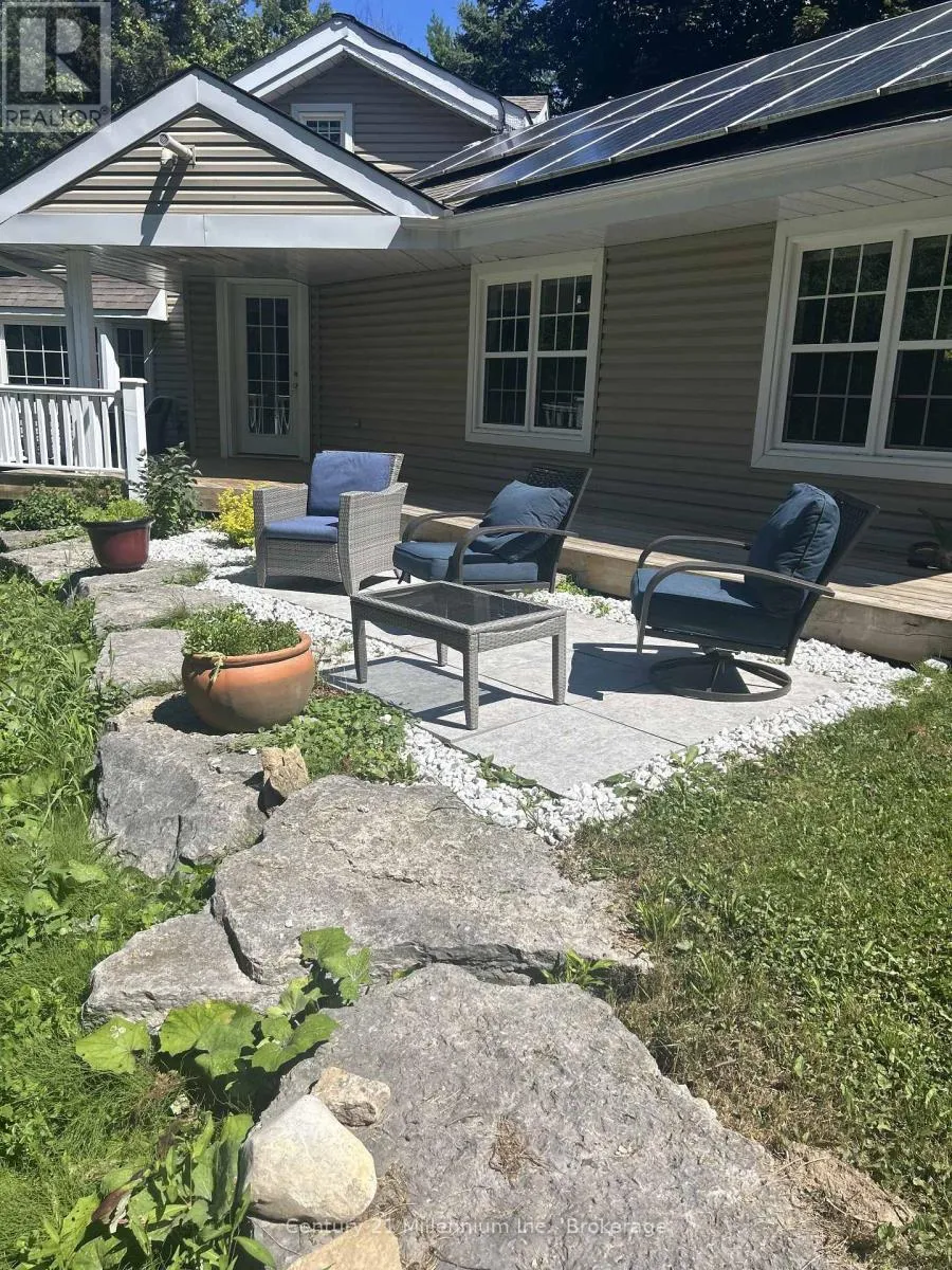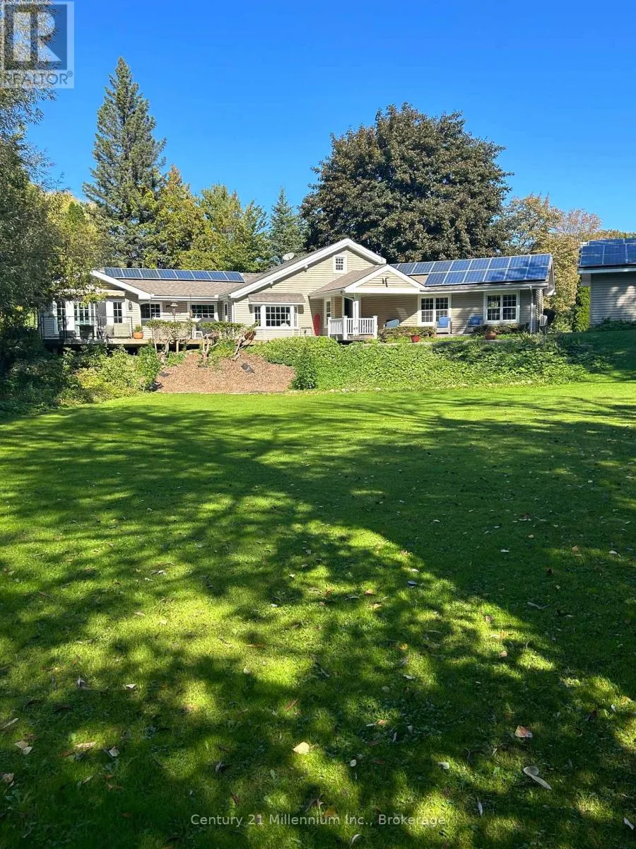 Cross Streets: Grey Rd 21 and Mountain Rd. ** Directions: Grey Road 21 and Mountain Road. COLLINGWOOD MOUNTAINSIDE COUNTRY ESTATE ON SILVER CREEK -- A rare opportunity to own a completely updated country estate nestled on 1.77 acres of total privacy with no neighbors in sight. This 2250 sq ft, 3 bed 3 bath bungalow offers a true four-season lifestyle just minutes from Collingwood and Blue Mountain Village. With 500 ft of frontage on Silver Creek, enjoy a private gazebo, your own waterfall, and a secluded swim area, where you can watch salmon jump in season. The sound of the creek can be heard from every corner of the homes extensive decks, offering total relaxation. Interior upgrades include all-new granite countertops in the kitchen, new carpeting upstairs and to the laundry area, fresh paint on many interior walls, and a fully restored jacuzzi shell. The exterior features a restored back terrace, full septic pump restoration and cleaning, and meticulous landscape maintenance throughout. 40 new trees have been planted across the property, enhancing the mature lush setting. Bonus: Solar panels provide an additional monthly income, transferable to the buyer. With a double car garage and surrounded by mature trees and nature, this is a one-of-a-kind, turn-key escape offering peace, privacy, and proximity to the area's top amenities. (id:27476)