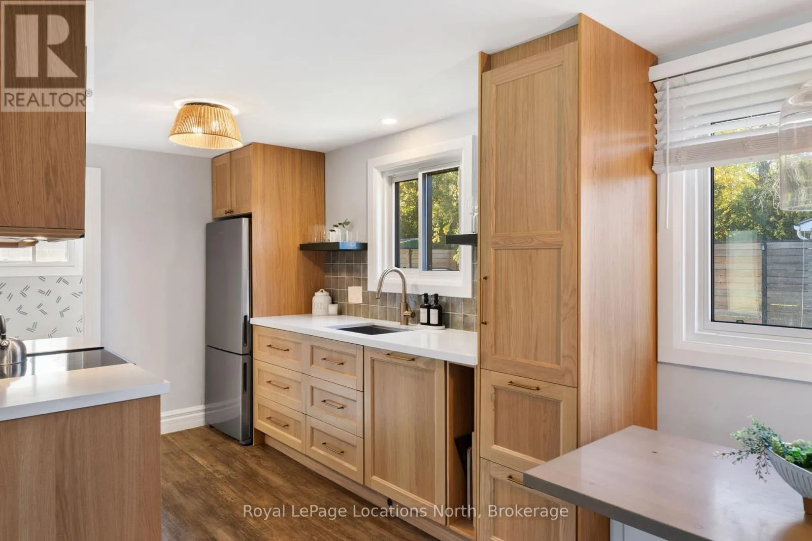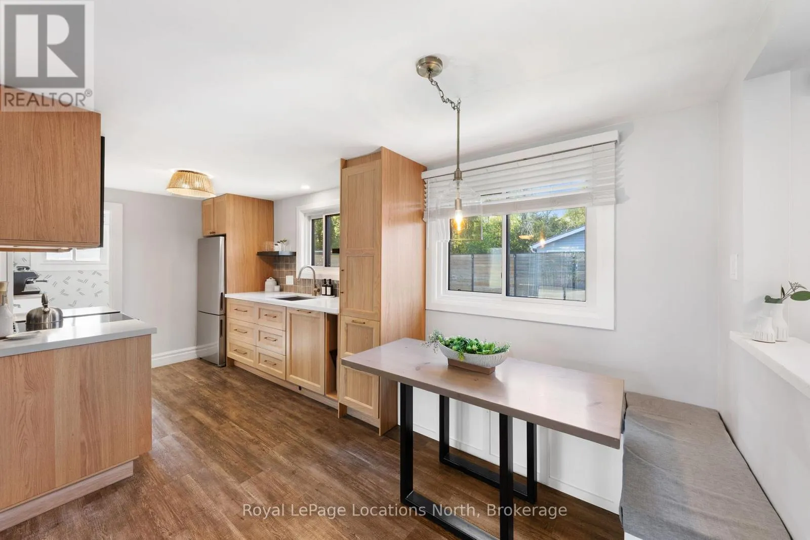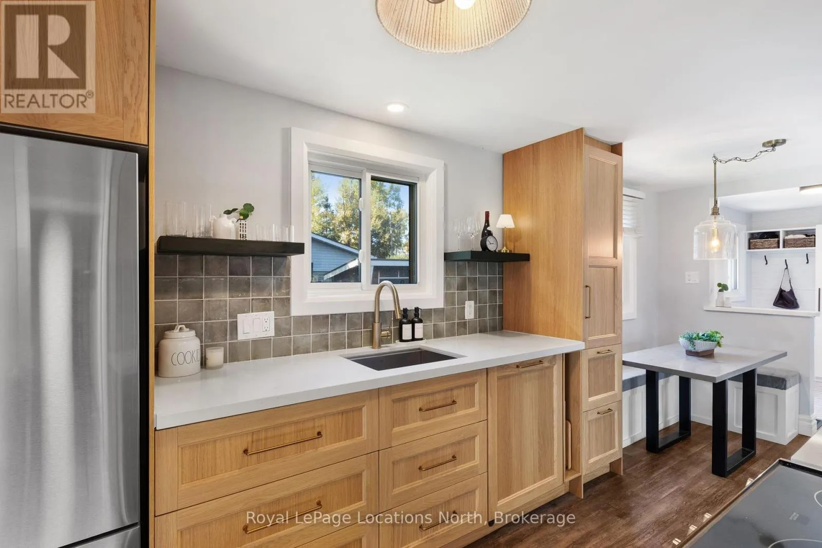 Cross Streets: Beachwood Rd & Poplar Side Road. ** Directions: Head east on Beachwood Road turn right on Dell Parr Avenue. Welcome to 19 Dell Parr Avenue, a fully updated 2 bed, 1 bath bungalow just 500 metres from the shores of Georgian Bay. This stunning property has been thoughtfully upgraded from top to bottom, featuring a brand new sleek contemporary kitchen with quartz countertops. The renovated bathroom and laundry area combine style and practicality, complete with in-floor heating in the bathroom for added comfort. Recent exterior updates include a new roof, siding, windows, doors, and garage door; while a heat pump and air conditioning system ensure efficient climate control year-round (2024). The insulated detached garage, six car driveway, and two sheds ensure there's storage for everything you love. The fully fenced backyard and spacious deck create the perfect space for entertaining and relaxing. Modern upgrades, refined comfort, and an unbeatable location - this Collingwood gem truly has it all. Book your private showing today! (id:27476)