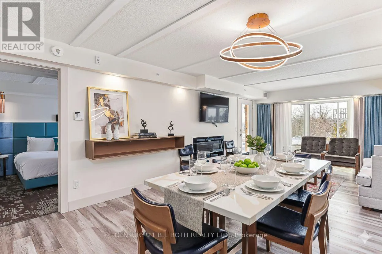 Cross Streets: HWY 26 & Balsam ST. ** Directions: Hwy 26 to Balsam to Harbour. Stand out from the crowd with this high-value fractional ownership opportunity at Living Water Resort & Spa. Located in the newest phase (Phase 4) at 9 Harbour St E, Suites 4407-09 offer a versatile "lock-off" layout that maximizes your travel options. Suite 4407 is a spacious 1-bedroom with a king bed, pull-out sofa, full kitchen, in-suite laundry, and private balcony with views of Blue Mountain. Suite 4409 is an adjoining bachelor suite with two queen beds, a kitchenette, and its own balcony. Use them together as one large three-bed retreat or split them to rent/trade separately. This ownership includes three annual weeks (21, 22, and 41), which can be broken down into up to 12 shorter getaways or traded globally through Interval International. Enjoy premium resort amenities including the 18-hole golf course, on-site marina, rooftop terrace, and Ontario's only Aquapath hydrotherapy spa. The competitive edge: Maintenance fees are PRE-PAID until 2029, offering years of worry-free vacations. Experience the Collingwood lifestyle with Georgian Bay access and waterfront dining at Lakeside Seafood & Grill without the high overhead of traditional cottage ownership. (id:27476)