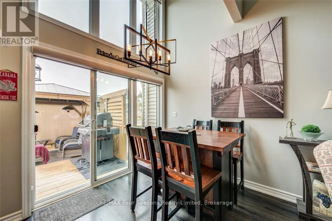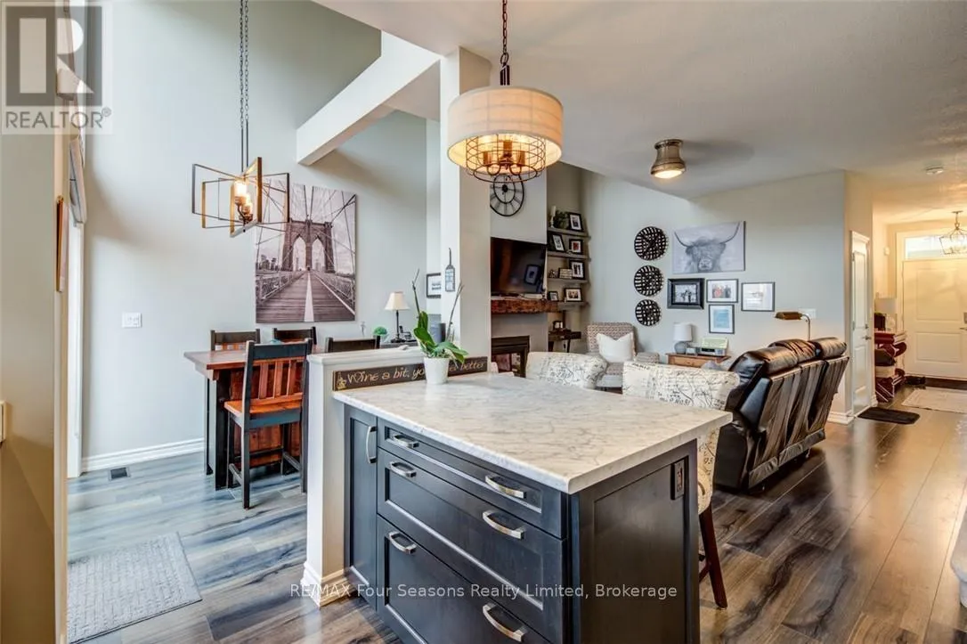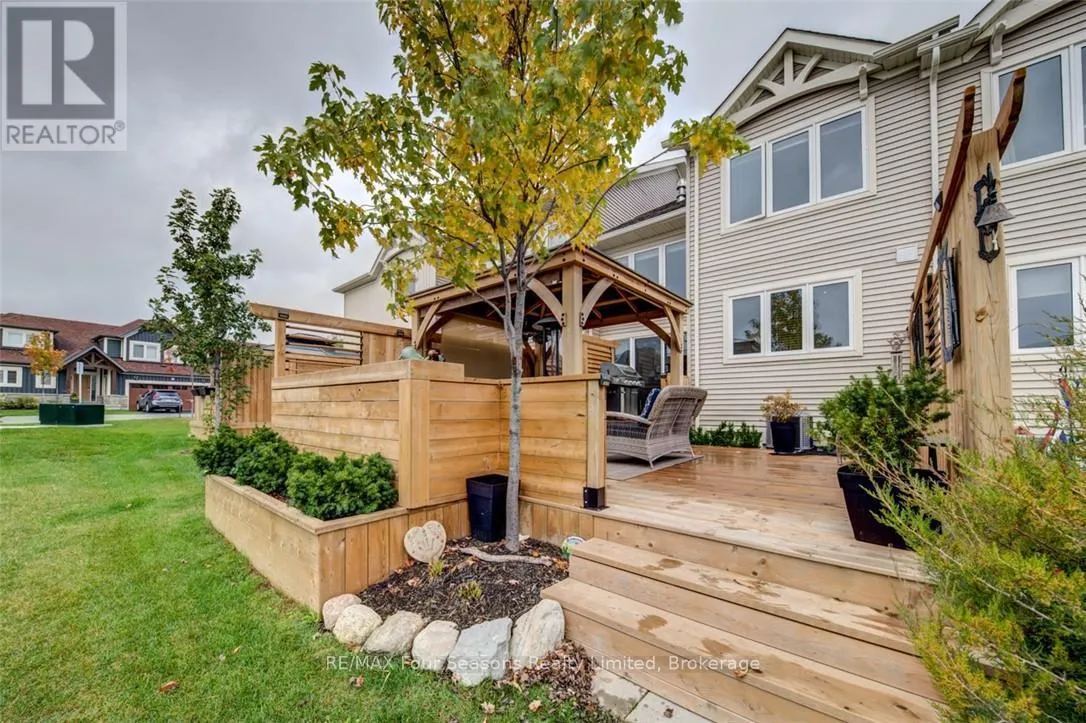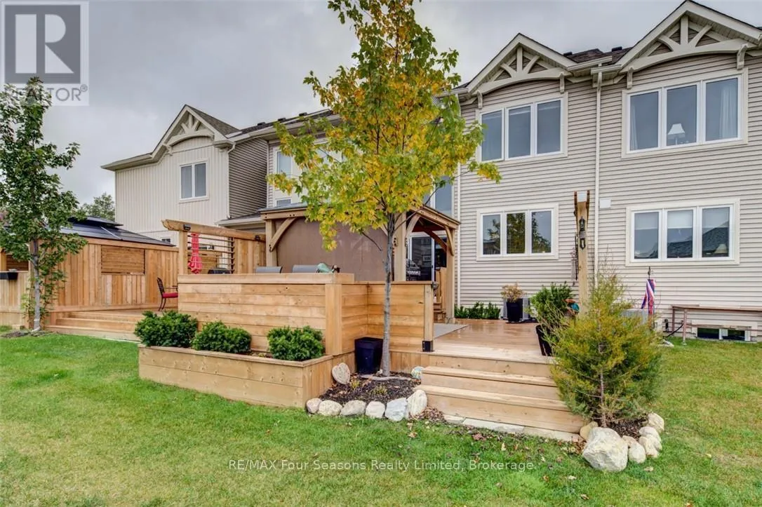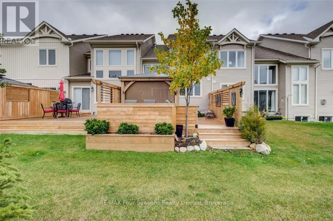 Cross Streets: Lett and Cranberry Trail East. ** Directions: Cranberry Trail West. Blue Fairways freehold townhome nestled near Cranberry Golf Course on a premium lot. Just a seven minute drive to the ski hills but yet a 10 minute drive to Historic downtown Collingwood. This Pine Valley floorplan consists of 1216 above grade sq ft with another 419 on the lower level. Open plan main level with vaulted ceilings, gourmet kitchen with extended breakfast area, gas fireplace and engineered hardwood flooring. Dining area off the kitchen leads to a custom built deck which is offers privacy, shelter and entertainment in the warmer months. Second level offers a primary bedroom with ensuite, a further bedroom, 4 piece bathroom and laundry facilities. The lower level is finished with a large family room, currently set up as a bedroom with a 2 piece bathroom. Single car garage with inside entry. Directly behind the townhome is a park area and recreation centre with outdoor pool and indoor gym. Furniture and furnishings are available with the right offer. POTL fees are $165 per month, includes lawn maintenance, street maintenance and use of the rec centre. (id:27476)