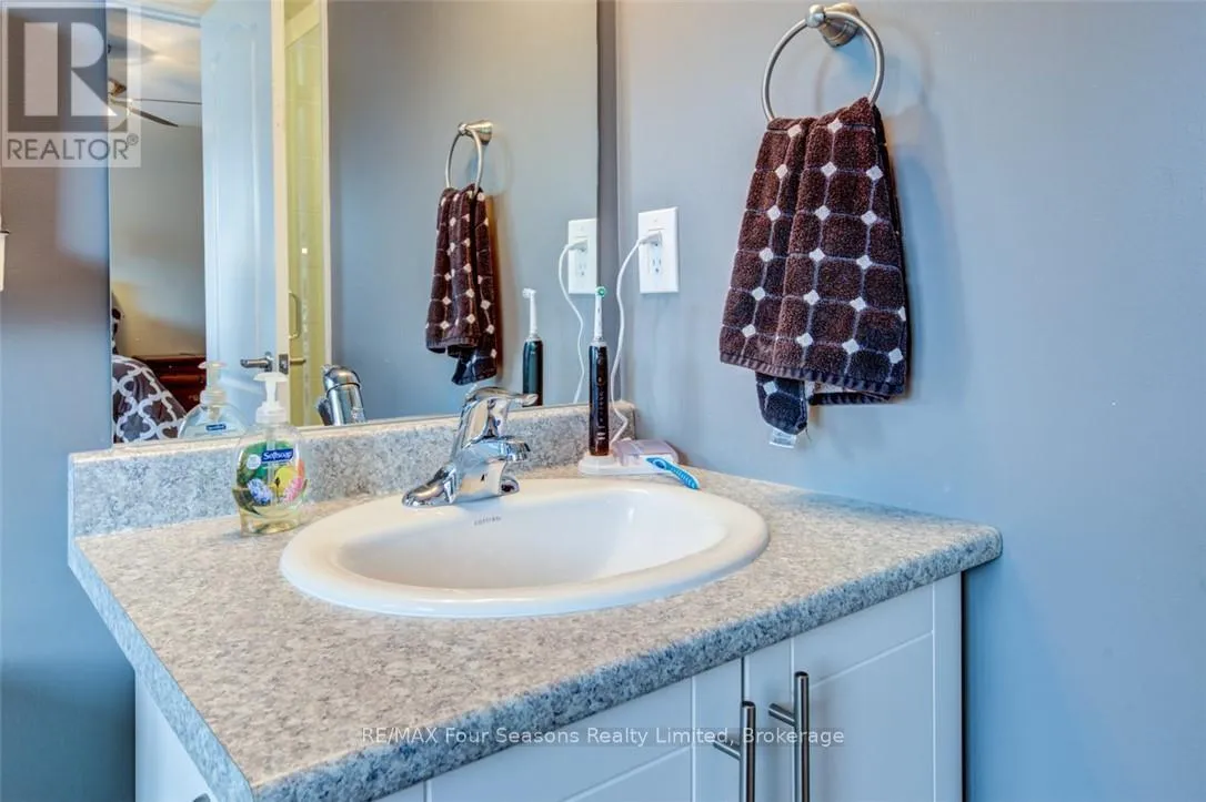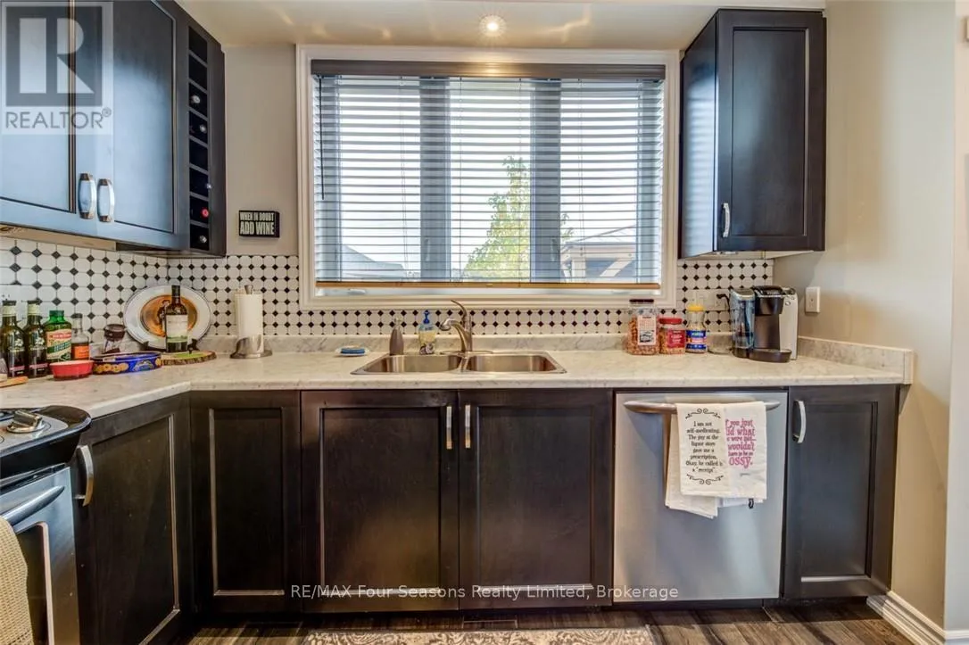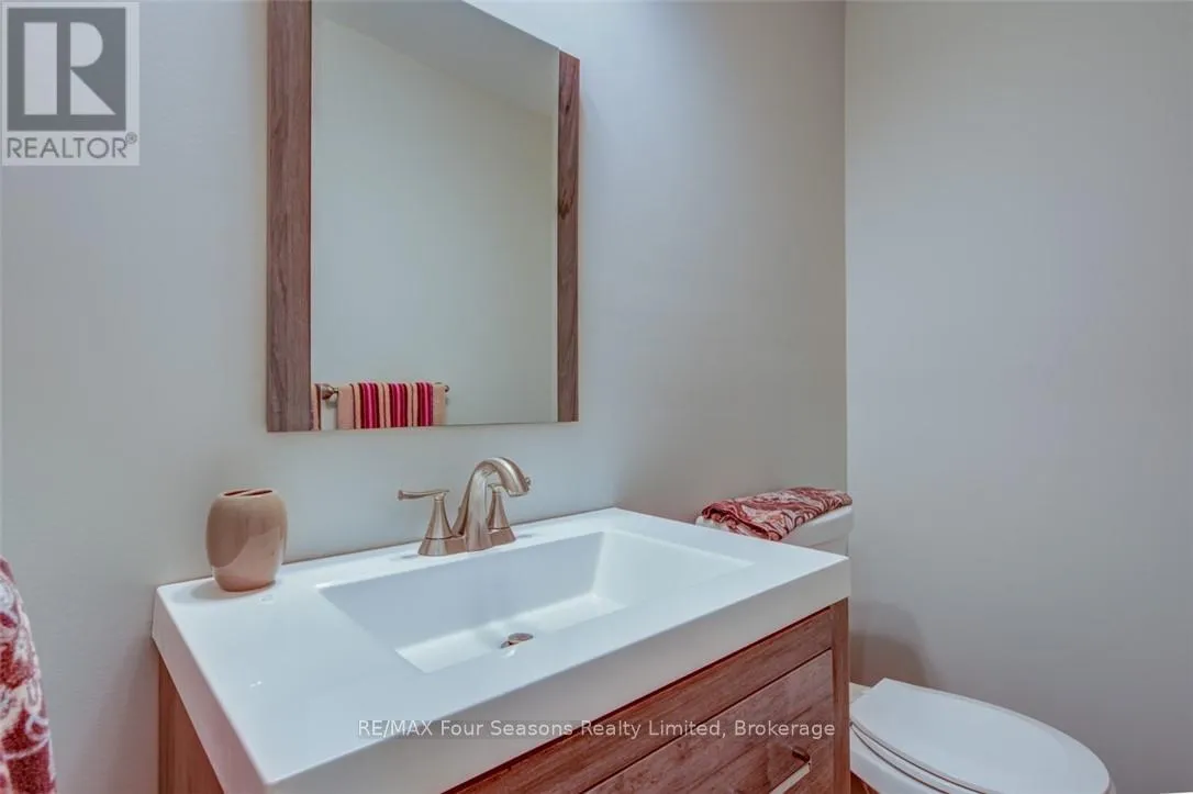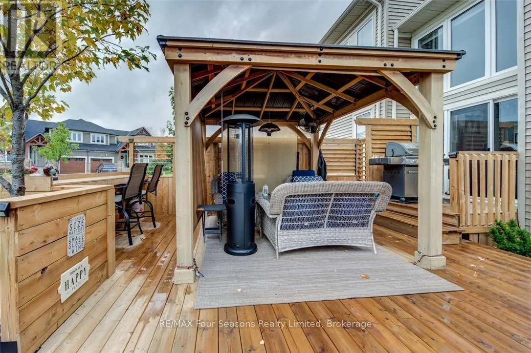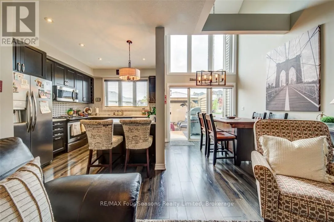 Cross Streets: Lett and Cranberry Trail East. ** Directions: Cranberry Trail West. Blue Fairways freehold townhome nestled near Cranberry Golf Course on a premium lot. Just a seven minute drive to the ski hills but yet a 10 minute drive to Historic downtown Collingwood. This Pine Valley floorplan consists of 1216 above grade sq ft with another 419 on the lower level. Open plan main level with vaulted ceilings, gourmet kitchen with extended breakfast area, gas fireplace and engineered hardwood flooring. Dining area off the kitchen leads to a custom built deck which is offers privacy, shelter and entertainment in the warmer months. Second level offers a primary bedroom with ensuite, a further bedroom, 4 piece bathroom and laundry facilities. The lower level is finished with a large family room, currently set up as a bedroom with a 2 piece bathroom. Single car garage with inside entry. Directly behind the townhome is a park area and recreation centre with outdoor pool and indoor gym. Furniture and furnishings are available with the right offer. POTL fees are $165 per month, includes lawn maintenance, street maintenance and use of the rec centre. (id:27476)
