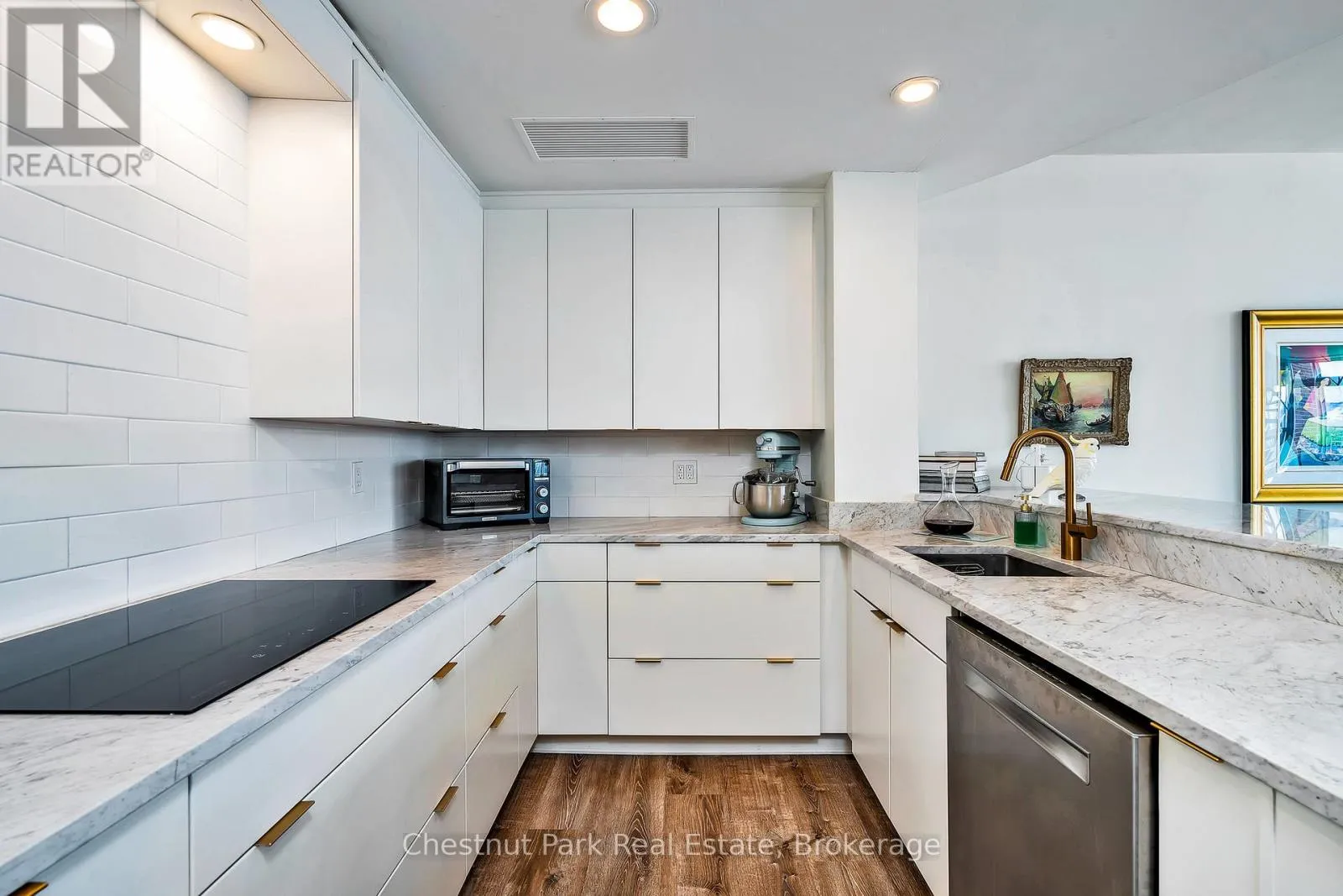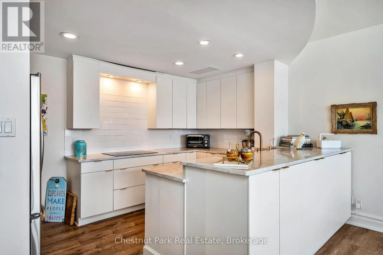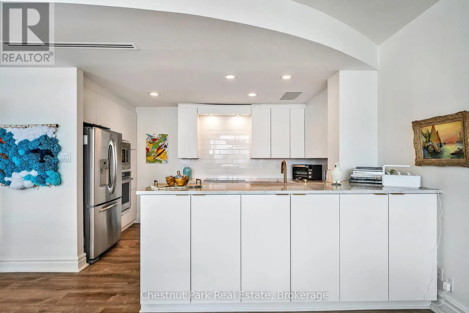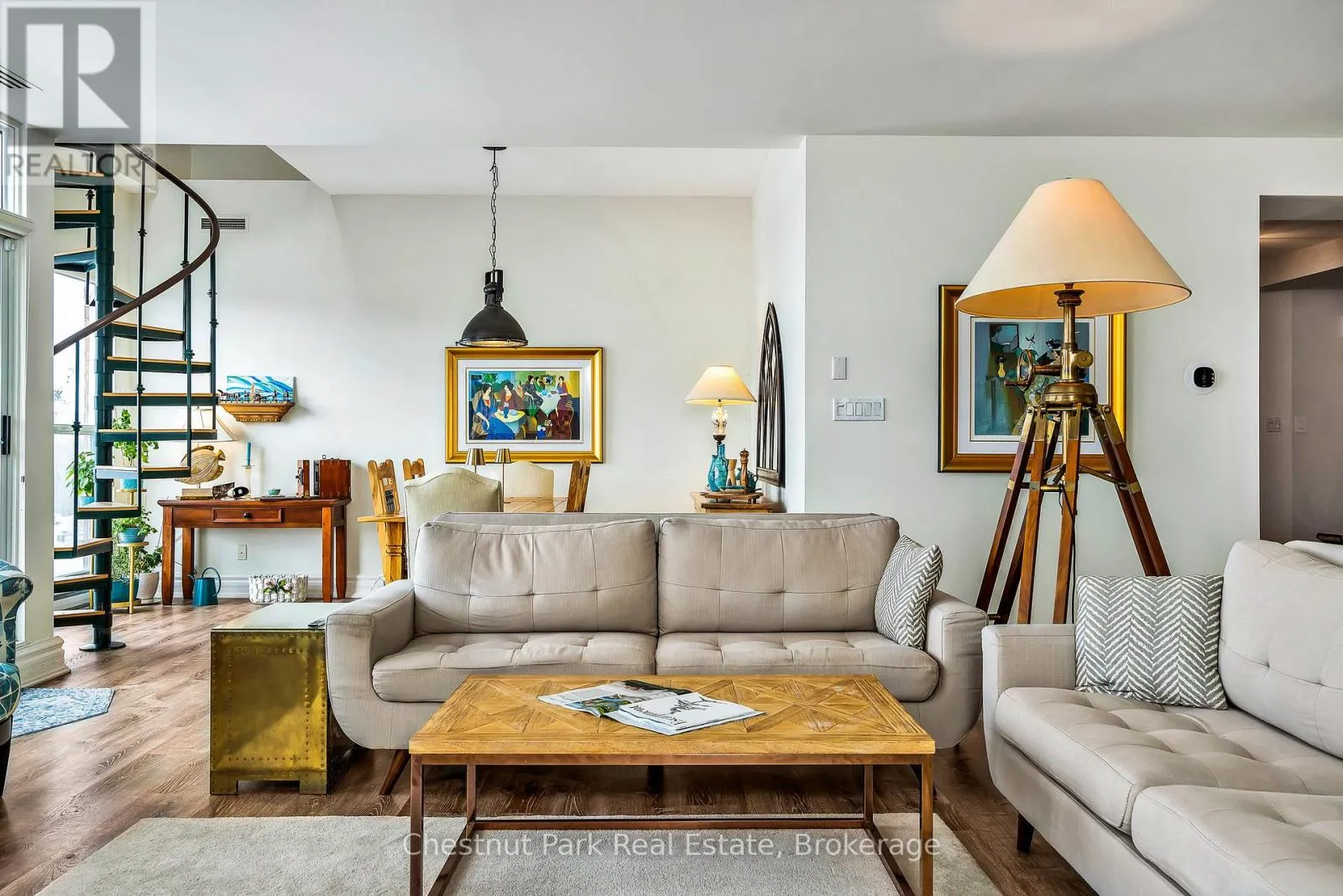 Cross Streets: Highway 26 West and Gun Club Road. ** Directions: Highway 26 west from Collingwood to Gun Club Rd, turn right to main gate on left to Ruperts landing, once inside the gate turn left and drive around to the tower. Parking is past the front entrance to the tower. Experience premier penthouse living at its finest in this breathtaking 1894 sq.ft. condo offering panoramic views of the Escarpment, ski hills and the iconic Lighthouse Island. This is the tallest penthouse in this Southern Georgian Bay area - a home that truly makes a statement. Two deeded, covered parking spaces with inside entry to the building provide convenience during the rain or winter months. Here, the value of your monthly maintenance fees lies in what you gain. Water, cable, high-speed internet and premium amenities are all included, saving you thousands annually on outside services you'd pay for separately. Forget monthly gym memberships, court fees, or driving in town for recreation - everything is right here. Enjoy the marina, indoor pool, sauna, tennis, pickleball, squash, fitness centre plus social lounges and more. This is a home designed for those who value comfort and a worry-free lifestyle. Every season brings a new masterpiece outside your window; snow covered ski hills glowing at night, the fiery colors of autumn across the escarpment, and the shimmering blues of summer water. Inside the penthouse is just as impressive as the views. Floor-to-ceiling windows in the living room and bedrooms flood the space with natural light and frame the changing scenery like works of art. The open-concept kitchen, dining and living areas are perfect for entertaining, complete with a Napoleon gas fireplace and seamless access to one of two spacious decks. The primary suite feels like a retreat of its own, offering a private deck, gas fireplace in the office/sitting area, a spacious walk-in closet, and a beautifully updated 3 pc ensuite. The guest bedroom captures the western sunsets while a versatile loft space, reached by a circular staircase off the dining room is ideal as a home office, yoga studio or quiet hideaway. This is a rare opportunity to own a home that simplifies life, while offering the best of Collingwood living. (id:27476)