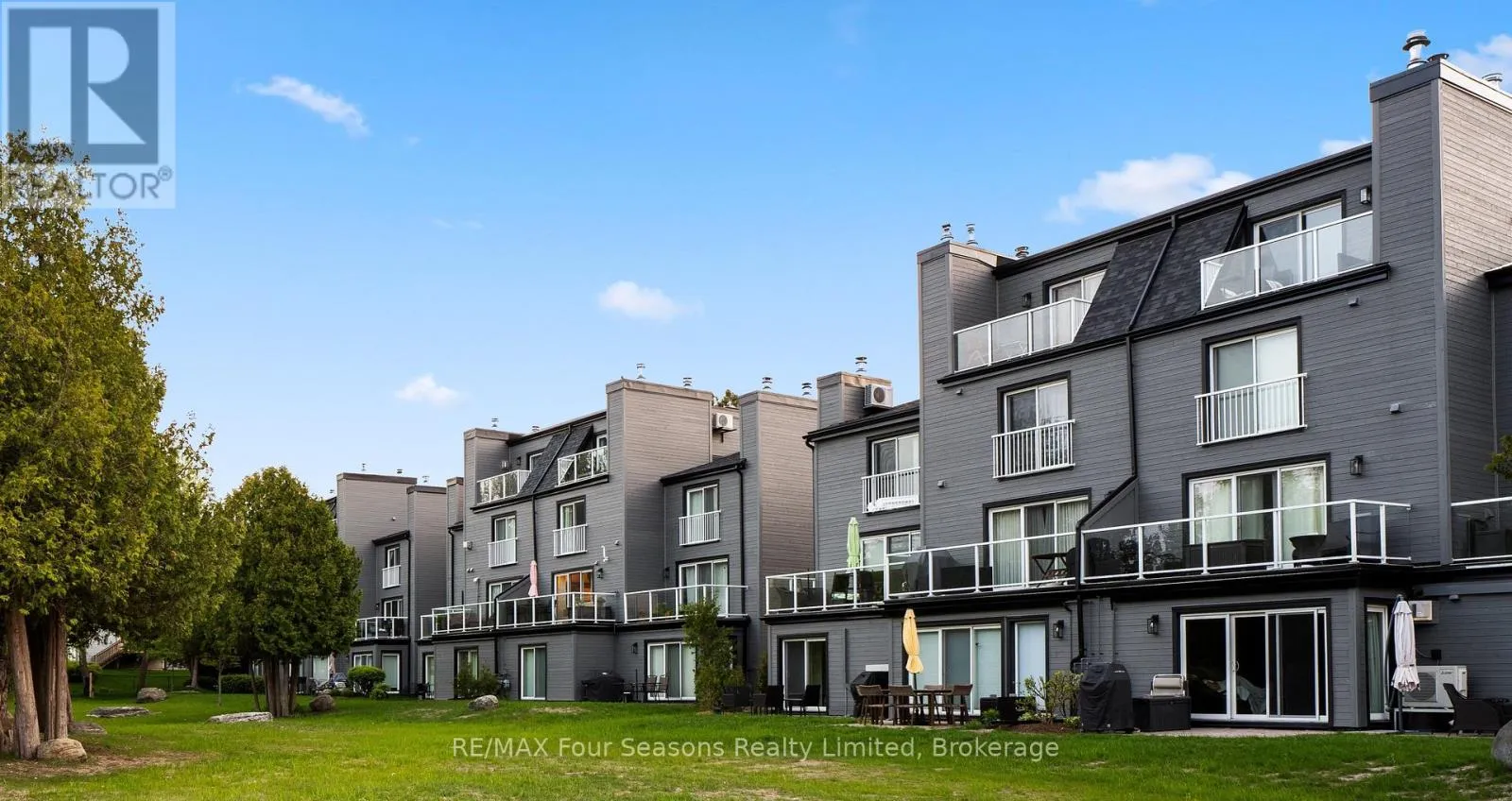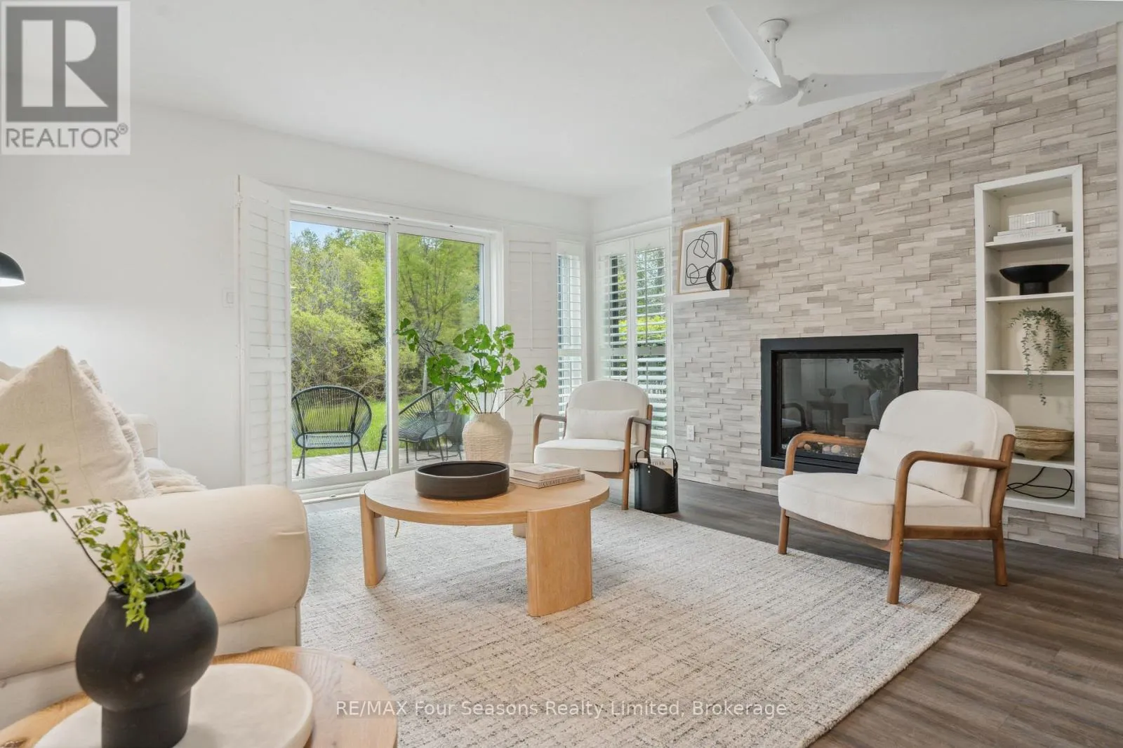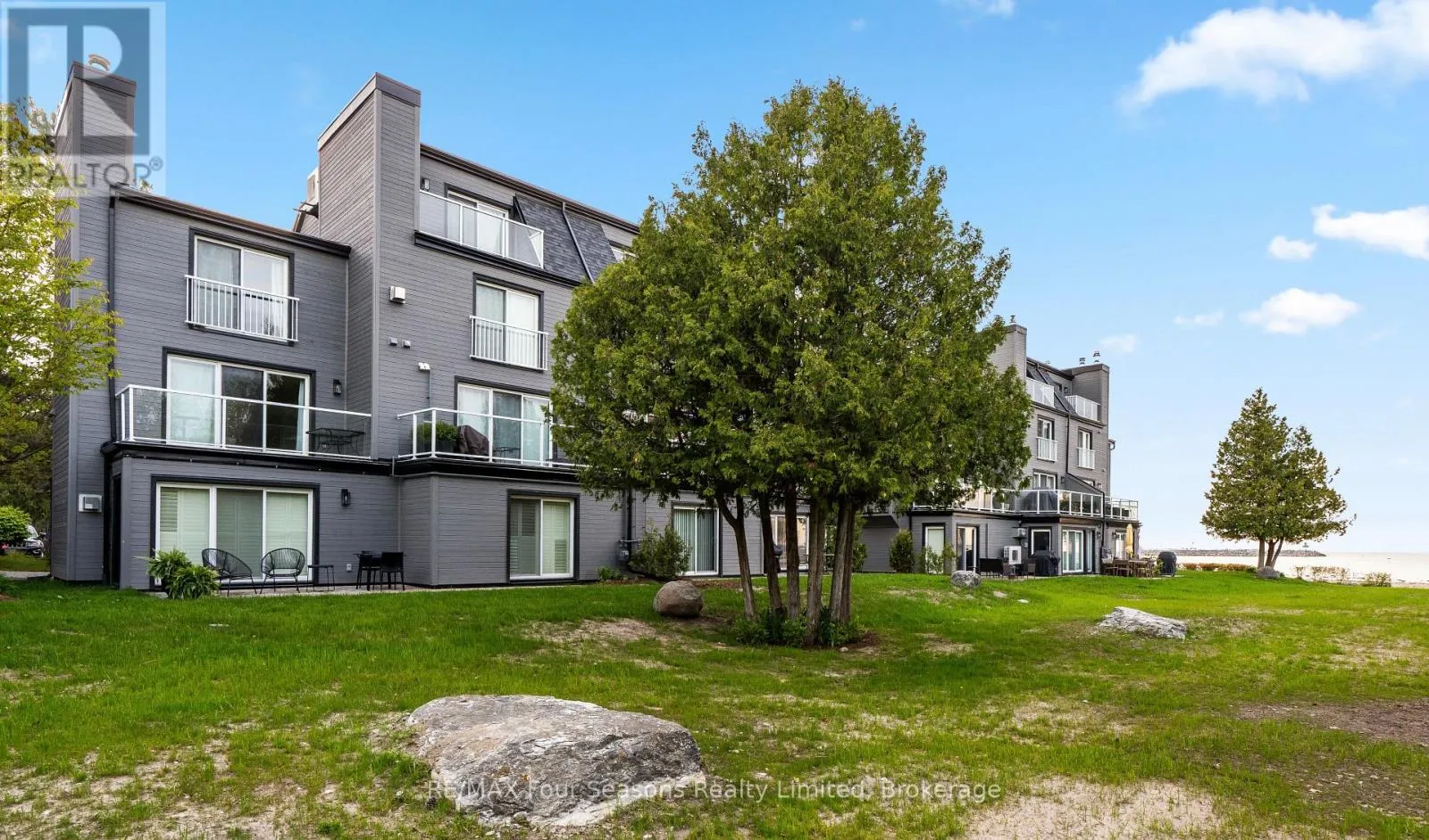 Highway 26 West and Trott Boulevard Welcome to The Cove, one of Collingwood's most desirable waterfront communities, where Georgian Bay is right outside your door and four-season adventure is always within reach. This spacious 2-bedroom, 2-bath condominium offers a relaxed, low-maintenance lifestyle with stunning waterfront living and an unbeatable location. Step inside and you're greeted by an open-concept living space. The kitchen is thoughtfully designed with modern appliances, a breakfast bar for casual dining, and seamless flow into the dining and living areas. Large windows frame views of the bay, while a cozy gas fireplace sets the stage for après-ski evenings with friends and family. From the living room, walk out to your private patio and enjoy morning coffee as the sun rises, or take in breathtaking sunsets over the water. The primary suite offers a peaceful retreat, complete with an ensuite bath and generous closet space and a second walkout patio. A second bedroom and full bath provide comfort for guests or family. With in-suite laundry, ample storage, and dedicated parking, everyday living is made simple. Enjoy peace of mind with major exterior upgrades completed in 2024, including new siding, roof, and insulation. Life at The Cove means more than just a home, its a lifestyle. Launch a kayak or paddle board steps from your door, cycle along the Georgian Trail, or explore Collingwood's vibrant downtown shops and restaurants. In winter, skiing at Blue Mountain is only minutes away, followed by evenings relaxing fireside. Golf courses, marinas, and private nature trails surround you, ensuring endless opportunities to enjoy everything Southern Georgian Bay has to offer. Whether you're looking for a full-time residence, a weekend retreat, or a seasonal getaway, 44 Trott Boulevard, Unit #7 at The Cove combines comfort, style, and location for the ultimate Collingwood experience. Condo fees include Bell Fibe Better TV with Crave + 1.5 GB unlimited internet. **ASSESSMENT TO BE PAID IN FULL** (id:27476)
