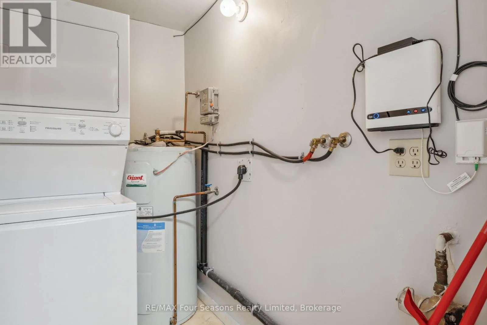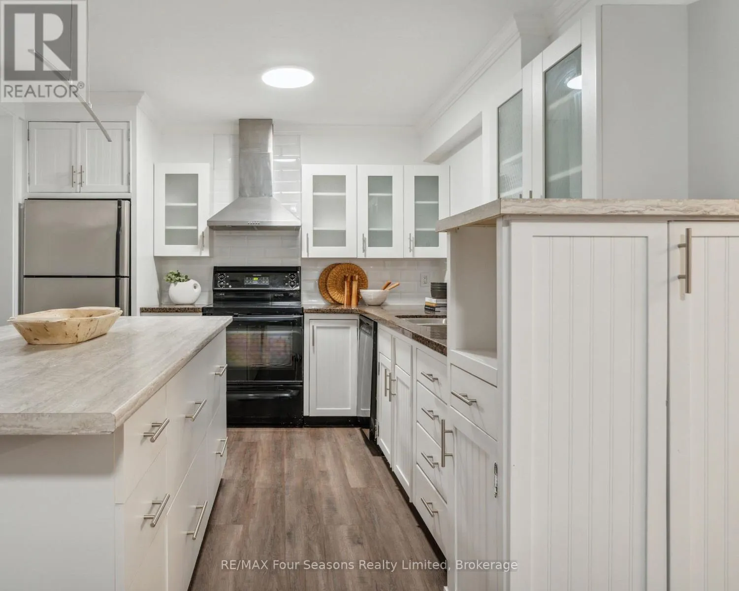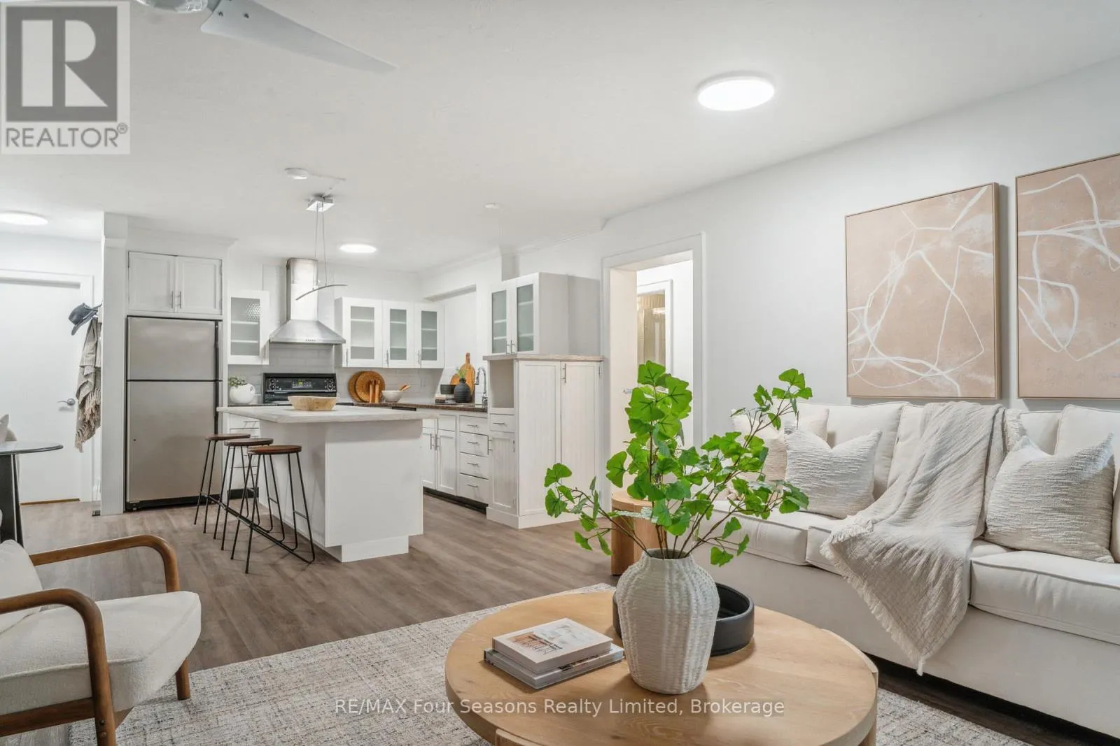 Highway 26 West and Trott Boulevard Welcome to The Cove, one of Collingwood's most desirable waterfront communities, where Georgian Bay is right outside your door and four-season adventure is always within reach. This spacious 2-bedroom, 2-bath condominium offers a relaxed, low-maintenance lifestyle with stunning waterfront living and an unbeatable location. Step inside and you're greeted by an open-concept living space. The kitchen is thoughtfully designed with modern appliances, a breakfast bar for casual dining, and seamless flow into the dining and living areas. Large windows frame views of the bay, while a cozy gas fireplace sets the stage for après-ski evenings with friends and family. From the living room, walk out to your private patio and enjoy morning coffee as the sun rises, or take in breathtaking sunsets over the water. The primary suite offers a peaceful retreat, complete with an ensuite bath and generous closet space and a second walkout patio. A second bedroom and full bath provide comfort for guests or family. With in-suite laundry, ample storage, and dedicated parking, everyday living is made simple. Enjoy peace of mind with major exterior upgrades completed in 2024, including new siding, roof, and insulation. Life at The Cove means more than just a home, its a lifestyle. Launch a kayak or paddle board steps from your door, cycle along the Georgian Trail, or explore Collingwood's vibrant downtown shops and restaurants. In winter, skiing at Blue Mountain is only minutes away, followed by evenings relaxing fireside. Golf courses, marinas, and private nature trails surround you, ensuring endless opportunities to enjoy everything Southern Georgian Bay has to offer. Whether you're looking for a full-time residence, a weekend retreat, or a seasonal getaway, 44 Trott Boulevard, Unit #7 at The Cove combines comfort, style, and location for the ultimate Collingwood experience. Condo fees include Bell Fibe Better TV with Crave + 1.5 GB unlimited internet. **ASSESSMENT TO BE PAID IN FULL** (id:27476)