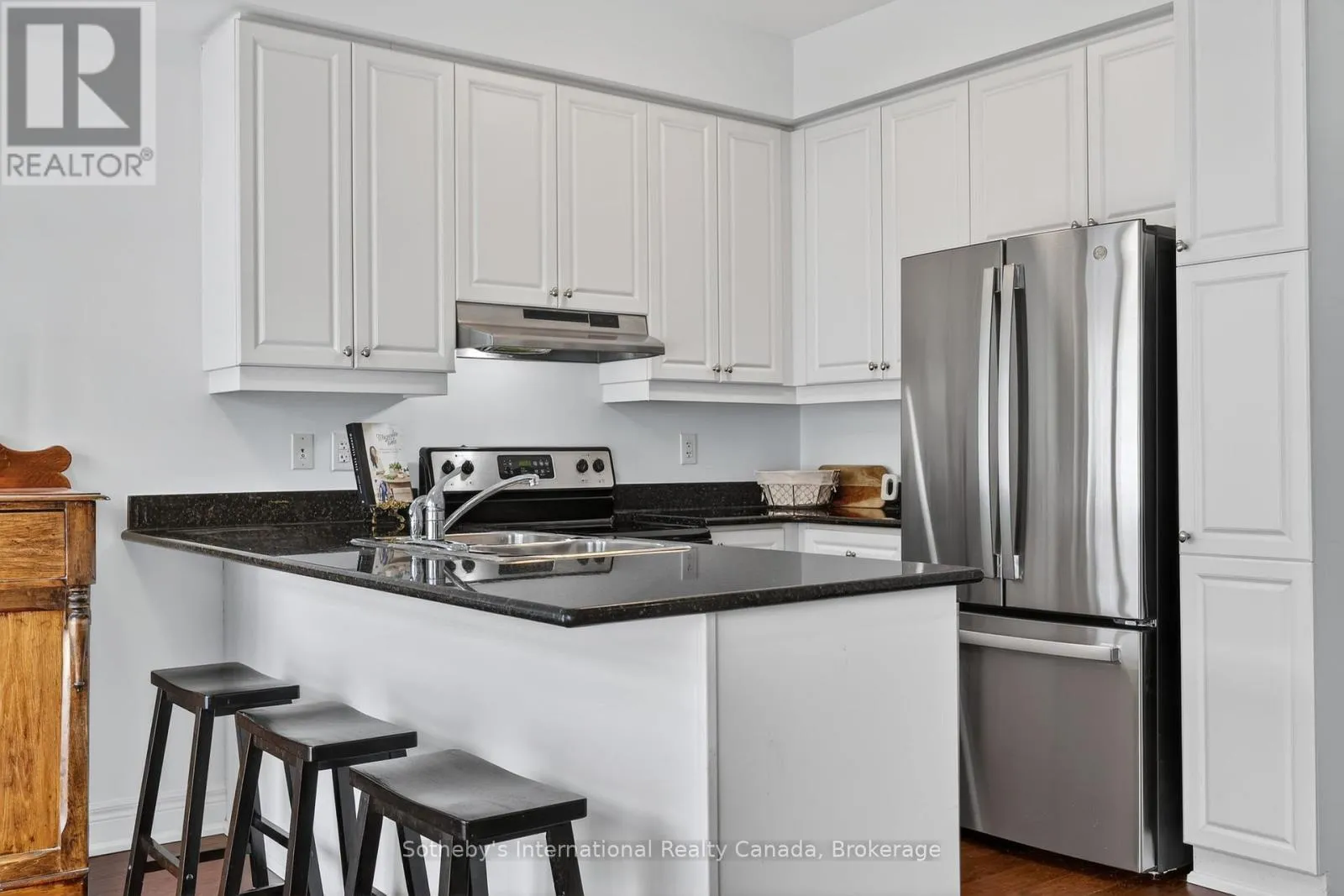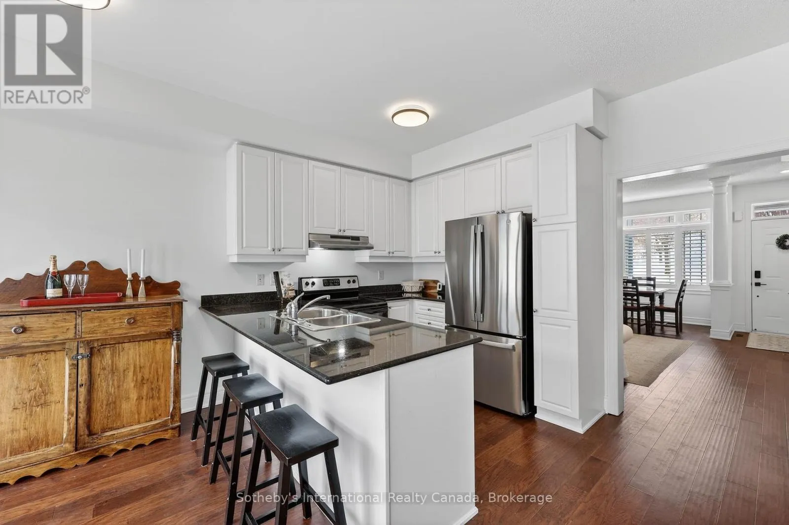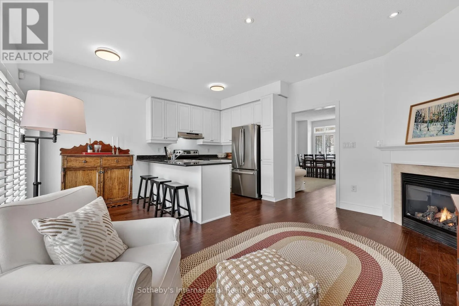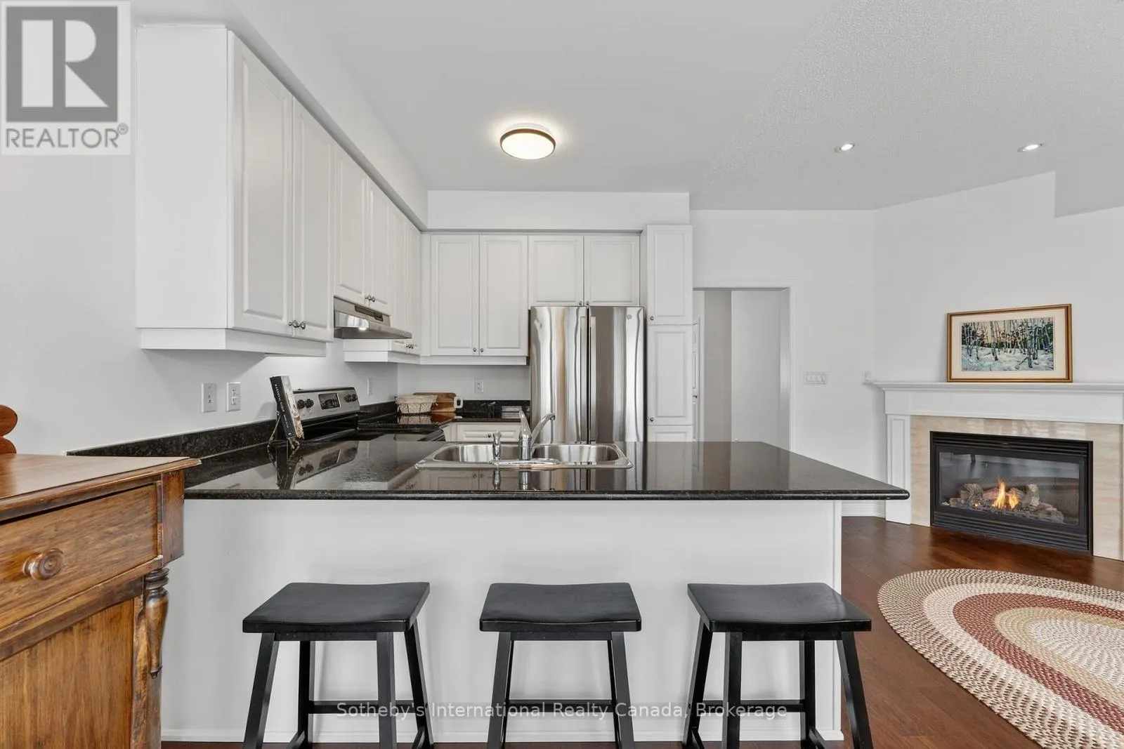 Cross Streets: First Street and North Maple Street. ** Directions: First St to North Maple St. Welcome to The Shipyards and 25 North Maple! Enjoy stylish, convenient and hassle free living in this beautiful three bedroom, two bathroom downtown condo. Located just steps from Collingwood Harbour and Hurontario St with world-class shops, dining and entertainment and minutes from sandy beaches, golf courses and skiing, you are truly immersed in the four-seasons lifestyle of Southern Georgian Bay. The bright and inviting main floor offers a spacious combined living/dining room with entrance from North Maple St, views of the lush green space to the west and the luxury of engineered hardwood floors throughout. The open concept kitchen and family room boasts ample storage, granite counters, a cozy gas fireplace and walk-out to a spacious balcony, perfect for three-season outdoor living. The generous primary bedroom features a four piece semi-ensuite, convenient office nook and bright, private, west-facing windows. With two more spacious and comfortable bedrooms, there is plenty of room for family or guests. With the added convenience of a two-car garage with interior access to the basement, this Shipyards gem is the perfect primary residence or weekend home. (id:27476)