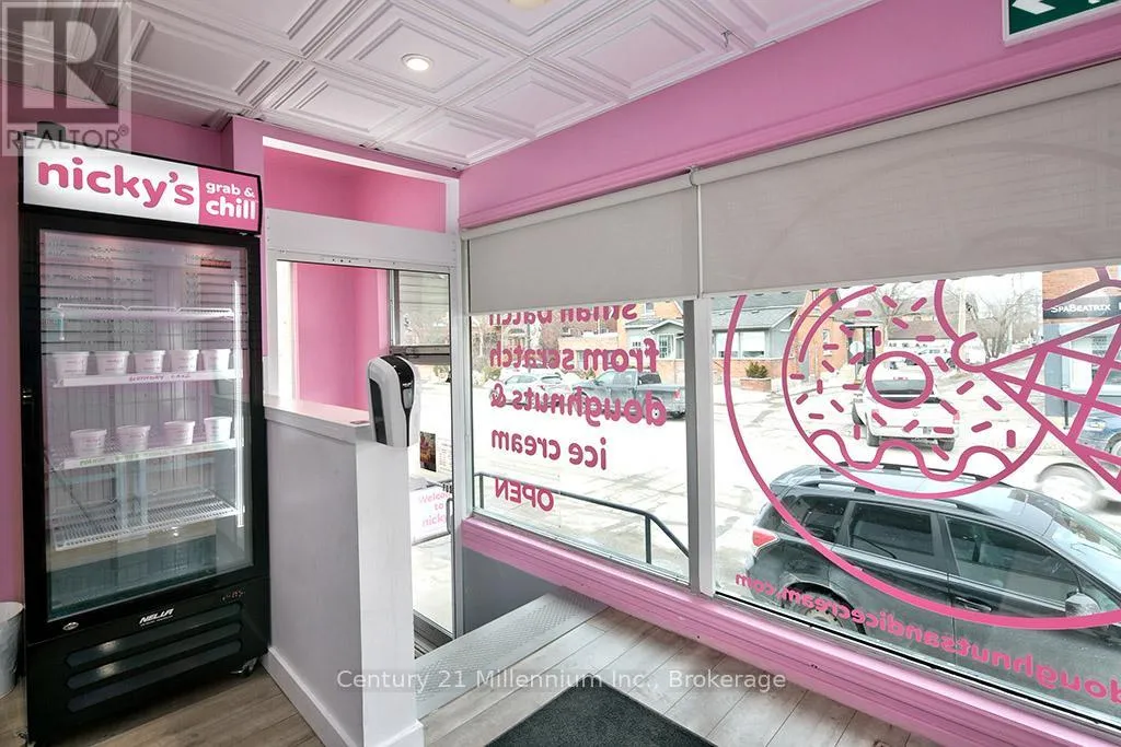 Cross Streets: Third Street & Hurontario Street. ** Directions: From First Street, head South on Hurontario Street, turn right on Third Street to Nicky's Doughnuts and Ice Cream. Welcome to Nicky's Doughnuts and Ice Cream - A rare opportunity to acquire a well-established and locally cherished gourmet doughnut and homemade ice cream business, proudly serving the community for the last five successful years. Renowned for its quality, creative recipes, and loyal customer base, this business enjoys strong local brand recognition and repeat clientele. The operation is fully turnkey, including all equipment, fixtures, and systems required to continue seamless operations, with capacity to accommodate growth. The sale includes many beloved proprietary recipes, operating procedures, and established social media accounts and website, allowing a new owner to step in with confidence from day one. Significant upside potential remains, with multiple revenue streams such as: Wholesaling doughnuts and ice cream to local grocers, cafés, and markets, expanding the menu to include fried foods or complementary offerings, franchising the proven concept and renting out commercial kitchen space during off-hours. Ideal for an owner-operator or entrepreneur looking to grow a proven concept with strong community roots, this is a standout opportunity in the specialty food space. (id:27476)