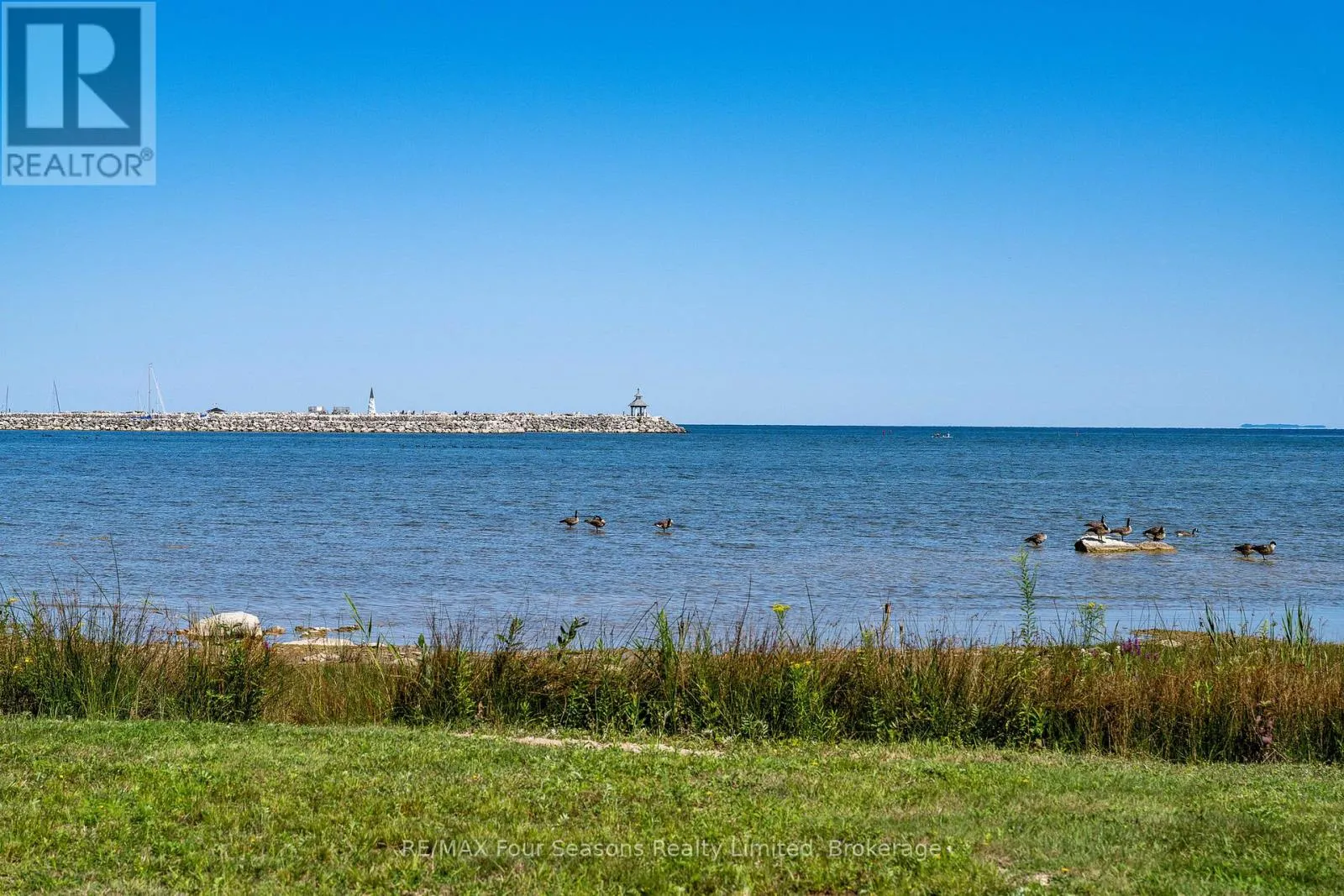 Cross Streets: TROTT BLVD/ HWY 26. ** Directions: HWY 26 TO TROTT BLVD. Georgian Bay Waterfront Corner/ End Unit Condo! Welcome to your dream waterfront retreat! This beautifully updated 3-bedroom, 2-bathroom condo offers breathtaking views of Georgian Bay with private beach access~ the perfect blend of comfort, style, and serenity. Step inside to a bright, open-concept living, dining, and kitchen area designed to capture natural light and showcase stunning waterfront vistas. Enjoy cozy evenings by the gas fireplace or step out onto one of two private balconies that open directly onto tranquil green space/ escarpment~ Stunning Sunrises and Sunsets ~ideal for peaceful relaxation or entertaining. The spacious, chic modern kitchen features~ luxury cabinetry, countertops, electric fireplace and modern finishes throughout. Major exterior upgrades in 2024 include new siding, roof, and insulation, ensuring long-term comfort and efficiency. Tucked away in a quiet corner of the complex, this unit offers exceptional privacy while being just minutes from historic downtown Collingwood and everything the region has to offer: Blue Mountain Village Championship golf courses, Scenic trails, Spas, Dining, Shopping, and Cultural Events. Embrace a four-season lifestyle on the shores of Southern Georgian Bay *Dedicated Bike/Kayak Storage. Condo fees include: Bell Fibe Better TV with Crave1.5 GB unlimited internet - ideal for remote work, streaming, and staying connected. Discover the magic of Georgian Bay living ~where every day feels like a getaway! (id:27476)