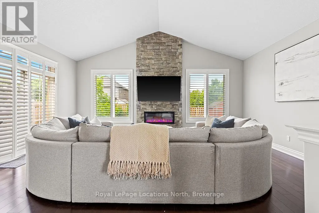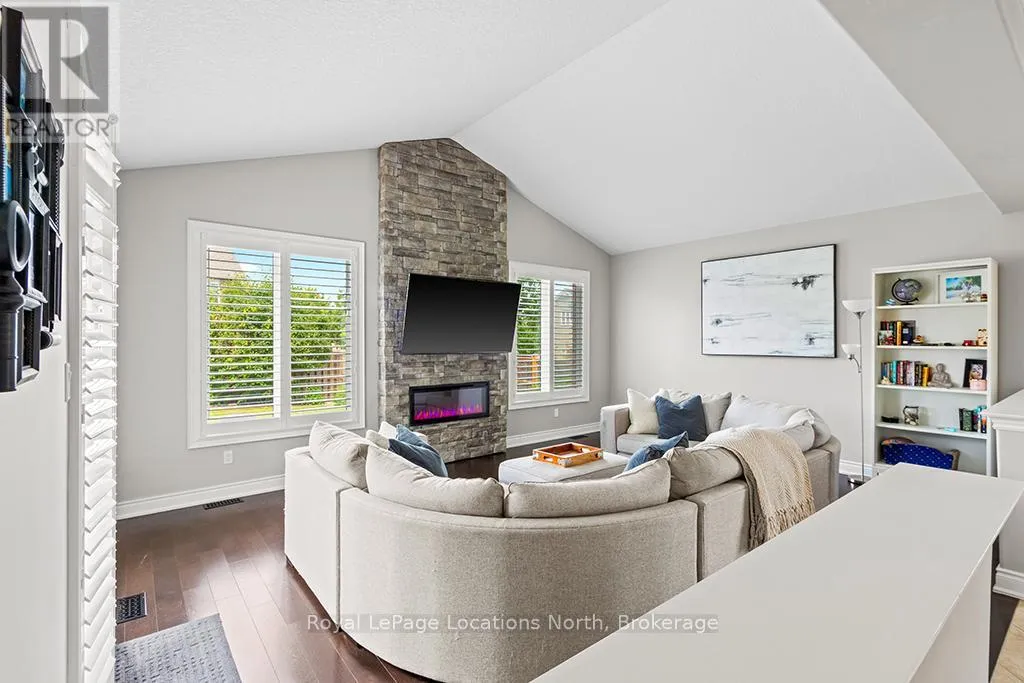 Cross Streets: Garbutt Crescent & Dance Street. ** Directions: Take Clark Street to Dance St, home is on the southwest corner of Dance and Garbutt. **Incredible Investment Opportunity!** In addition to this exceptional family home on a premium corner lot in Mountaincroft, is a complete & legal accessory apartment with great income potential! This well maintained, move-in-ready home is located just minutes from the historic charm of downtown Collingwood and the four-season lifestyle of the Town of the Blue Mountains, ideal for families, weekenders, or investors. Step inside to a bright, open-concept layout featuring hardwood floors, soaring cathedral ceilings in the Great Room and a stunning stone fireplace. Oversized windows flood the space with natural light and a walkout from the family room offers easy access to a landscaped and fully fenced backyard complete with a custom deck, mature gardens and plenty of room to entertain or relax outdoors. The spacious kitchen truly serves as the heart of the home, boasting upgraded cabinetry, a stylish tiled backsplash, an oversized island, and stainless-steel appliances. The adjoining dining area is warm and welcoming, perfect for everyday living or hosting guests. Oak stairs lead up to a generous primary suite featuring a newly renovated ensuite with a large walk-in glass shower and built in cabinetry in the walk-in closet. Two additional bedrooms, a second fully renovated three piece bathroom, and a convenient second-floor laundry room complete the upper level. The attached garage is meticulously maintained with a sealed floor and custom cabinetry. Unique to this home is a private side door entry leading to a complete and legal accessory apartment in the lower level with great income potential. A rare find on a premium lot in one of Collingwood's most desirable neighbourhoods. This is a home that truly checks all the boxes! (id:27476)