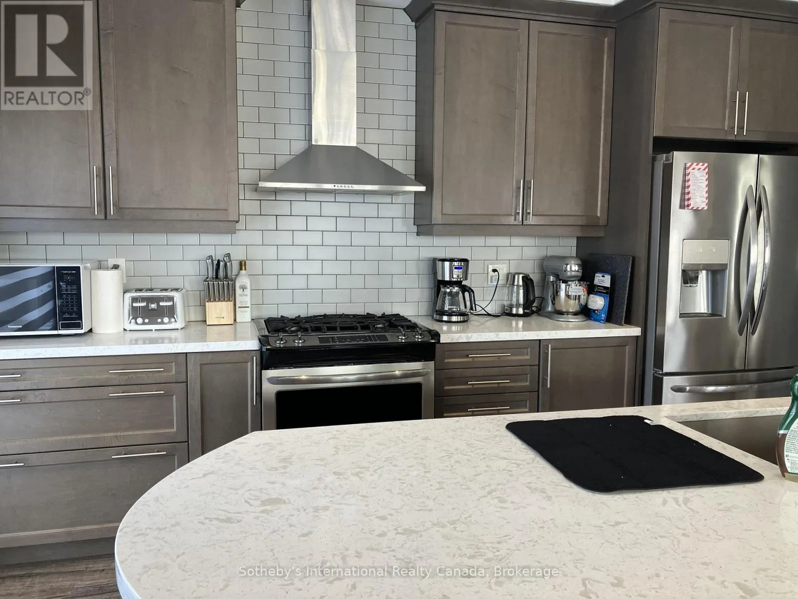 Cross Streets: Carpenter and Kennedy. ** Directions: HIghway 26 west to Cranberry Trail East. Turn left to Carpenter St. Turn left. Continue to #43, corner unit. Welcome to 43 Carpenter, with ideal family accommodations and the use of a seasonal inground pool and rec. centre. This seasonal lease is available immediately until November. Price is per mth and utilities are in addition. "Blue Fairway" is a family friendly development, central to all activities and amenities in Collngwood, Blue Mountains and Thornbury. Short drive to all locations with a variety of restaurants, coffee shops, indoor and outdoor activities, beaches, golf...to name a few! #43 is one of the larger models with 4 bedrooms upstairs (one is being used as an office), and 1 located in the basement with den, full ensuite bathroom and walk-in closet. Large primary bedroom with king bed has a 4 piece ensuite and an additional full bathroom upstairs. Additional bedrooms with queen and double beds. Spacious main level with gas fireplace and open concept living room dining/kitchen area.Patio doors from kitchen area gives access to private terrace. Laundry on main level incorporated into convenient bathroom. Access to garage. Property is not available as an annual rental. 50% of total rental period is due upon fully signed Agreement with balance and utility/damage deposit of 3000 (depending upon length of rental) due 3 weeks prior to occupancy. Tenants to provide proof of liability insurance prior to occupancy. Landlord preference is no pets, but may consider a small non-shedding dog. (id:27476)