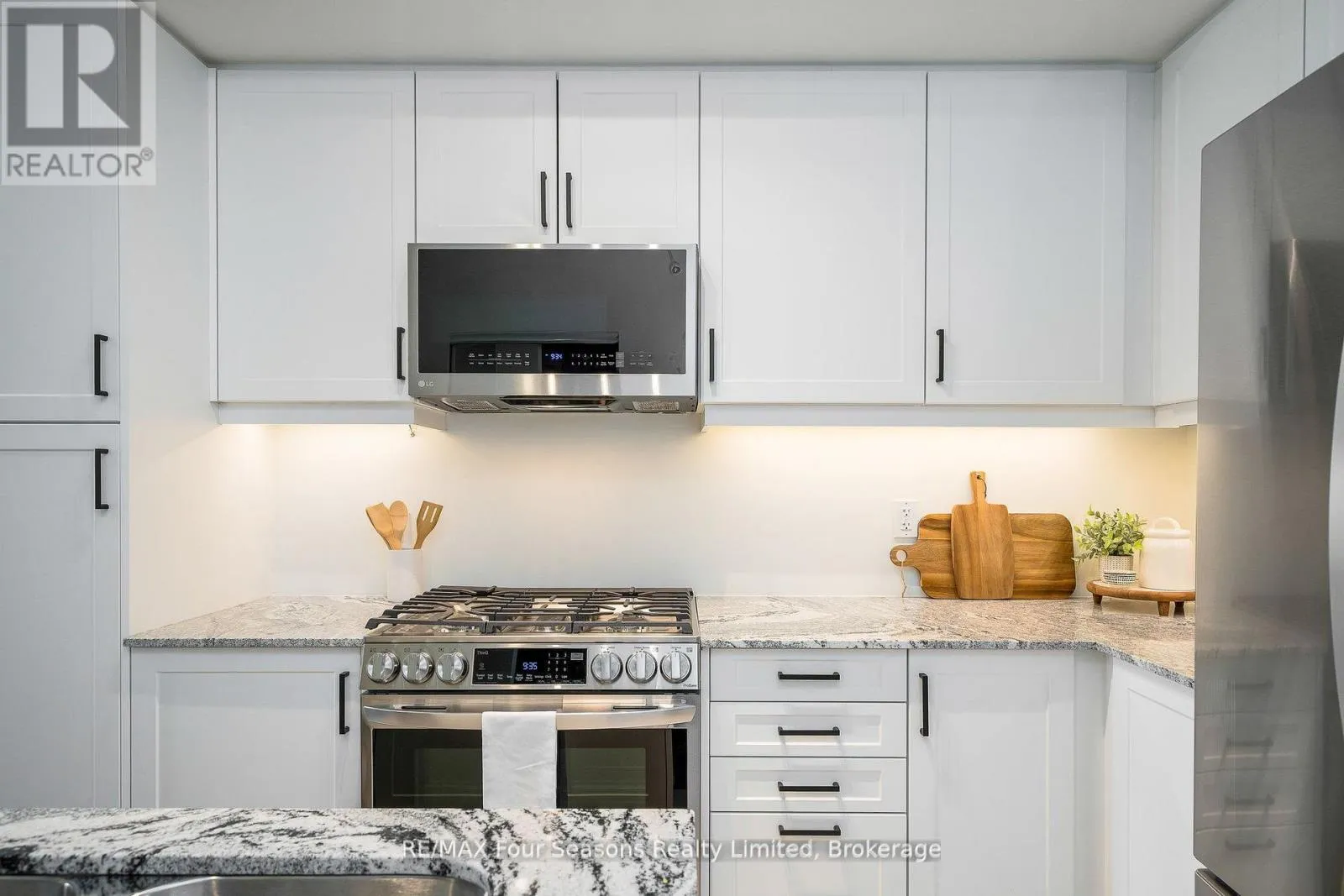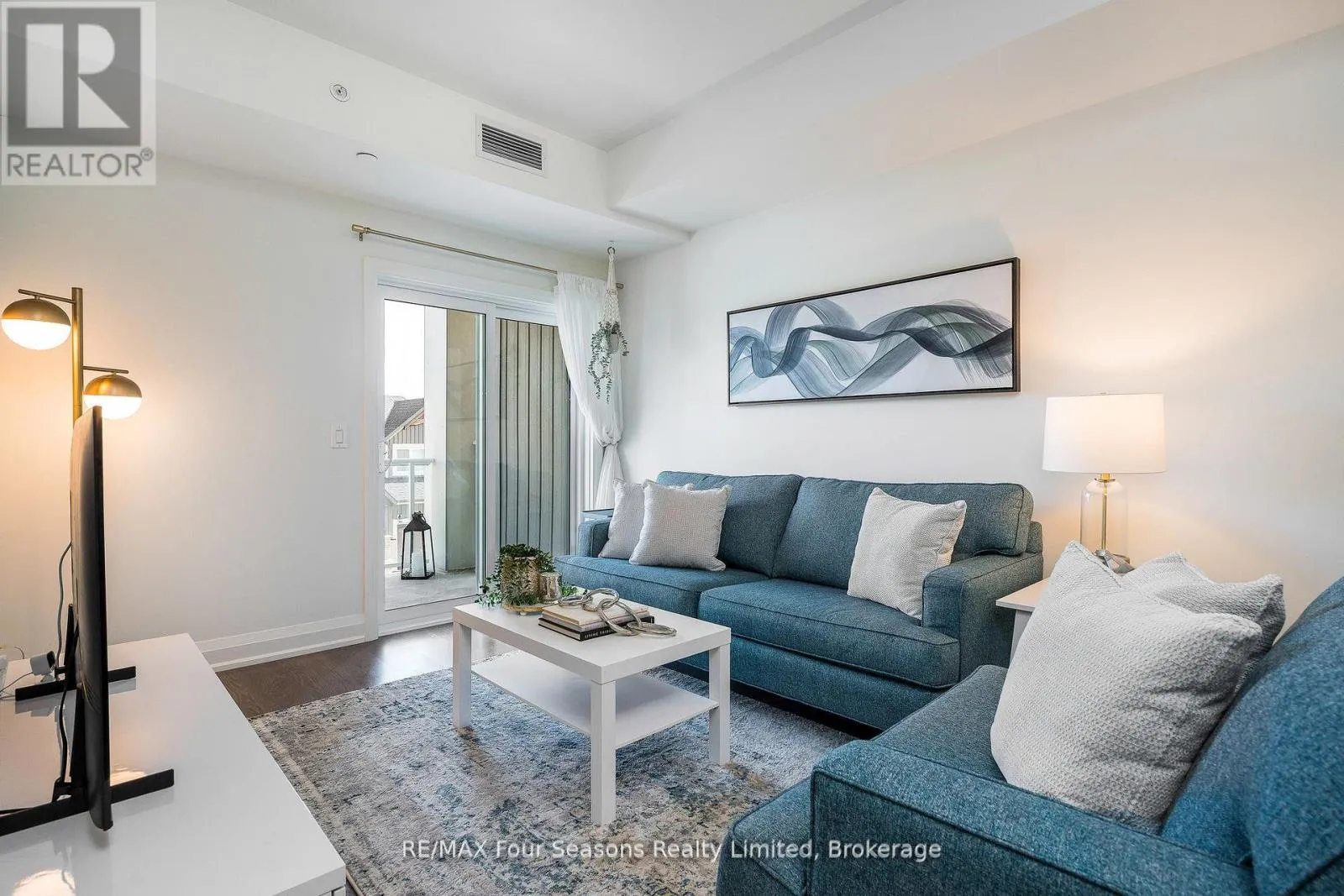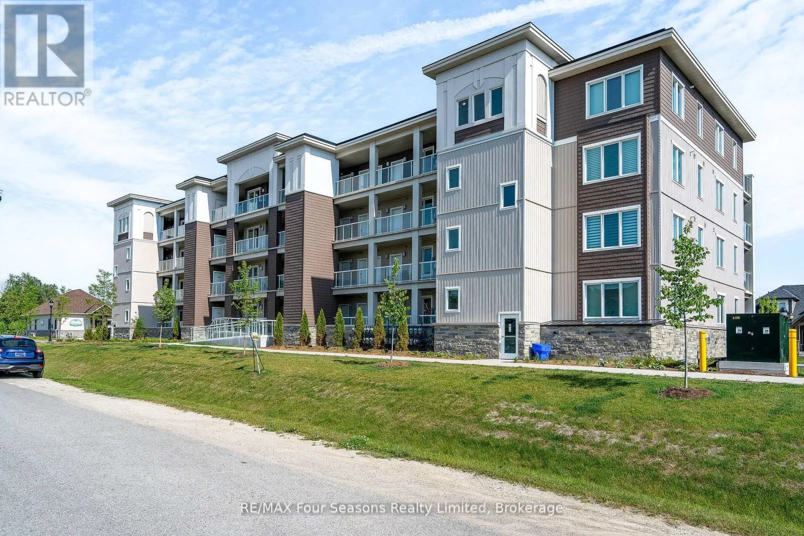 Cross Streets: Spooner & Cranberry Trail E. ** Directions: Hwy 26 to Cranberry Trail E, South Spooner Cres. BRAND NEW CONDO AT THE VIEW Blue Fairways with UNDERGROUND PARKING! Move-in ready and just completed, this beautifully upgraded Condor floorplan offers over $20K in upgrades and stylish open-concept living. Enjoy a generous 17 x 8 covered balcony with sleek glass railings and a gas BBQ hookup perfect for entertaining or unwinding outdoors. Located in the sought-after View development within Cranberry Golf Course, this unit showcases high-end finishes including laminate and tile flooring, 9 ceilings, and granite countertops in both the kitchen and ensuite. The luxurious ensuite also features a modern glass walk-in shower. The gourmet kitchen is equipped with a gas range, stainless steel appliances, stone counters, and ample cabinetry ideal for cooking and hosting. Additional highlights include; Gas heating & central air, In-suite laundry closet, Large storage locker just outside your front door, and One assigned underground parking space. Enjoy a prime location with direct access to the Georgian Trail, and just steps to shops, restaurants, and cafes. Only 5 minutes to downtown Collingwood, ski hills, beaches, and golf courses all nearby perfect for year-round living or weekend escapes. Condo fees include garbage removal, and a brand new pool, fitness center, and playground exclusively for The View residents. (id:27476)