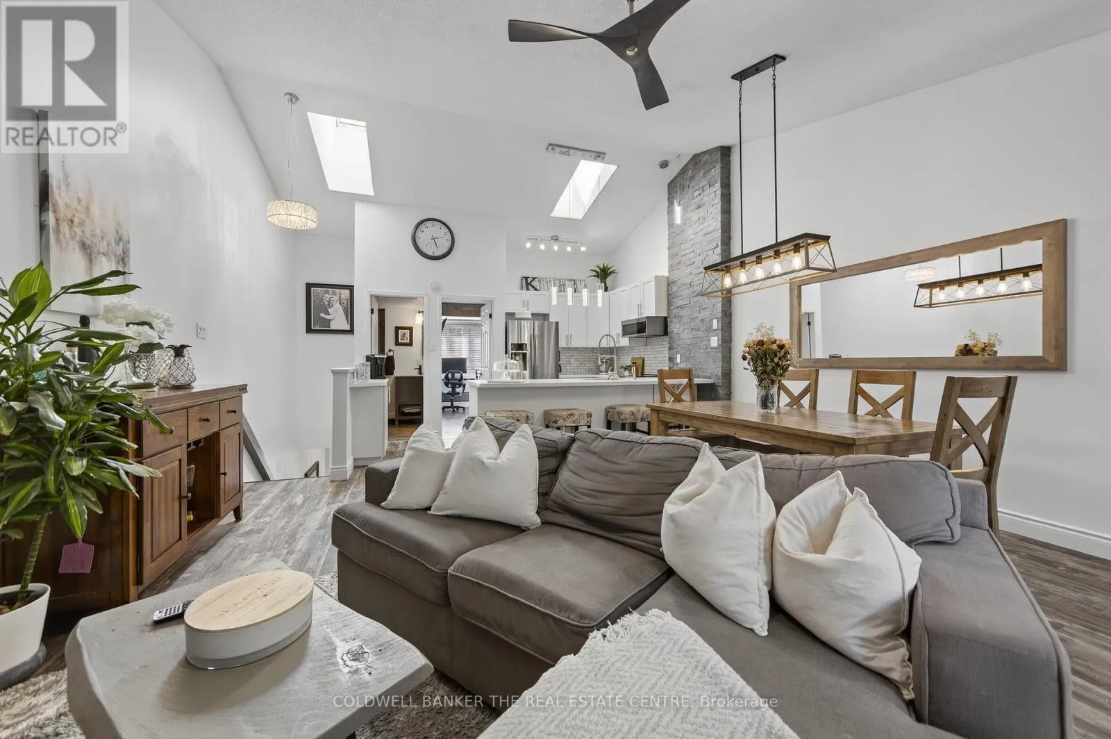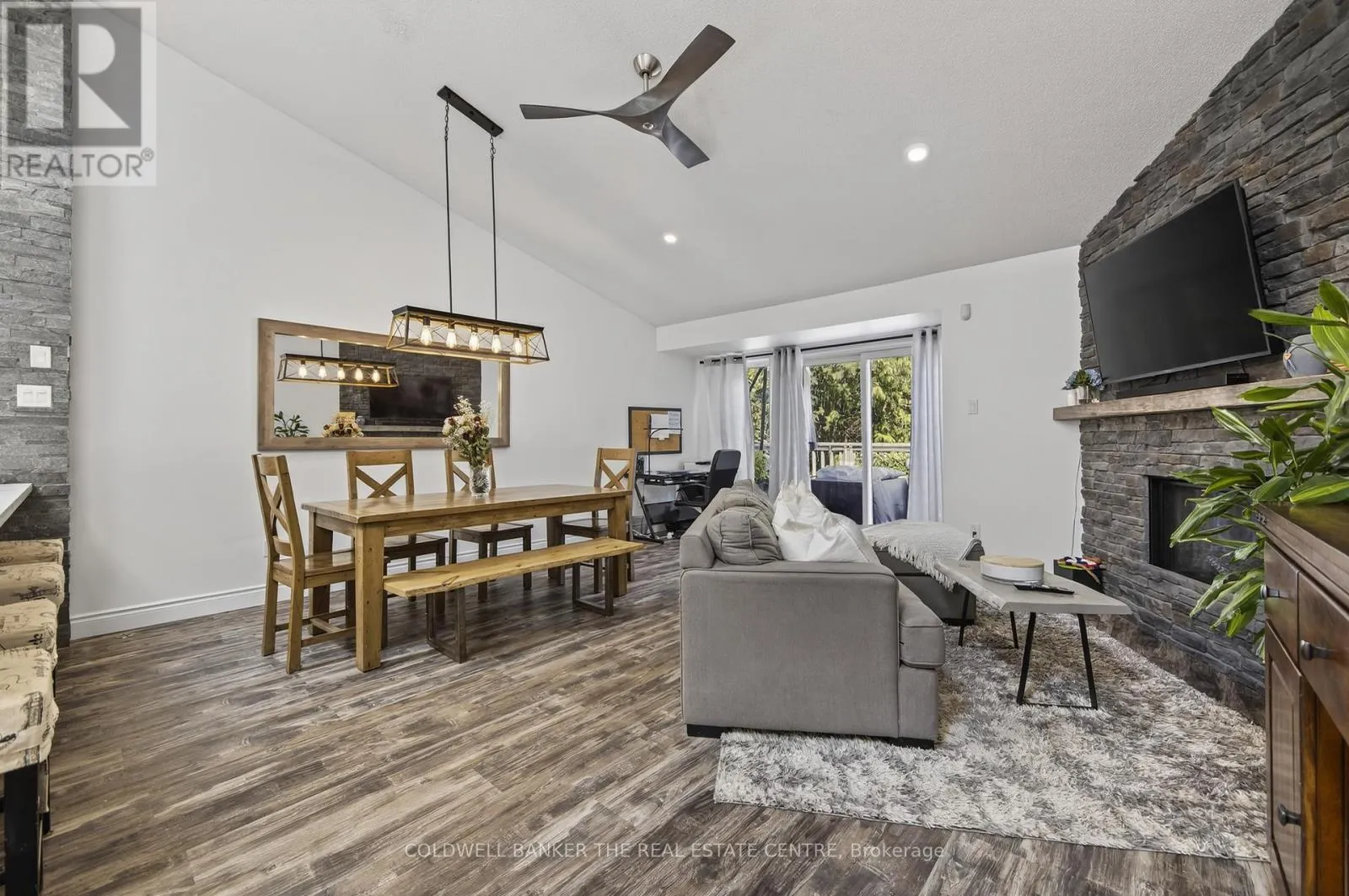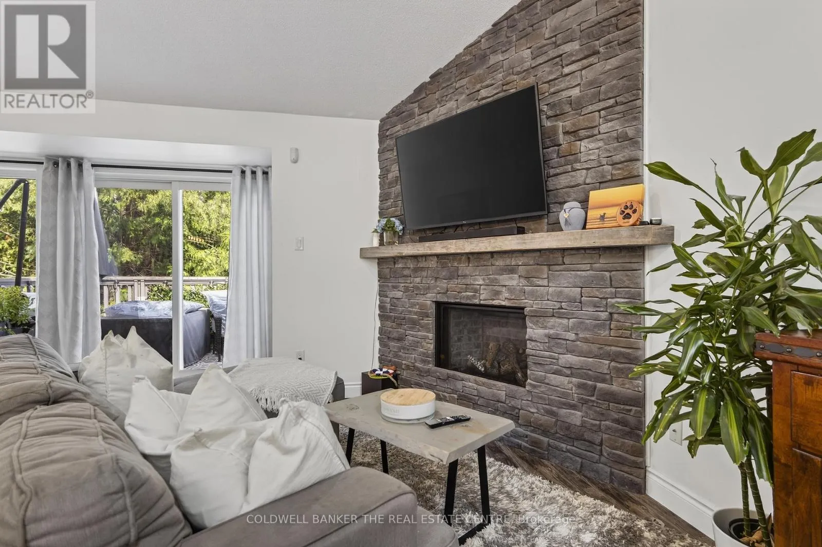 Harbour & Balsam Beautifully renovated 3-bedroom, 3-bathroom Harbourside townhome offering approximately 1,448 sq ft of updated living space in the heart of Collingwood. Built in 1990 and tastefully renovated throughout, this home blends modern finishes with a peaceful, nature-filled setting just steps from Georgian Bay, Cranberry Marina, golf, trails, and only minutes to Blue Mountain.The main level features a spacious laundry closet, a serene primary bedroom with renovated ensuite, and a second large bedroom with its own beautifully updated ensuite and walkout to a private backyard terrace surrounded by mature trees.Upstairs, the open-concept living space showcases vaulted ceilings, a stone gas fireplace, modern kitchen with stainless steel appliances, quartz counters and island, plus a bright dining area with walkout to a private deck nestled in the trees. A third bedroom with semi-ensuite completes the upper level.Perfect for year-round living, a weekend retreat, first-time buyers or downsizers. Includes one parking space plus ample visitor parking. Enjoy the best of Collingwood's four-season lifestyle just minutes from skiing, waterfront, shops, and restaurants. (id:27476)