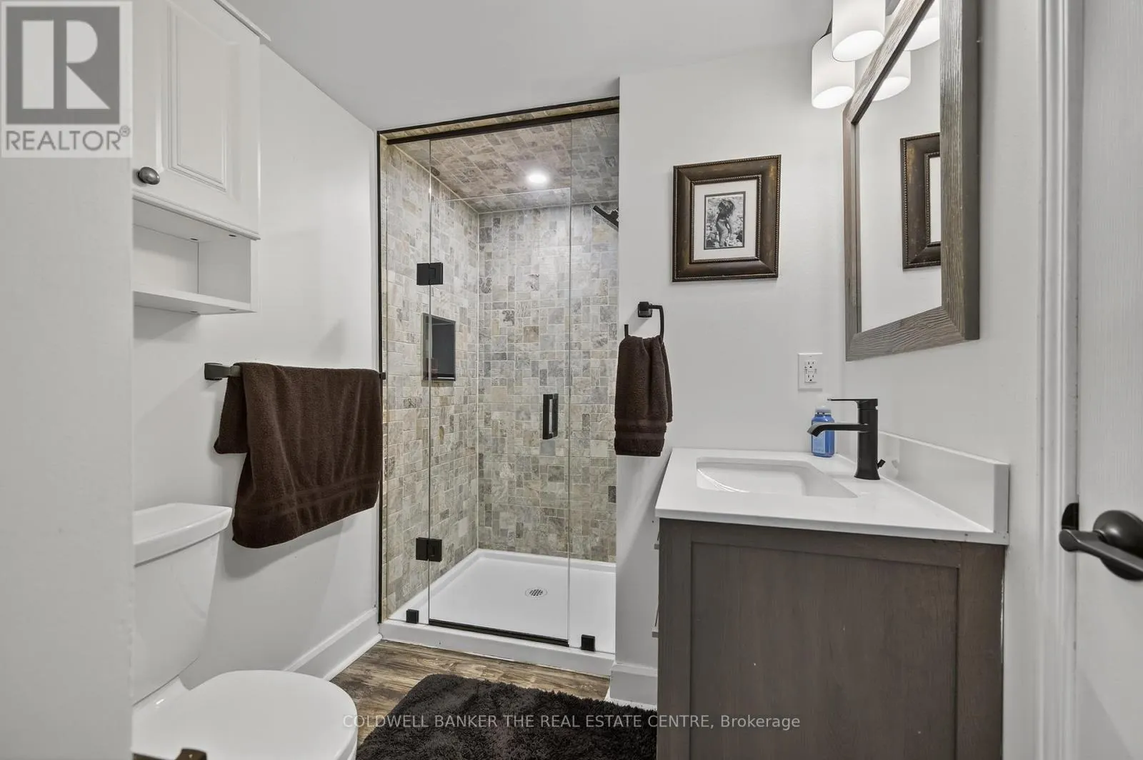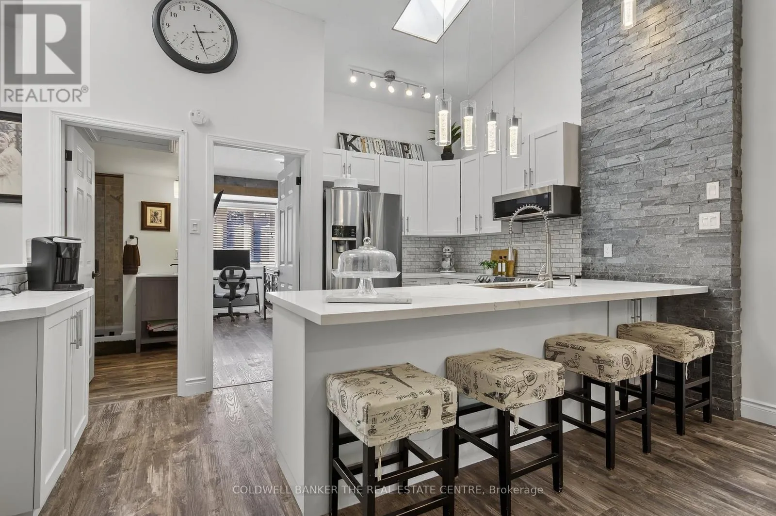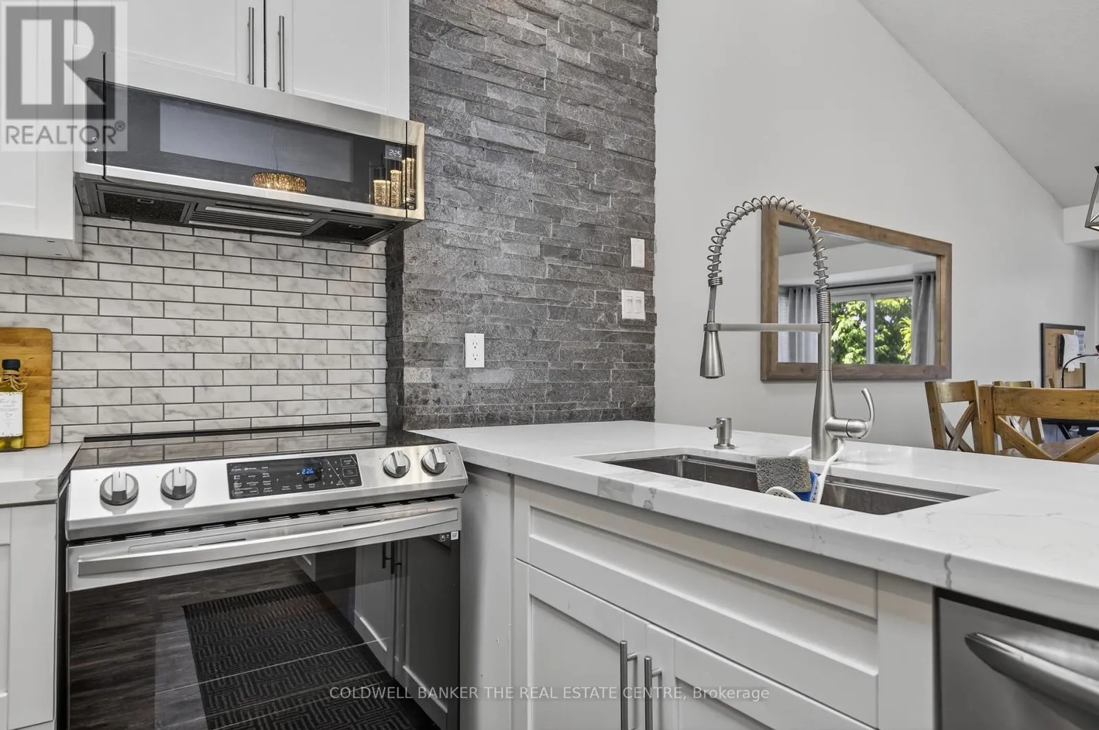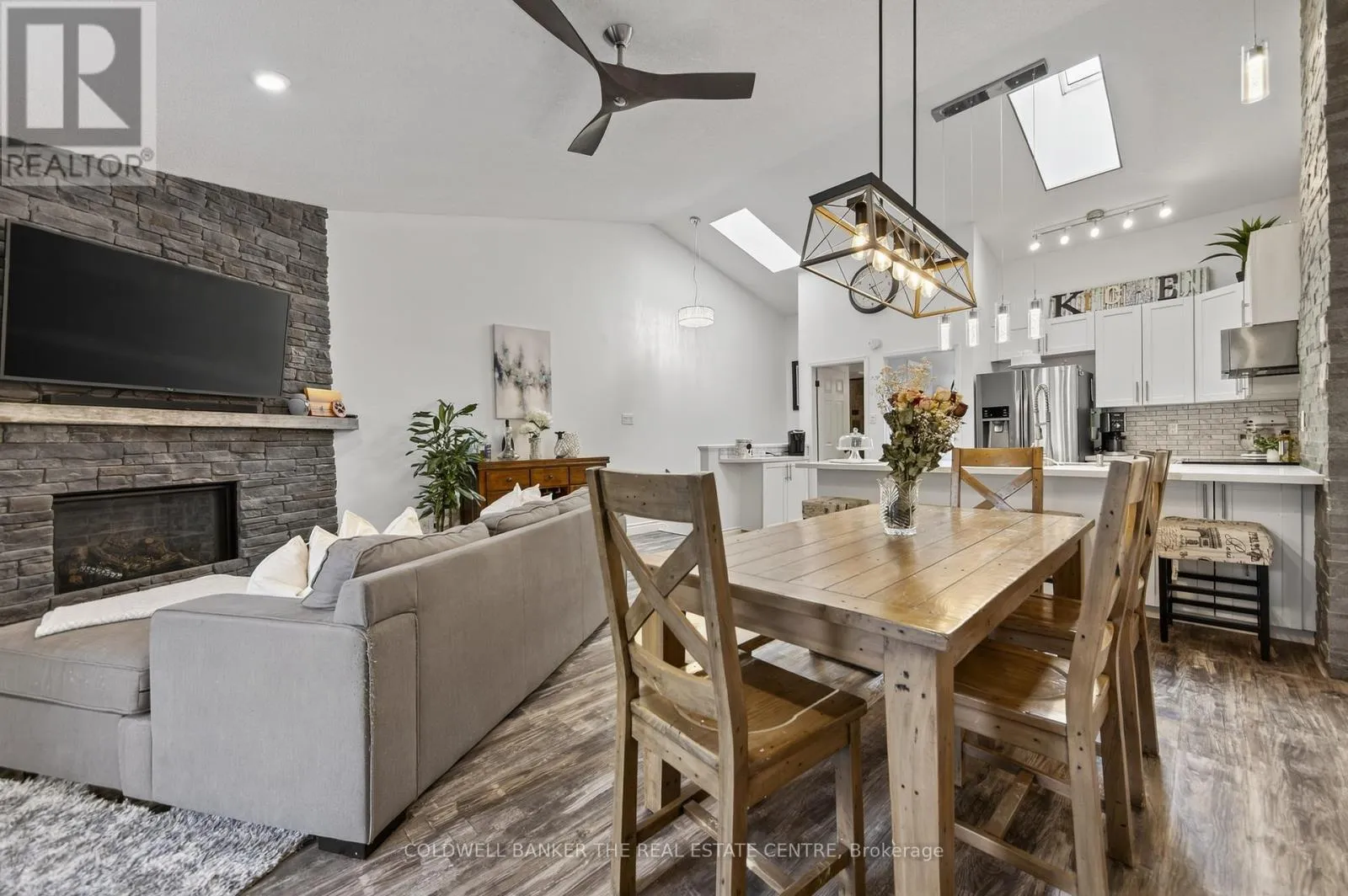 Harbour & Balsam Beautifully renovated 3-bedroom, 3-bathroom Harbourside townhome offering approximately 1,448 sq ft of updated living space in the heart of Collingwood. Built in 1990 and tastefully renovated throughout, this home blends modern finishes with a peaceful, nature-filled setting just steps from Georgian Bay, Cranberry Marina, golf, trails, and only minutes to Blue Mountain.The main level features a spacious laundry closet, a serene primary bedroom with renovated ensuite, and a second large bedroom with its own beautifully updated ensuite and walkout to a private backyard terrace surrounded by mature trees.Upstairs, the open-concept living space showcases vaulted ceilings, a stone gas fireplace, modern kitchen with stainless steel appliances, quartz counters and island, plus a bright dining area with walkout to a private deck nestled in the trees. A third bedroom with semi-ensuite completes the upper level.Perfect for year-round living, a weekend retreat, first-time buyers or downsizers. Includes one parking space plus ample visitor parking. Enjoy the best of Collingwood's four-season lifestyle just minutes from skiing, waterfront, shops, and restaurants. (id:27476)