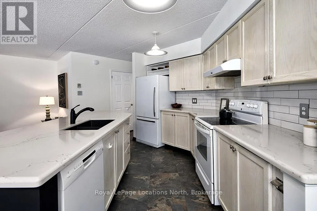 Cross Streets: Hwy 26 and Lighthouse Lane. ** Directions: Hwy 26 to Lighthouse Lane, Right on Mariners Way, complex is on the left. An exceptional opportunity to own one of the few 3-bedroom corner units in the coveted waterfront community of Lighthouse Point.This spacious and bright 1,396 sq. ft. ground-floor residence offers a rare combination of size, layout, and location. Ideal as a full-time home or weekend retreat, the well-designed floor plan provides both comfort and versatility, with the opportunity to update and tailor the space to your personal style.The open-concept kitchen, living, and dining area is designed for effortless entertaining, while the large primary suite features a private ensuite and walkout patio with direct access to beautifully maintained grounds and resort-style amenities. Two additional bedrooms offer ample space for family and guests.Set within a private, amenity-rich community, residents enjoy access to waterfront trails, pools, tennis and pickleball courts, and more, all just minutes from downtown Collingwood and Blue Mountain.A rare offering in one of Collingwood's most desirable communities. (id:27476)