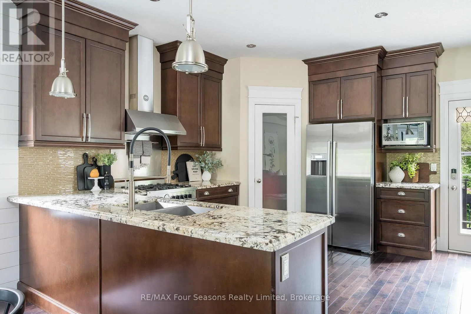 Cross Streets: Chamberlain & High Street. ** Directions: High Street to Chamberlain Crescent. Spring has arrived, and with it comes the perfect opportunity to make a fresh start in this exceptional Collingwood home. Situated in one of the town's most sought-after family neighbourhoods, this beautifully finished property offers an inviting blend of comfort, style, and connection to the outdoors. Just steps from the Black Ash Trail, JJ Cooper Park, and Collingwood's extensive trail system, it's a location that brings both convenience and natural beauty together. Inside, the open-concept main floor is thoughtfully designed for everyday living and effortless entertaining. The great room features a stunning gas fireplace with a stone surround and custom built-ins-an inviting focal point for relaxed evenings. The dining area adds character with its shiplap feature wall, while the well-appointed kitchen is sure to impress with a 36" Bertazzoni gas stovetop, premium Bosch appliances, and a spacious walk-in pantry-perfect for everything from casual family meals to hosting friends. Step outside to your private two-tiered deck, where you can enjoy sunny spring mornings with a coffee, dine al fresco, or unwind as the yard comes to life for the season. Upstairs, three generous bedrooms are filled with natural light, offering comfort and space for the whole family. The fully finished basement expands your living area with a large bonus room, a modern 3-piece bath, and a full laundry room designed for convenience. Beyond the home, Collingwood offers an unmatched four-season lifestyle. From its vibrant downtown and excellent schools to its thriving arts and culinary scene, everything you need is close at hand. With Georgian Bay, Blue Mountain, and endless trails for hiking and biking just minutes away, spring is just the beginning of what this location has to offer. Whether you're starting a new chapter, growing your family, or looking for a place to truly enjoy the seasons, this home is ready to welcome you this spring and beyond. (id:27476)