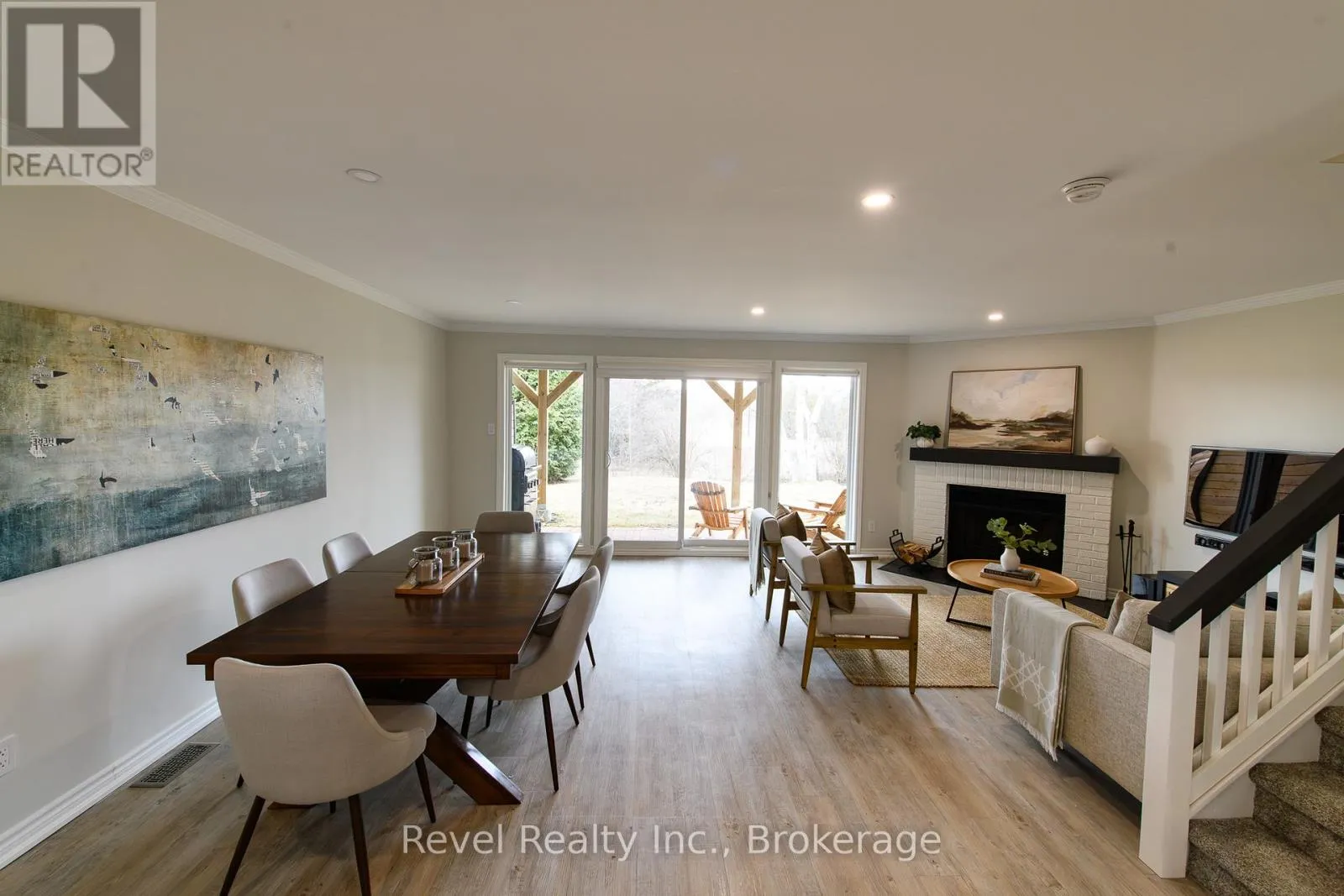 Cranberry Trail E/Dawson Dr Beautifully Updated Condo with Panoramic Views in Cranberry Village. Welcome to this stunning, 1,400 sq ft move-in-ready condo offering breathtaking panoramic views of the golf course, the Niagara Escarpment, and Blue Mountain. Located in the highly sought-after Cranberry Village community, this bright and spacious three-bedroom, two-and-a-half-bathroom home is designed for comfort, style, and convenience. The open-concept main floor features an upgraded kitchen with crisp white shaker-style cabinetry, quartz countertops, stainless steel appliances, and pot lights throughout. Flowing seamlessly into the dining and living areas, the space is anchored by a cozy wood-burning fireplace perfect for entertaining family and friends. Walk out to the private patio and BBQ area to soak in the natural beauty around you. Recently updated throughout, this home offers elegant, spa-inspired bathrooms with glass-enclosed showers, quartz counters, and sleek European-style cabinetry. Enjoy the 2024 renovations: balcony, plush, high-quality carpeting upstairs, enhanced lighting with new pot lights, flat ceilings and a fresh, modern paint palette. Furnace (2022), Water Heater is owned (2018) and both bathrooms were renovated in 2018. Storage is plentiful with a dedicated storage locker, extra space under the stairs, and easy access to the crawl space. Condo fees include cable, internet, windows, doors, decks, and shingles, providing peace of mind and an easy way of life. Ideally located just minutes from Collingwood's vibrant downtown, ski hills, scenic trails, shopping, and Cranberry Marina. The renovated upper deck is the perfect place to relax, watch the sunset, and experience the best of four-season living. Condo Fees 638.67 + 62.15 (for group rate on internet/Cable). (id:27476)