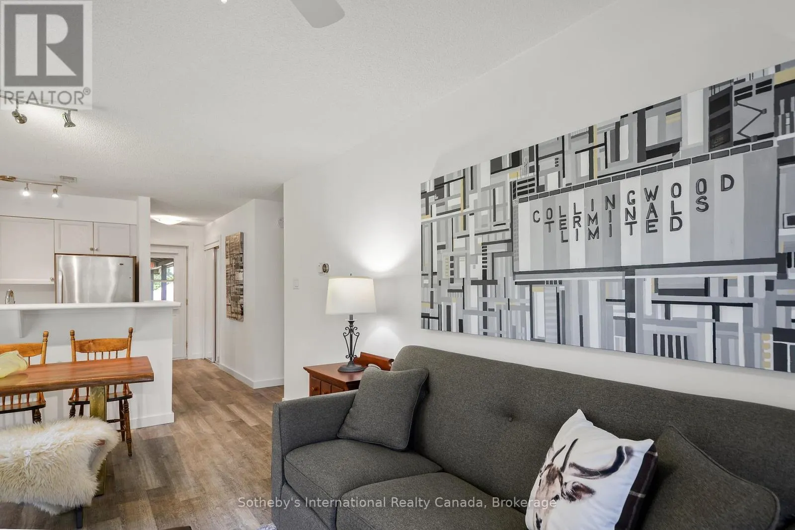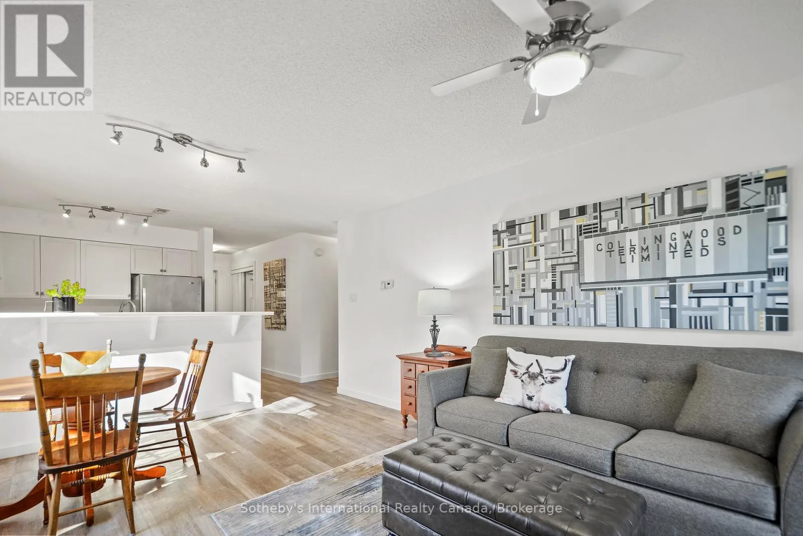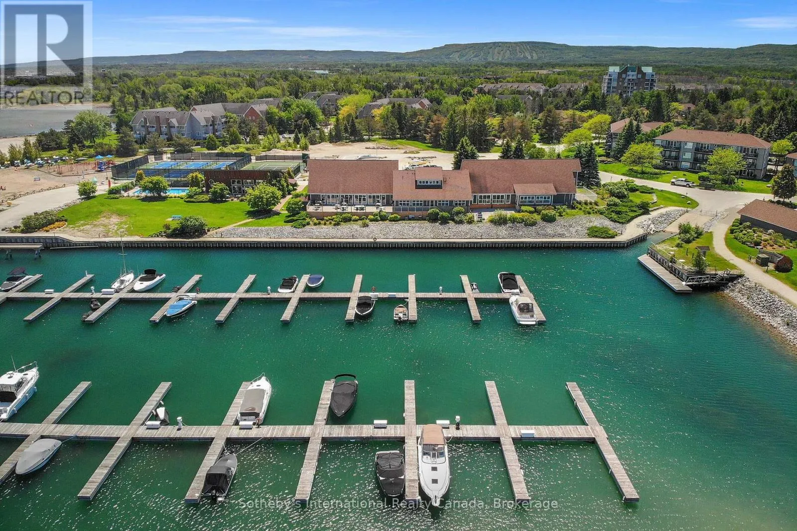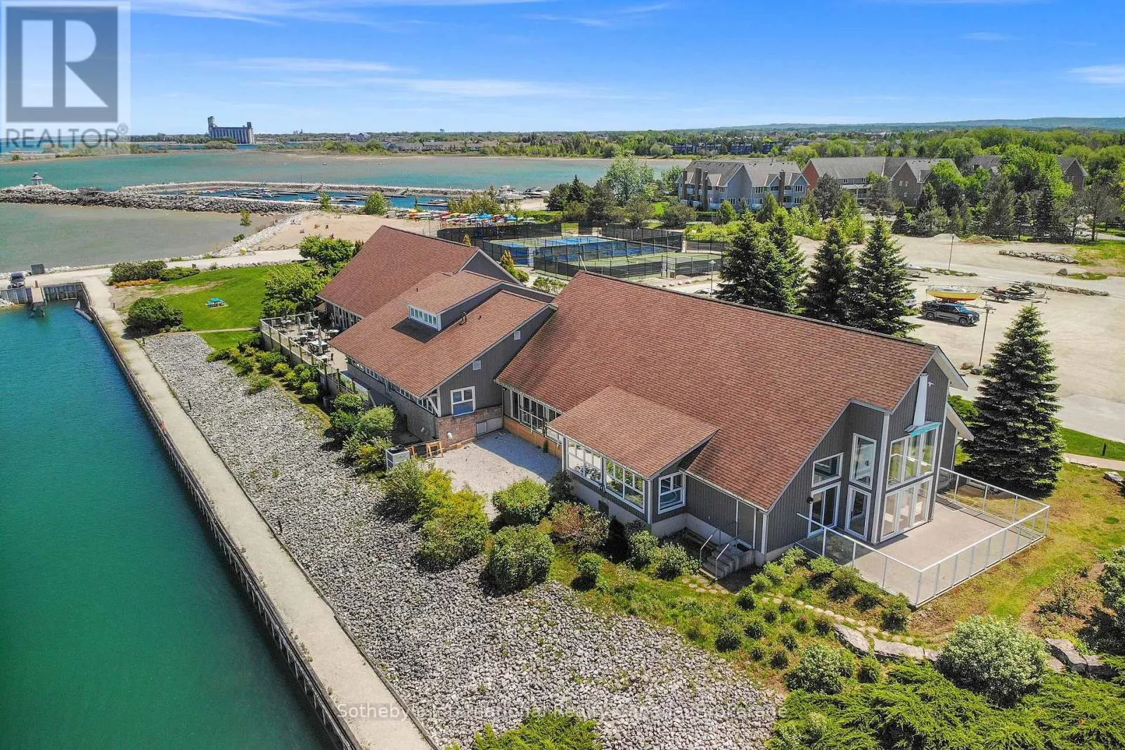 Highway 26 west from Collingwood, Right at the lights into Lighthouse Point. Right on Mariners Way to 1st condos on the rightside. This 2 bedroom, 2 bathroom, 2nd floor unit has gorgeous forest\\landscape views out of the primary suite and living area. An open and bright livingroom with gas f/p, dining area and kitchen that features stainless steel appliances. The Primary suite has double closets and ensuite bath with shower. One large guest bedroom plus a second full bath. Enjoy over 1 mile of walking paths in the community, with over 10 acres of environmentally protected lands including a private marina and boat house, 7 tennis courts, 4 pickleball courts, 2 outdoor pools, a sandy beach, two additional beaches and a deep swimming area off the yacht pier, a volleyball court, kayak racks\\access and putting green. The recreation centre is huge and has an indoor pool, spas, sauna, gym, games room, library, double kitchen, outdoor patio seating, social room with piano and more! Just minutes to shopping or entertainment at the Gayety Theatre, the ski hills at Blue Mountain, and on route to the quaint town of Thornbury, not to mention having Georgian Bay and Wasaga Beach at your finger tips!. Updates include; flooring and trim (2024), water heater (2023), windows (2021), gas line to BBQ (2019). The deck has a view of beautiful trees\\forest which provides a very private and enjoyable outdoor experience. You would own two outdoor storage lockers and have access to two more common storage areas. There is one parking space with additional guest parking in the immediate parking area. (id:27476)