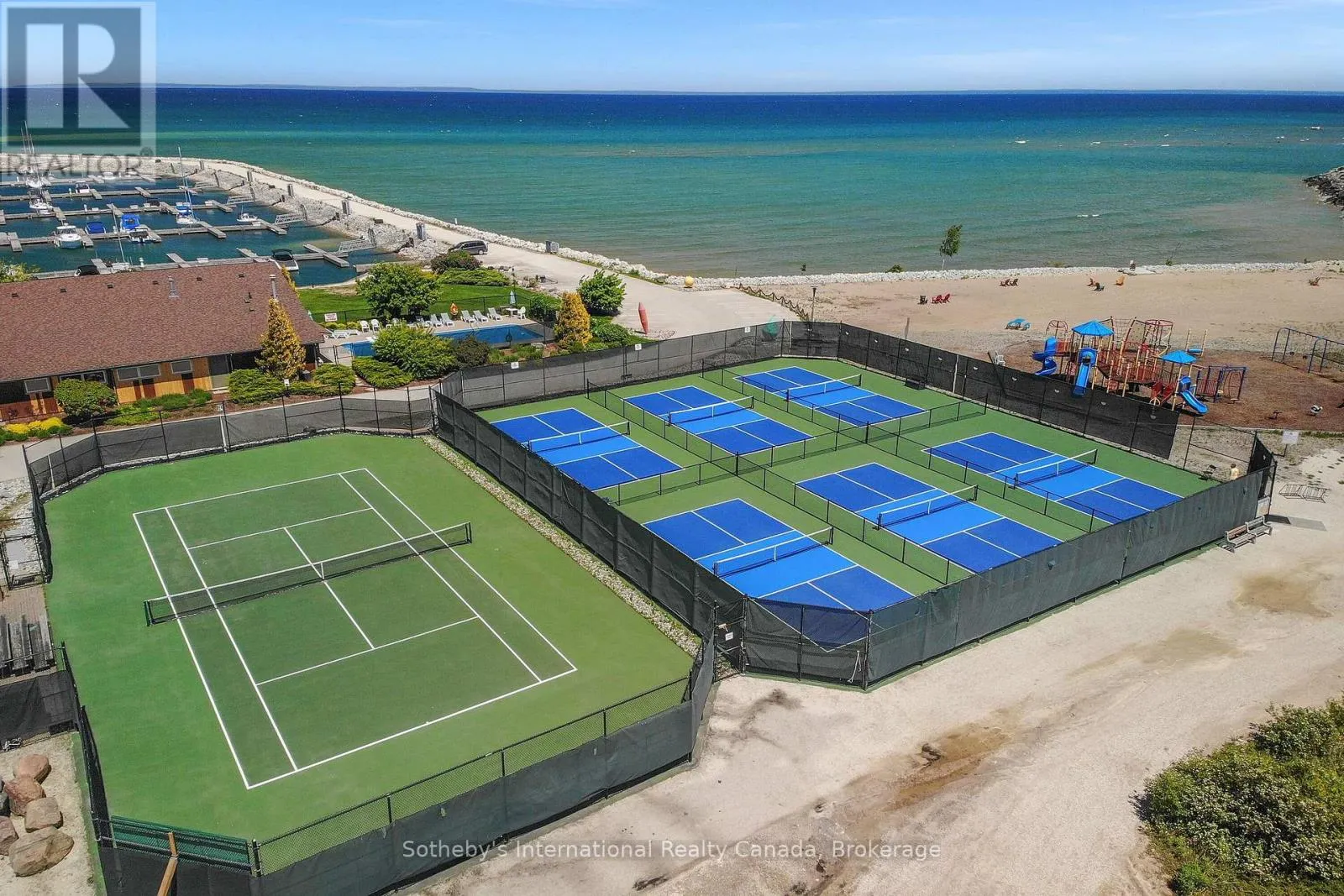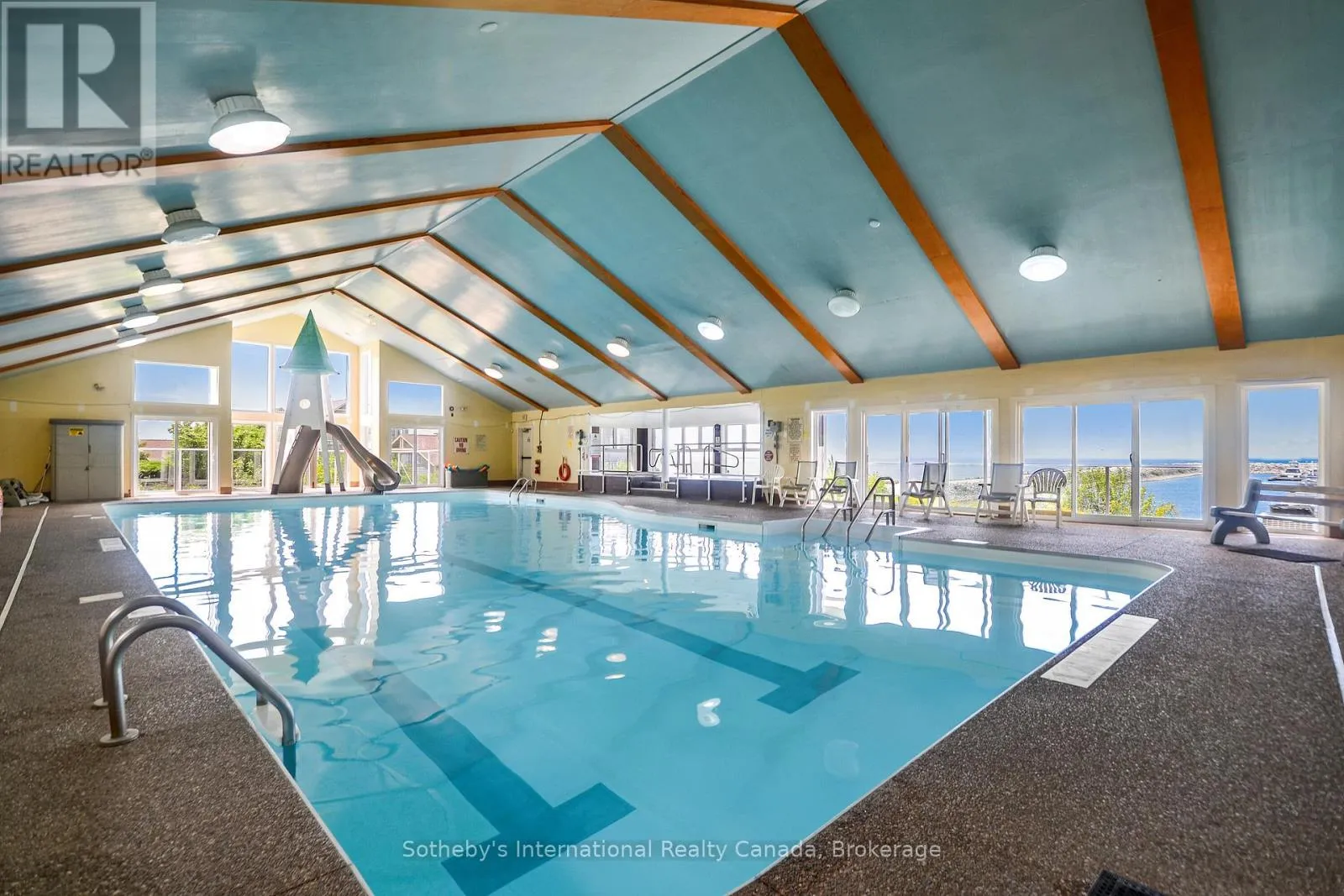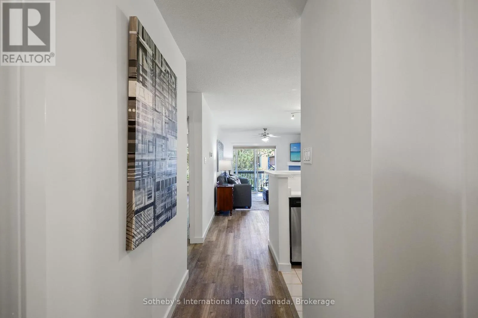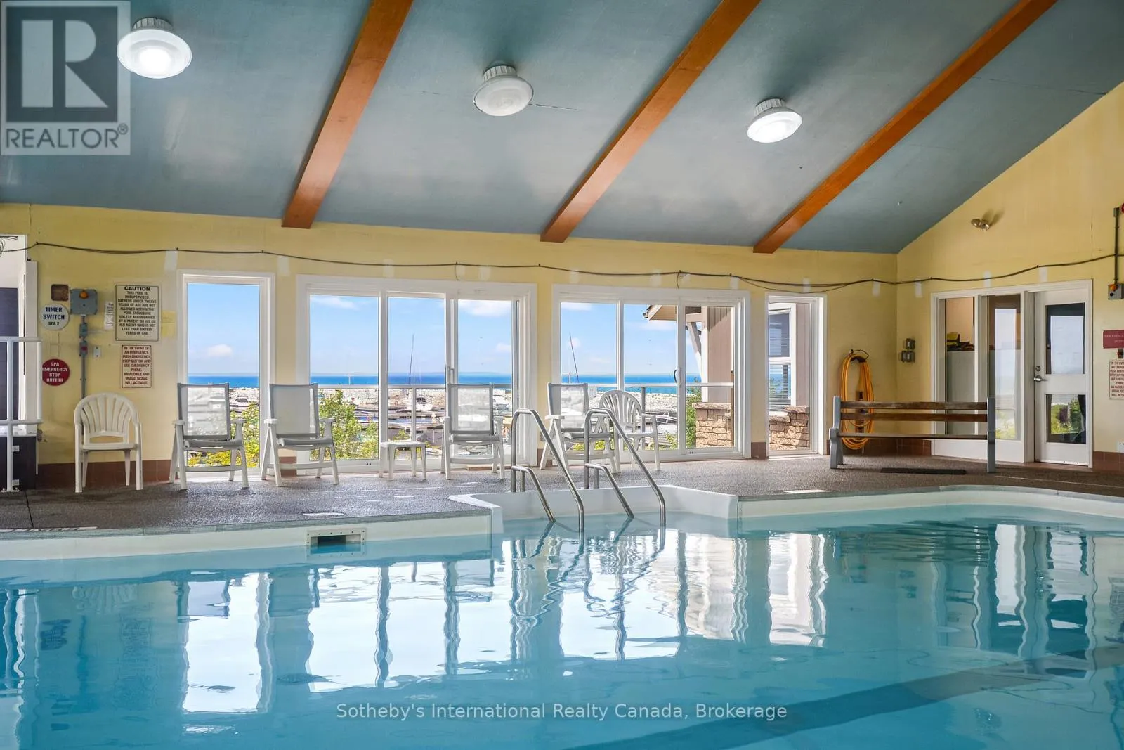 Highway 26 west from Collingwood, Right at the lights into Lighthouse Point. Right on Mariners Way to 1st condos on the rightside. This 2 bedroom, 2 bathroom, 2nd floor unit has gorgeous forest\\landscape views out of the primary suite and living area. An open and bright livingroom with gas f/p, dining area and kitchen that features stainless steel appliances. The Primary suite has double closets and ensuite bath with shower. One large guest bedroom plus a second full bath. Enjoy over 1 mile of walking paths in the community, with over 10 acres of environmentally protected lands including a private marina and boat house, 7 tennis courts, 4 pickleball courts, 2 outdoor pools, a sandy beach, two additional beaches and a deep swimming area off the yacht pier, a volleyball court, kayak racks\\access and putting green. The recreation centre is huge and has an indoor pool, spas, sauna, gym, games room, library, double kitchen, outdoor patio seating, social room with piano and more! Just minutes to shopping or entertainment at the Gayety Theatre, the ski hills at Blue Mountain, and on route to the quaint town of Thornbury, not to mention having Georgian Bay and Wasaga Beach at your finger tips!. Updates include; flooring and trim (2024), water heater (2023), windows (2021), gas line to BBQ (2019). The deck has a view of beautiful trees\\forest which provides a very private and enjoyable outdoor experience. You would own two outdoor storage lockers and have access to two more common storage areas. There is one parking space with additional guest parking in the immediate parking area. (id:27476)