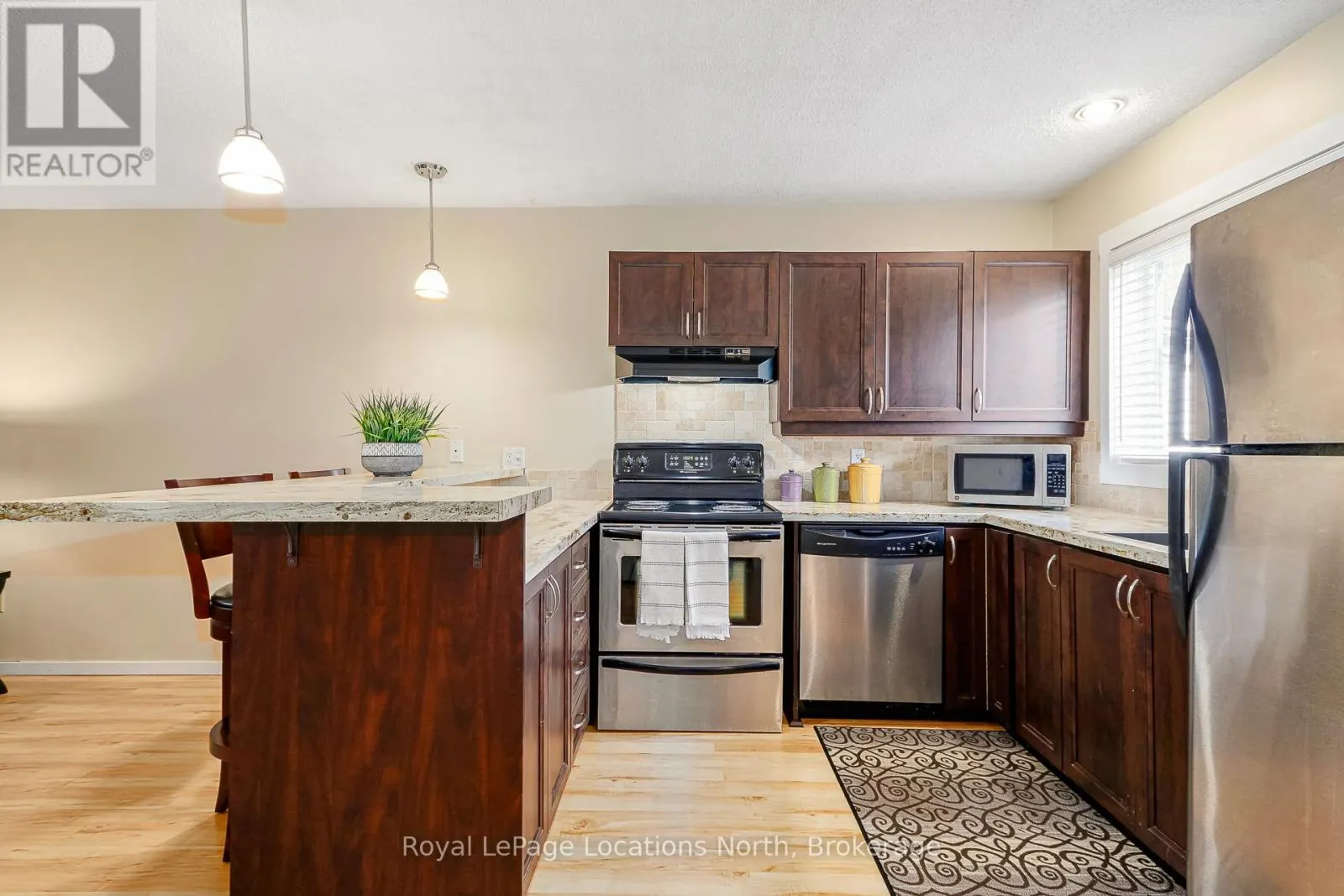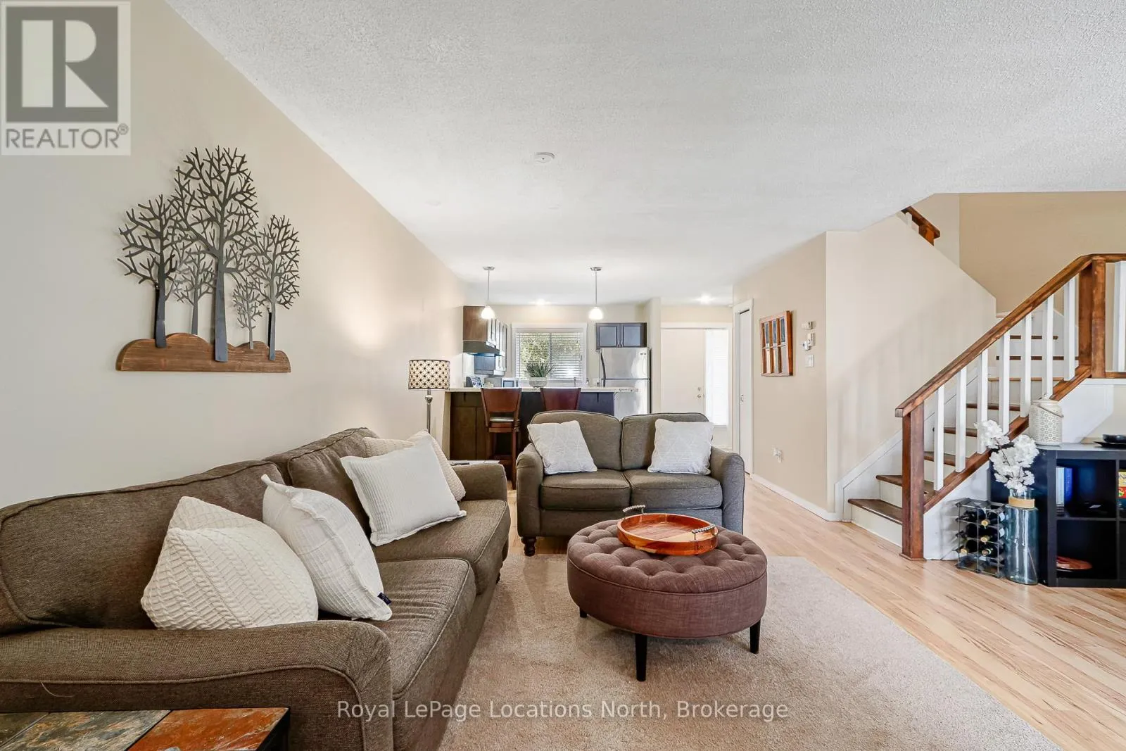 Cross Streets: Dawson Dr to Oxbow. ** Directions: Dawson Dr to Oxbox. Discover this bright, spacious 3-bedroom, 2-bath condo, perfectly located at Livingstone Resort (formerly Cranberry). The open-concept main floor features a beautiful kitchen with stainless steel appliances, ideal for entertaining or quiet relaxation. Enjoy the convenience of a large laundry room and walk-outs from both the living area and the upstairs primary suite, which boasts a generous ensuite and walk-in closet. With durable laminate flooring throughout, a new gas fireplace provides efficient heat, and a gas BBQ hookup on the patio makes outdoor dining a breeze. An outdoor locker offers extra storage. Embrace optional access to Cranberry Resort amenities (for a modest annual fee) and relish being just minutes from the slopes, downtown Collingwood, walking trails, and premier golf courses. (id:27476)