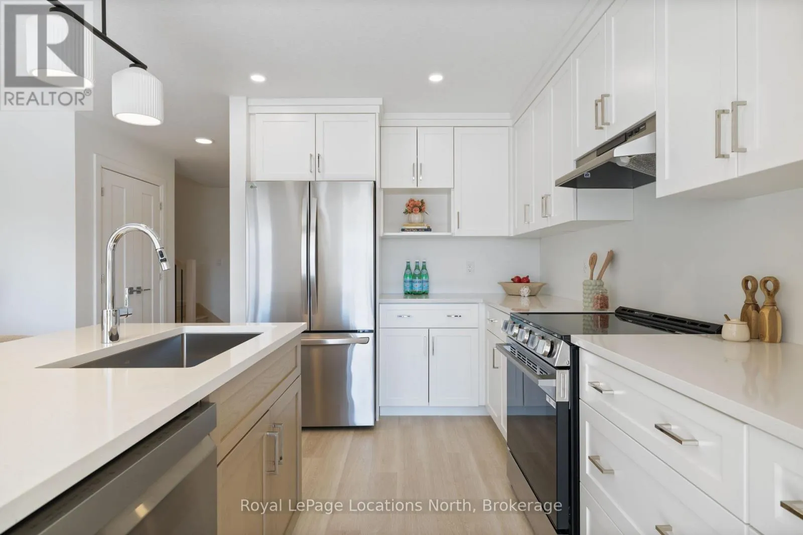 Cross Streets: Portland. ** Directions: Off of Portland. Fall in love with this charming brand new townhouse, offered at an exceptional price! An opportunity to own a brand new, never-lived-in townhouse by award-winning builder Sunvale Homes. This luxury residence truly has it all, starting with a south-facing backyard that fills the home with natural light. Inside, the design is timeless yet modern, featuring warm woods, natural tones, and clean lines throughout. The main floor is perfectly designed for everyday living and entertaining, showcasing a gorgeous kitchen with quartz countertops, a large island, brand new stainless steel appliances, and a spacious dining area. An office nook adds functionality, while the generously sized living room, anchored by a cozy fireplace, is the ideal spot to unwind. A custom white oak-stained staircase leads to the thoughtfully laid-out second level. The primary suite impresses with a large bedroom, walk-in closet, and spa-inspired ensuite complete with a white oak vanity, quartz counters, and a custom glass shower. Two additional bedrooms, a stylish 4-piece main bath, and convenient upstairs laundry complete the level. With its beautiful finishes, brand new appliances, bright south-facing yard, and unbeatable value, this home won't last long! Sod, fence in the backyard, garden package and driveway included. This is the Hamilton Model. Common element fee of $186.62. Price does not include HST. Buyers who qualify under the government rebate program may be eligible for a full HST rebate. Purchasers must verify their eligibility directly with their own legal or financial advisors. (id:27476)