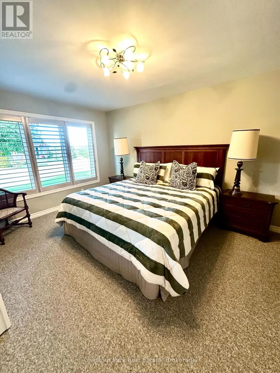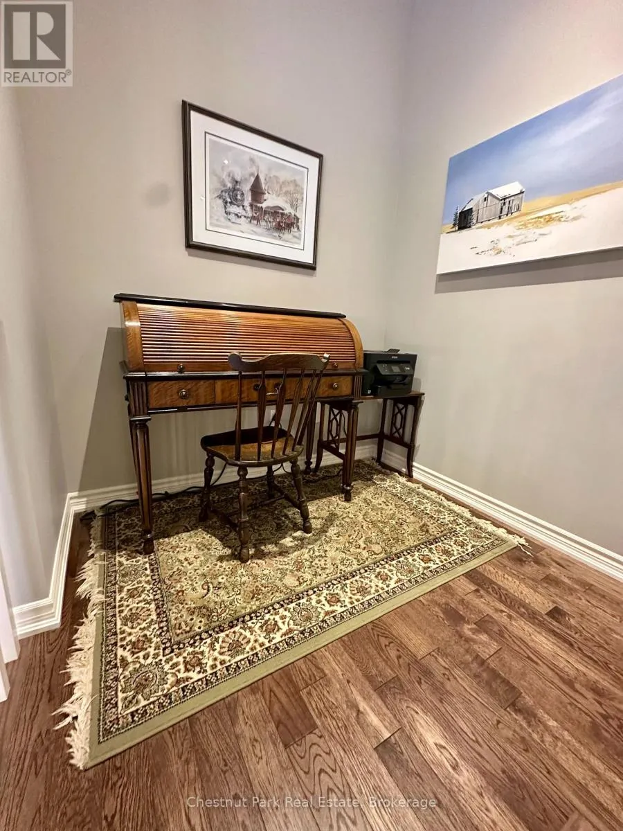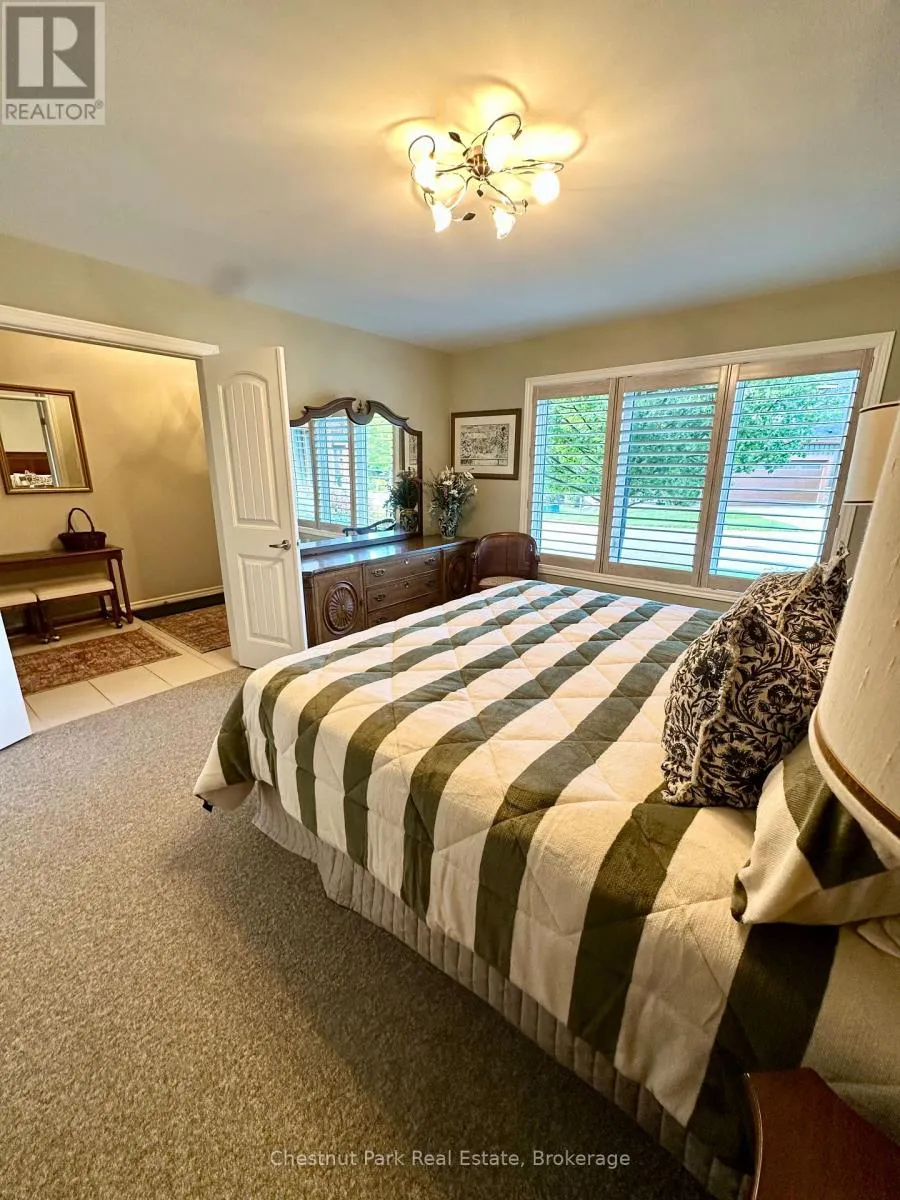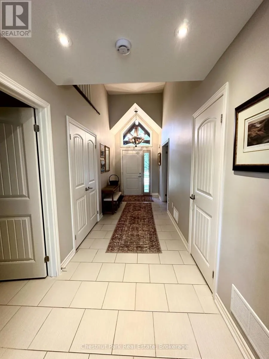 Cross Streets: Cranberry Trail E/Robbie Way. ** Directions: Highway 26 west to Cranberry Trail East. Go south to Robbie Way, then turn left to property. Set against protected green space and the Cranberry Golf Course, this fully furnished townhome offers peaceful escarpment views, forested surroundings, and exceptional privacy. Designed as an executive rental, the home features tasteful décor and quality finishes throughout. The residence offers four bedrooms, including a main-floor primary suite with a king bed, two closets, and a spa-inspired ensuite featuring a walk-in shower and soaking tub. Two queen bedrooms and a full family bathroom are located on the upper level. The lower-level walkout features a fourth queen guest suite with a marble ensuite, a spacious entertainment and TV lounge, a bar-style kitchen with fridge, and additional storage--ideal for guests or extended stays. The open-concept living and dining area is highlighted by cathedral ceilings, expansive windows, California shutters, and a stone-surround gas fireplace that fills the space with warmth and natural light. Step outside to the large walkout deck with glass railings, complete with a gas BBQ and tranquil forest views--perfect for outdoor entertaining. Additional features include three full bathrooms plus a main-floor powder room, a full-size Samsung washer and dryer, and parking for two vehicles with an attached single-car garage and one outdoor space. Lawn care and snow removal are included for added convenience. Offered as a short-term seasonal lease with a minimum term of two months; longer-term leases will be considered. Utilities and damage/cleaning deposits are additional to rent. No pets, smoking, or vaping. Come for a visit and treat yourself to a season in Collingwood--just minutes from ski clubs, Georgian Bay, and the many amenities the area has to offer. This home offers the perfect blend of comfort, convenience, and natural beauty. (id:27476)