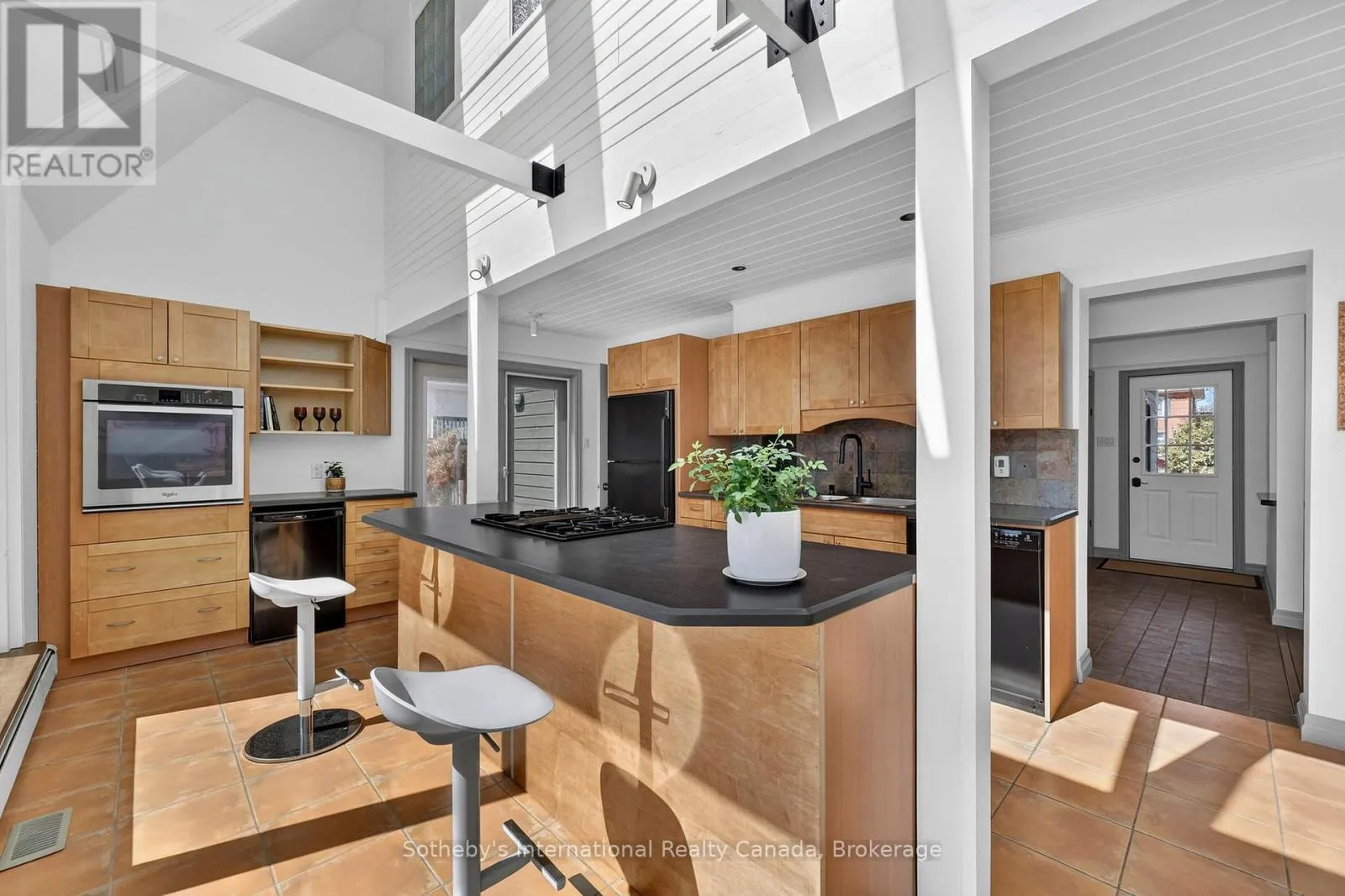 Cross Streets: Oak and Walnut. ** Directions: Sixth St. between Oak and Walnut. Welcome to this uniquely designed custom built 3 bed, 2 bath home set on a full-size town lot in the heart of downtown Collingwood. Offering space, character, and exceptional outdoor features, this property is perfect for families or buyers seeking in-town convenience with room to spread out.The main floor showcases a warm and inviting living/dining area with laminate flooring and a stunning tongue-and-groove ceiling that adds character and charm. The spacious kitchen is a true highlight, featuring wall-to-wall windows that flood the space with natural light, skylights in the kitchen and dining area, rich wood cabinetry, a gas cooktop, built-in oven, Bosch dishwasher, and bar fridge-ideal for both everyday living and entertaining.Upstairs, all three bedrooms feature hardwood flooring, creating a cohesive and timeless feel. Two full bathrooms provide added convenience for family and guests. Comfort is ensured year-round with gas hot water radiator heating and two wall-mounted A/C units in the bedrooms. From your main floor sunroom you can view the fully fenced backyard oasis complete with pergola, hot tub, and two storage sheds-perfect for relaxing or hosting gatherings. The double attached garage and driveway parking for 4 vehicles add practicality rarely found in this prime downtown location.A fantastic opportunity to own a well-appointed home on a full lot just steps from shops, dining, and the waterfront-schedule your private showing today! (id:27476)