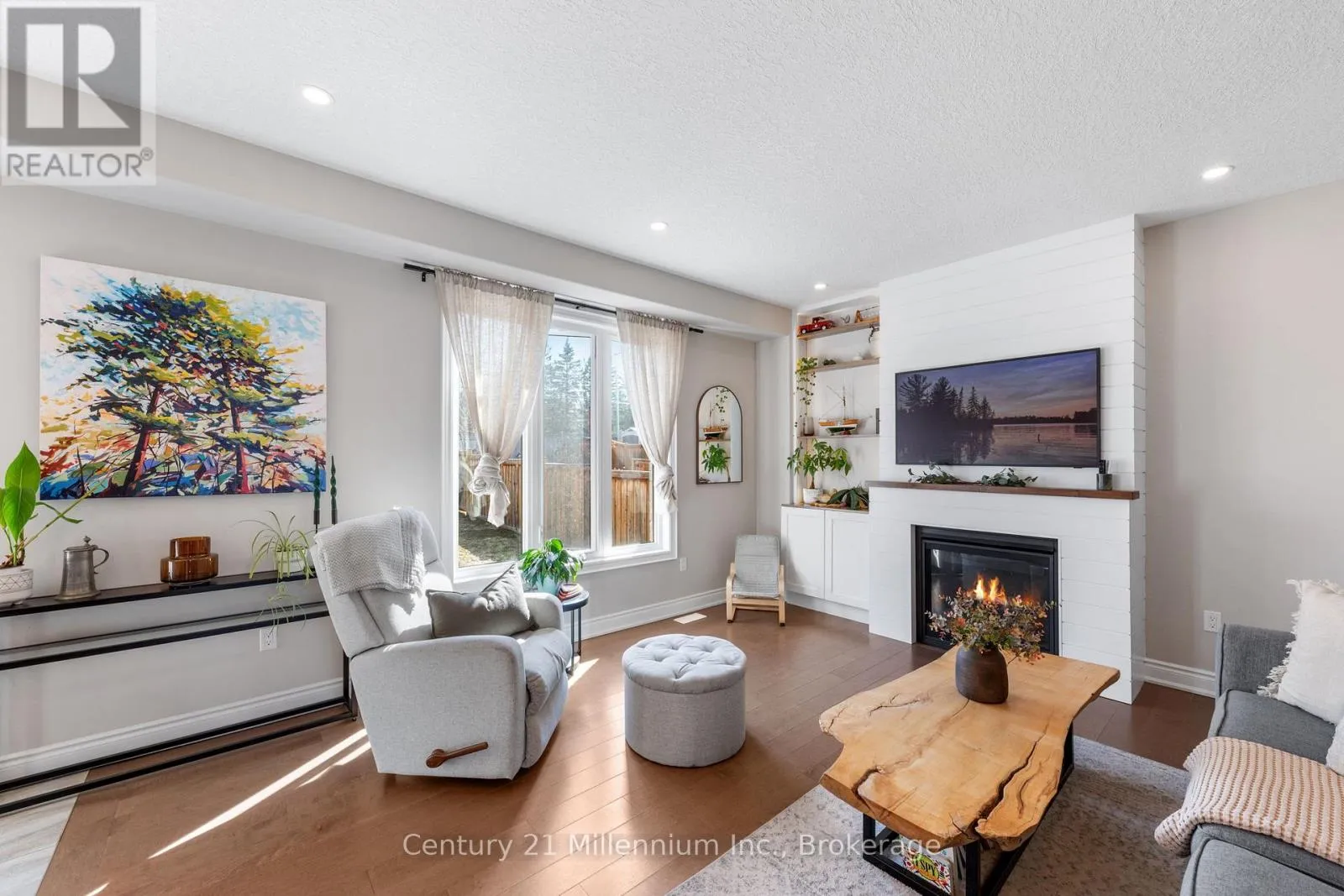 Cross Streets: Poplar Side Road and CLarck street. ** Directions: Hurontario st , west on Poplar Side road, North on Clark st , West on Lockerbie. Welcome to 103 Lockerbie Crescent, nestled in the highly desirable Mountaincroft community by Grandview Homes in Collingwood. This beautifully maintained detached 3+1 bedroom home offers the perfect blend of comfort, style, and functionality just walking distance to schools and parks, and connected to the area's scenic trail system. Step inside to an inviting open-concept layout featuring a bright living room, kitchen, and dining area - ideal for both everyday living and entertaining. Natural light pours in through rear-facing southern windows, creating a warm and welcoming atmosphere. The living room is anchored by a cozy natural gas fireplace, while the kitchen is equipped with quartz countertops, stainless steel appliances, a gas oven and ample space for gathering. A grand oak staircase adds an elegant touch to the home. Hardwood flooring flows throughout the main living areas, with plush carpeting in the bedrooms for added warmth and comfort. The fully finished basement extends your living space, complete with a stylish fireplace, shiplap accent features, and a versatile additional bedroom or home office. Outside, enjoy a fully fenced backyard designed for relaxation and entertaining, featuring a spacious deck and a convenient garden shed. Located in a family-friendly neighbourhood close to trails, parks, and all that Collingwood has to offer, this home is a must-see. (id:27476)
