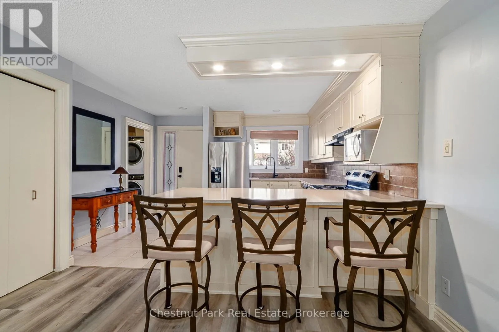 Cross Streets: Dawson Drive & Oxbow Crescent. ** Directions: Head west on Highway 26, turn left onto Keith Avenue then right onto Dawson Drive and then left onto Oxbow and #522. Peaceful and Private location in Cranberry. Close to all the local trails for biking and hiking and just a few minutes from downtown Collingwood & Blue Mountain. Make this your permanent home or ideal weekend get-away in the heart of this stunning 4 Season Recreation area. 3 Bed, 2 Bath combines modern, contemporary main floor living w/Kitchen/Dining/Living Rm. Kitchen has lovely quartz counter tops with ample preparation area. Door off Dining Room to rear patio area which is surrounded by greenery and not overlooked by neighbours. On the 2nd floor you will find an oversized Primary Bed w/4PC en-suite. The 2nd & 3rd bedrooms share a separate 4PC bath. Relax & enjoy the peace and outdoor tranquility this beautiful area has to offer. Book your showing today and get set to enjoy Summer in this sought after Ontario location. (id:27476)