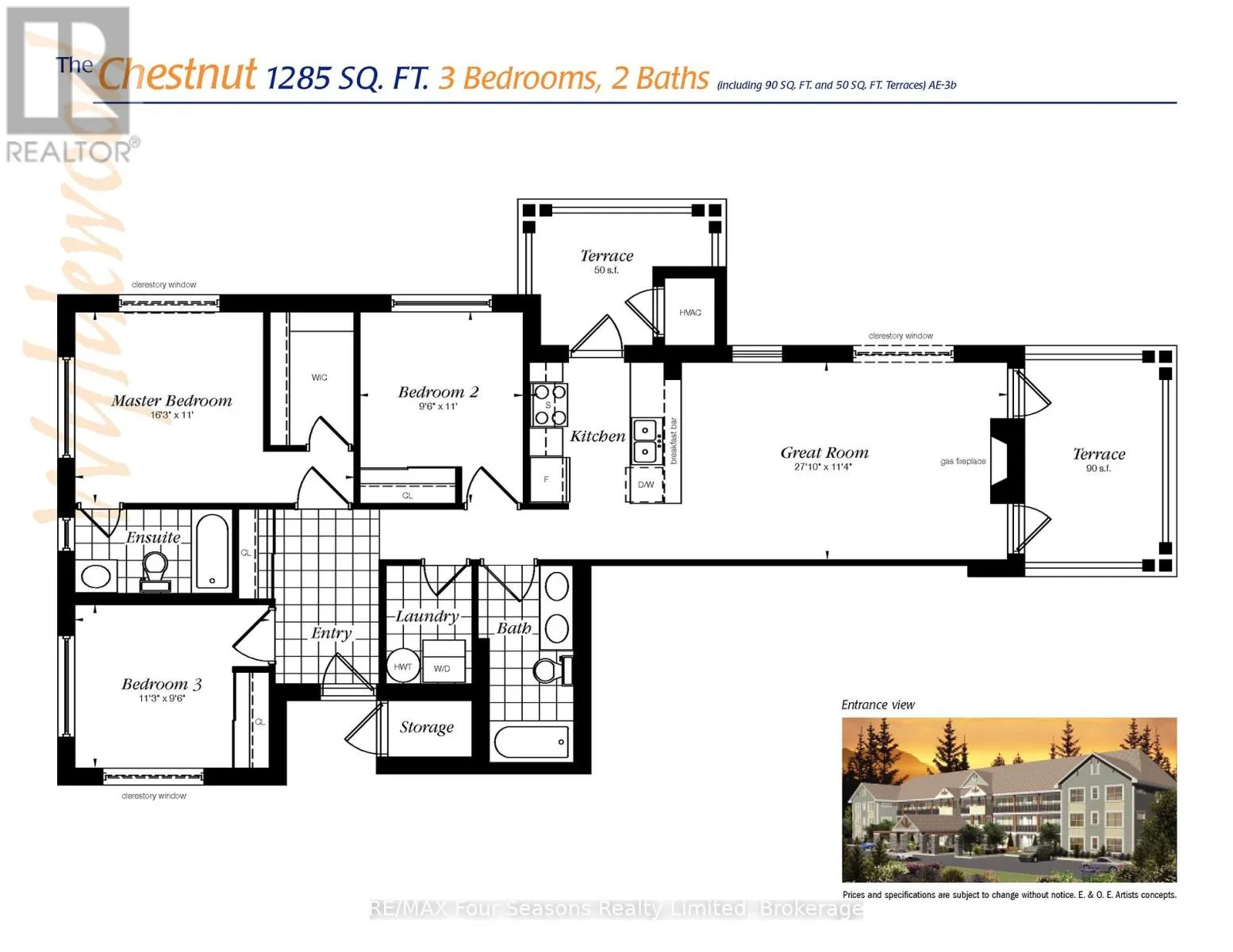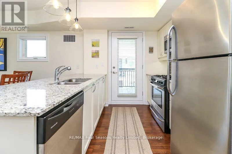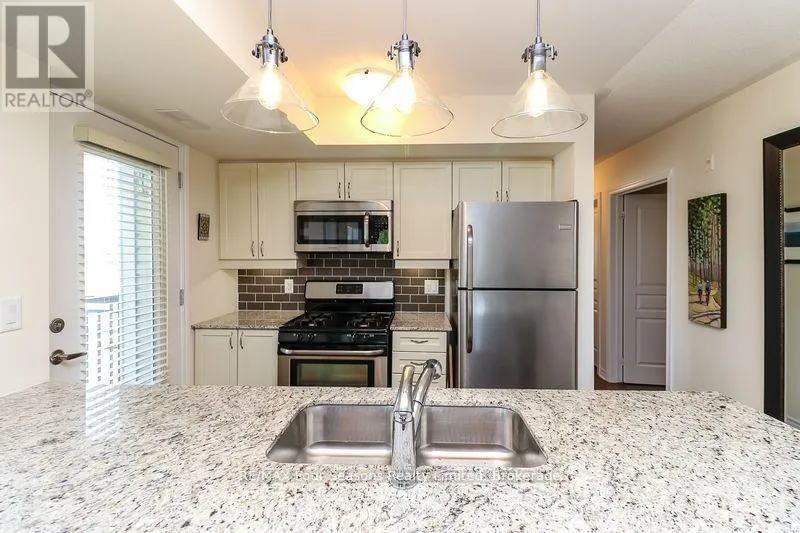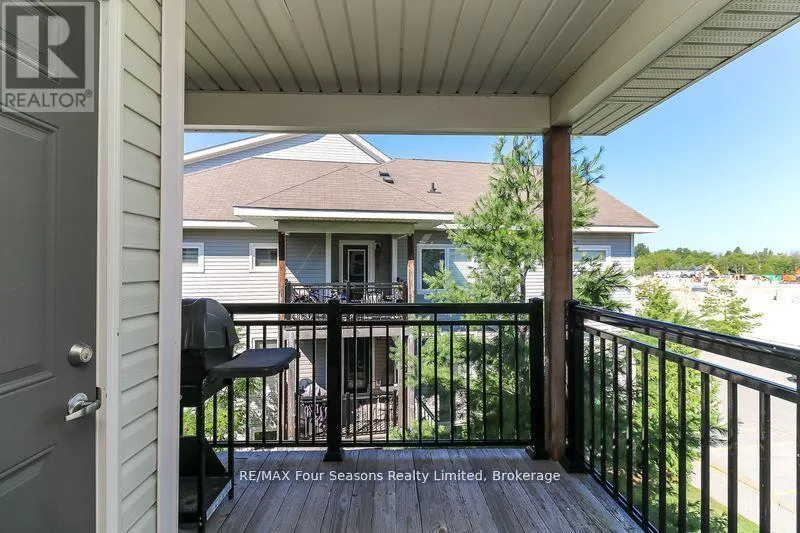 Cross Streets: Cranberry Trail and Brandy Lane. ** Directions: Hwy 26 to Cranberry Trail, turn right on Brandy Lane Drive to Building 6. Perfect as a weekend retreat or permanent home in Collingwood's desirable Wyldewood development! Beautifully designed 3 bedroom, 2 bathroom end unit with open concept kitchen/dining/living area, central air, gas fireplace and 2 balconies!! Well equipped kitchen with stainless steel appliances, pendant lights, granite island and counters. Large windows throughout provide plenty of natural light. Entertain guests with views of the mountains and mature forest from large covered balcony, as well an additional balcony just off kitchen with gas hook-up, perfect for barbequing! Enjoy the convenience of a deeded parking space located at front entrance with elevator to third floor and ample visitor parking. Large exclusive storage locker beside front door of unit is a perfect space for all of your outdoor sporting and seasonal equipment. Enjoy the all-year-round heated outdoor swimming pool! Central location close to extensive hiking, walking and biking trails, Georgian Bay, the Village at Blue, golf, skiing and shopping, the list goes on. Brandy Lane is a popular community with four seasons activities at its doorstep! You are not just buying a home, you are buying a lifestyle! (id:27476)