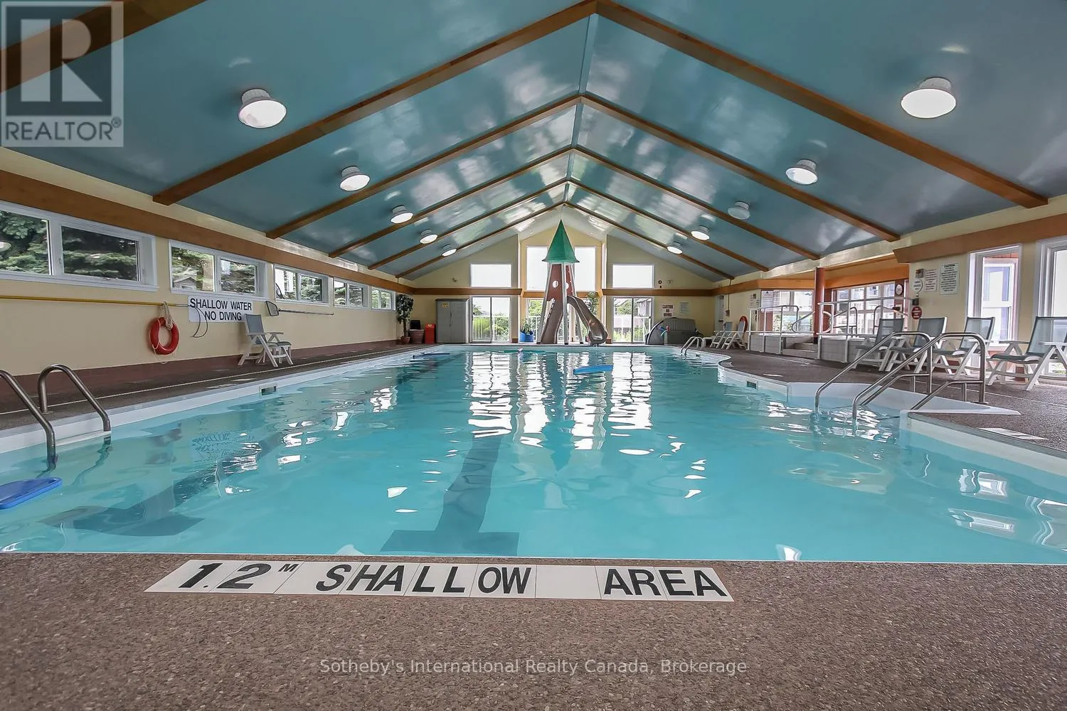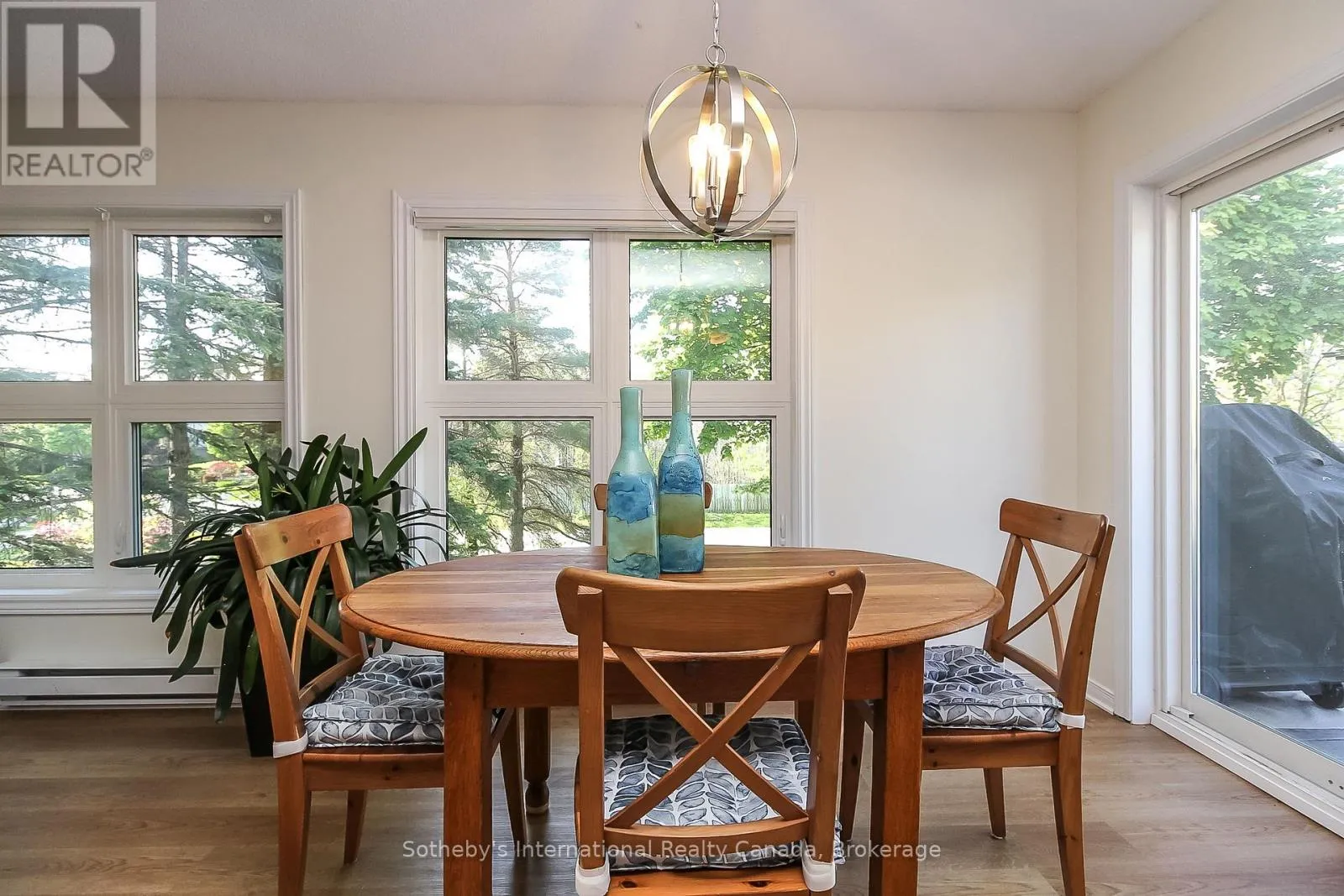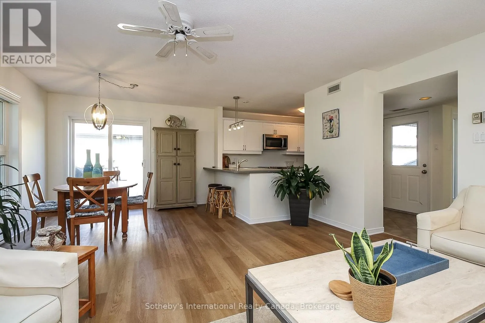 Cross Streets: Lighthouse Lane & Johnston Park Ave. ** Directions: Hwy 26 West to Lighthouse Pt. Straight ton Lighthouse Lane to Johnston Park. Left at stop sign & it is 1st driveway on right. Bldg is on right, unit is on 2nd floor. Highly desirable "Aster" floor plan located on 2nd floor of a 2 storey building in the popular waterfront community of Lighthouse Point. This spacious 2 bedroom corner suite has a huge deck (approx 500 sq ft) & generous detached garage. May 2023 updates includes fresh paint throughout, new sink/vanities, & toilets, painted kitchen cabinetry & fireplace servicing. Prior improvements include laminate flooring & new carpet (2022), composite decking (2015), stainless appl (2021) in kitchen. Other features are Hunter Douglas blinds throughout, gas BBQ hook up on deck, & built-in closet shelving. The large king-sized Primary Bedroom has expansive windows w/juliet balcony & generous ensuite. The guest bedroom can easily fit a king or double set of bunk beds allowing for plenty of sleeping configurations. Surrounded by large trees for privacy, this is fabulous as a weekend retreat or as a full time residence. Enjoy all the on-site amenities including 2 private beaches, 9 tennis courts (inc. pickleball), 2 outdoor pools, private marina, over 2 km of waterfront walking trails along Georgian Bay, and a huge recreation centre with indoor pool, hot tubs, sauna, party room, fitness room, children's games room, and more! Book your showing today and start enjoying life in highly sought after Lighthouse Point. (id:27476)