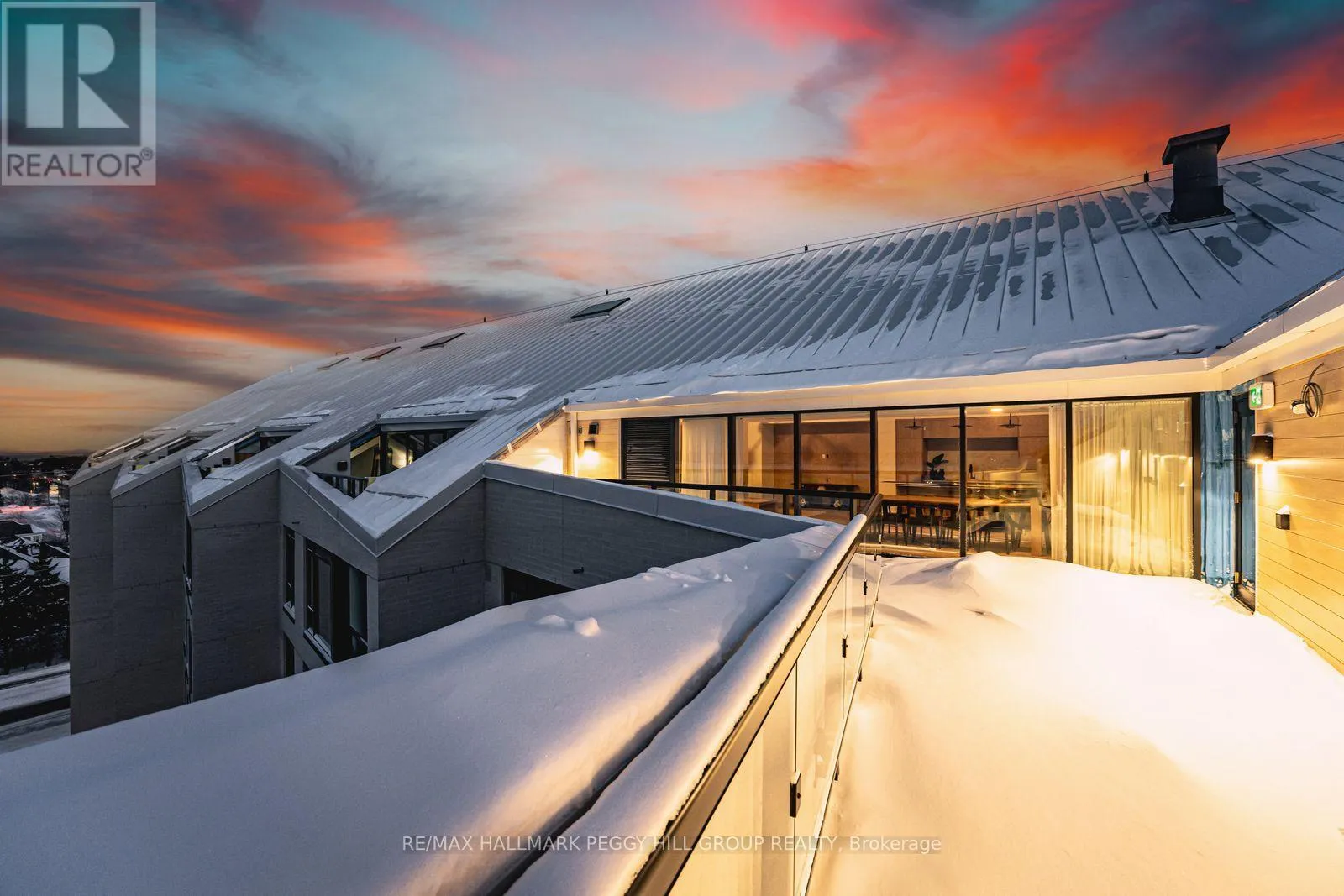 Cross Streets: Hurontario St/Huron St. ** Directions: Hwy 400/Hwy 26/Hume St/Hurontario St/Huron St. HARBOUR HOUSE CONDO FOR LEASE WITH PANORAMIC VIEWS, UPSCALE FINISHES, INDOOR PARKING & PRIVATE LOCKER! Wake up to panoramic views of Blue Mountain, Georgian Bay, and downtown Collingwood from this exceptional 4th-floor suite at Harbour House, one of the area's most impressive newer luxury condominium residences. Set in the heart of Collingwood, boutique shops, restaurants, and daily essentials are right outside your door, while Sunset Point Beach, shoreline trails, and waterfront parks are all within a short stroll. Floor-to-ceiling windows make the most of the view, filling the open-concept layout with natural light and showcasing hardwood flooring throughout. A designer kitchen anchors the space with a waterfall island, quartz countertops, and integrated appliances, while the bright living area opens to a private balcony overlooking the spectacular surroundings. The layout includes a primary bedroom with semi-ensuite access to a 3-piece bathroom, plus a versatile den ideal for a home office or overnight guests. Residents enjoy access to building amenities including a fitness centre, pet spa, rooftop lounge with outdoor terrace, gear prep room, bike storage, media room, and two guest suites. An indoor parking space and private storage locker are also included. With Blue Mountain just minutes away and easy access to skiing, snowboarding, cycling routes, and scenic trails, this #HomeToStay offers an exceptional lifestyle in every season. (id:27476)