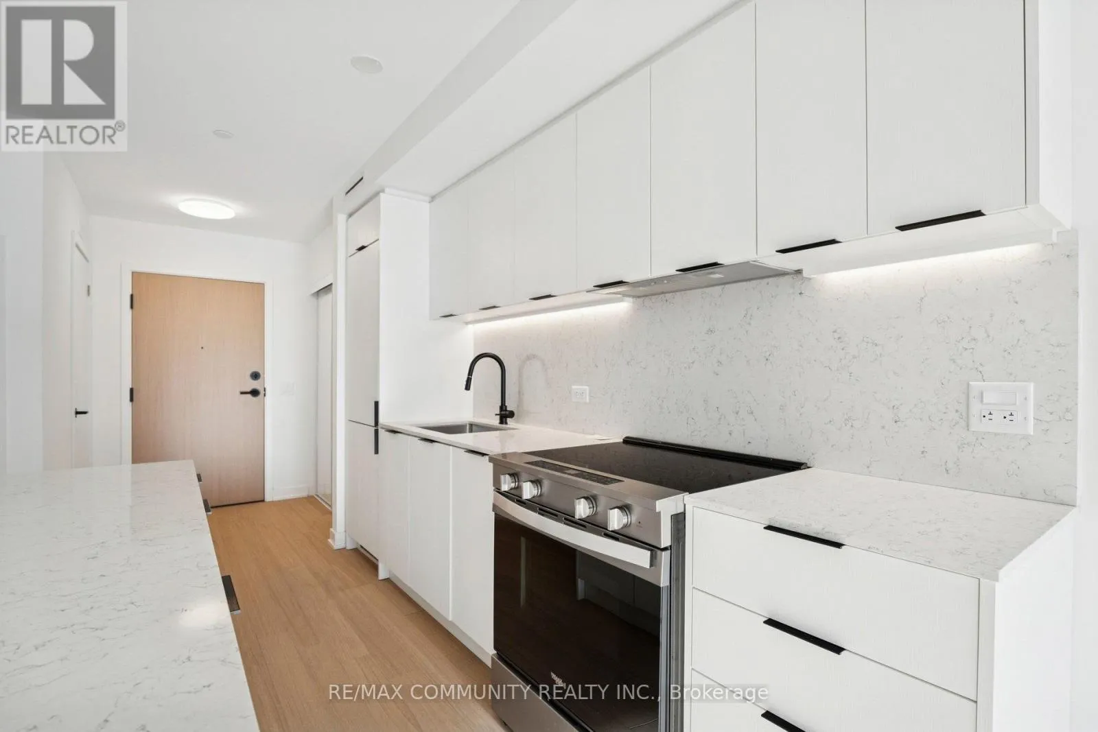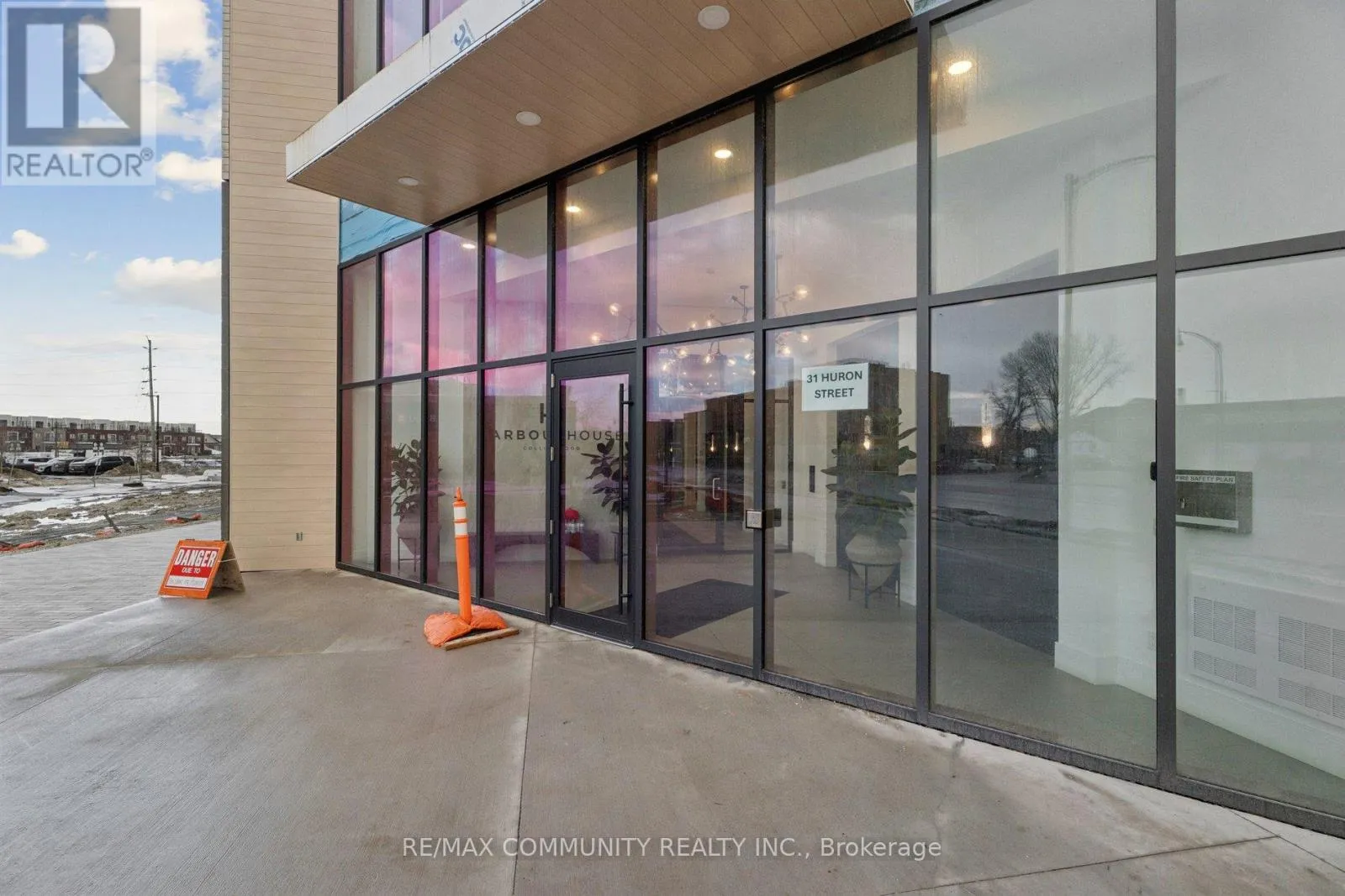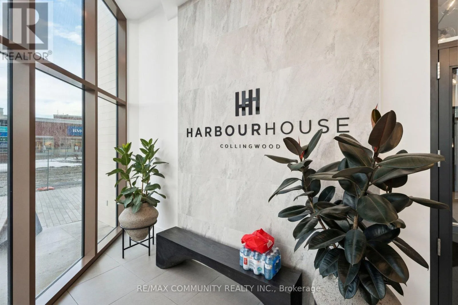 Huron St. and Heritage Drive Exquisite never-lived-in 1 bed + den suite in the heart of Harbour House, Collingwood's premierwaterfront condominium residence. Boasting approximately 745 sq ft of thoughtfully designedliving space, this sophisticated suite features an open-concept layout with abundant naturallight from oversized windows and seamless indoor-outdoor flow to your private balcony. Themodern kitchen is finished with quartz countertops, integrated appliances, stylish cabinetryand a functional breakfast bar -- perfect for entertaining or everyday living. The spaciousliving/dining area connects to the balcony, extending your living space and providing viewstoward the vibrant downtown and waterfront. A serene primary bedroom offers comfort andconvenience, while the versatile den creates an ideal home office, guest nook or extra storage.Premium suite features include 9-ft ceilings, contemporary finishes and an underground parkingspace with private storage locker. Residents of Harbour House enjoy an inspired amenitycollection including a fitness studio, rooftop party room and terrace with panoramic waterviews, guest suites, dedicated pet wash and gear wash room -- all just steps from the harbour,trails, boutique shops and dining that define Collingwood's vibrant lifestyle. (id:27476)
