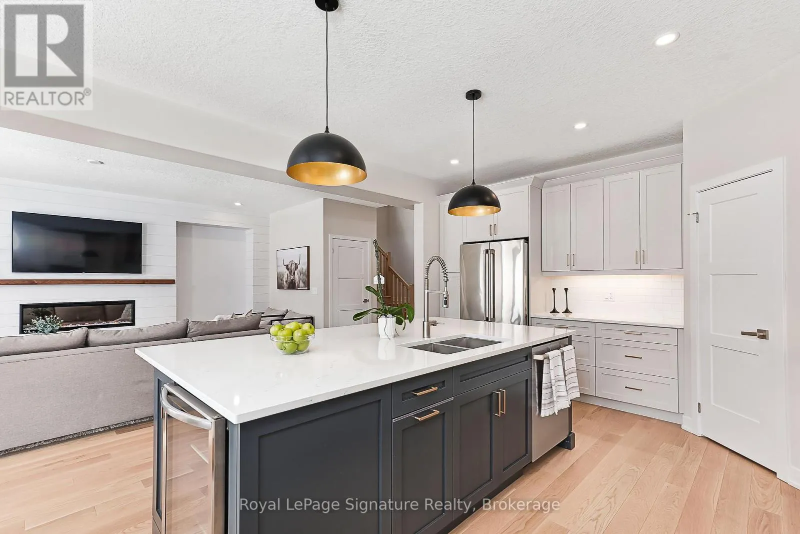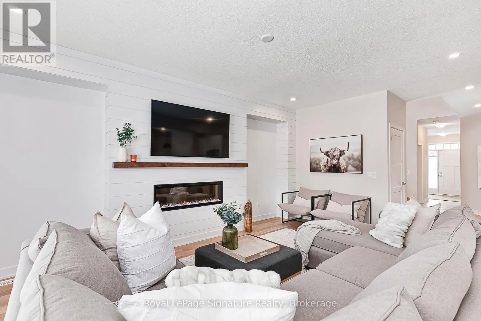 Cross Streets: Rowland Street. ** Directions: Poplar Side Road to Rowland Street to Shipley Ave. Welcome to 73 Shipley Ave, nestled in the highly sought-after Summit View community by Devonleigh Homes. Tucked away on a quiet court with minimal traffic, this location offers the perfect blend of privacy and family-friendly living. The "Middleton" model showcases over 2,400 sq/ft of thoughtfully designed living space with a functional, well-appointed layout. From the moment you step inside, you're greeted by bright, neutral finishes and elevated craftsmanship that immediately feel like home. The open-concept main floor is ideal for modern family living and effortless entertaining. At the heart of the home is the stunning chef-inspired kitchen, seamlessly overlooking the living area and spacious dining zone-perfect for everything from everyday meals to hosting gatherings. Featuring white oak hardwood flooring, upgraded cabinetry, quartz countertops, an extended breakfast bar, and a walk-in pantry, this space truly delivers on both style and function. Sliding doors lead to the backyard and interlock patio-ready for summer BBQs and outdoor enjoyment. The living room offers a cozy yet refined atmosphere with a sleek electric fireplace and shiplap accents. A practical mudroom with garage access and additional storage adds everyday convenience. Upstairs, you'll find four generously sized bedrooms, two full bathrooms, and a dedicated laundry room. The primary suite is a true retreat, complete with a beautifully upgraded 5-piece ensuite and an oversized walk-in closet. The unfinished basement provides a blank canvas-offering endless potential to create additional living space and add future value. With over $150,000 in upgrades, this home shows like a model from top to bottom. Located in a vibrant, family-oriented neighbourhood with access to trails, parks, playgrounds, schools, and just minutes to the ski hills and waterfront. This is the lifestyle you've been waiting for! (id:27476)