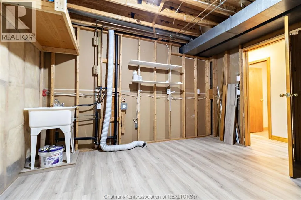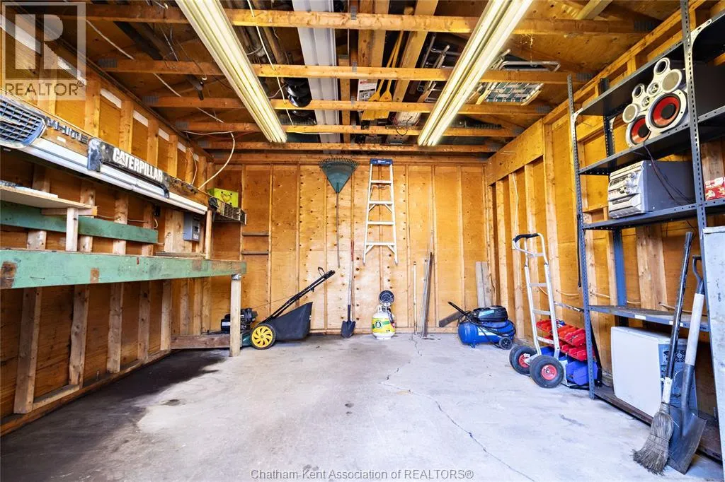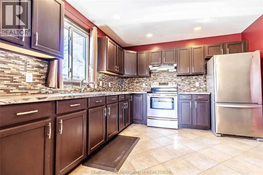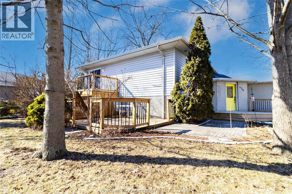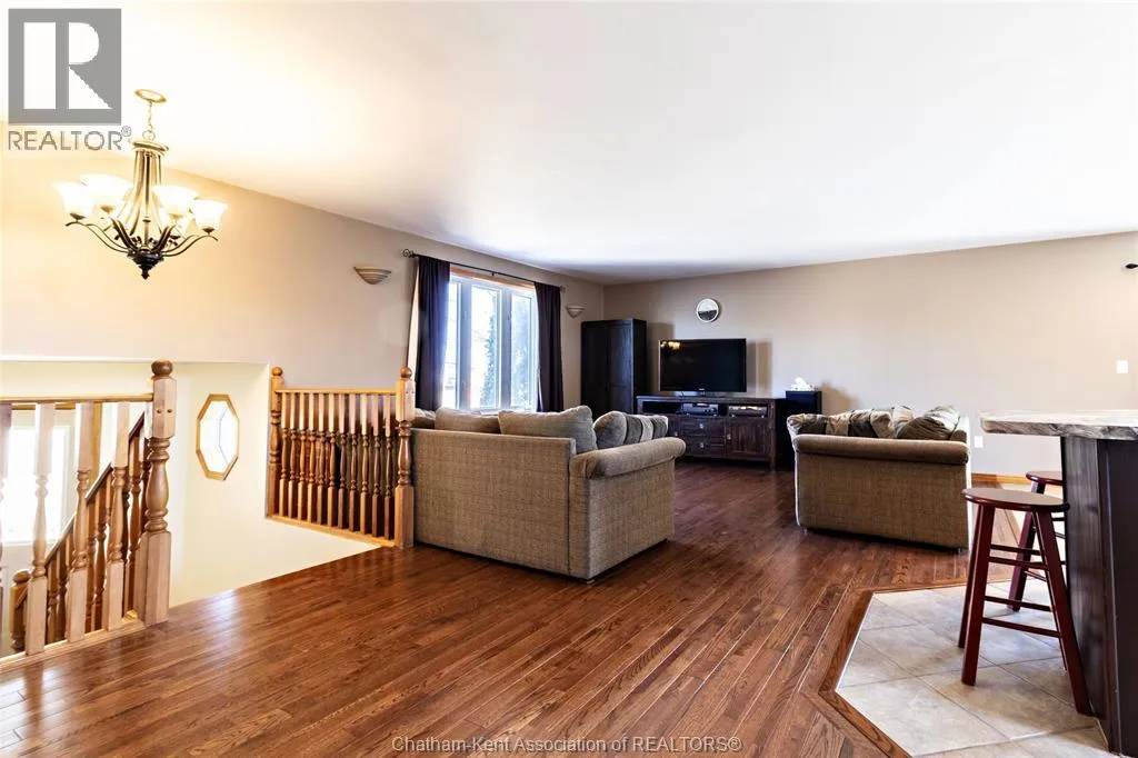 Main Street of Comber to Wallace street, on the corner. Welcome to this well-maintained raised ranch, perfectly situated on a generous 94 x 129 corner lot with exceptional parking options. Enjoy a cement driveway extended along the side of the home, plus additional parking for toys or trailers tucked behind a 16â x 14â shed complete with 220-amp electrical. The beautifully landscaped yard features mature trees that provide excellent privacy during the summer months, along with a newer deck ideal for outdoor entertaining and newer decking on the front porch. Built in 1998, this home includes a 2-car attached garage with inside entry and a bright, functional layout with extra-wide entryway, staircases, and hallways, creating an open and welcoming feel. The main floor offers open-concept living, kitchen, and dining areas, with patio doors leading directly to the deck. Engineered hardwood flows throughout the main level, complemented by ceramic tile in the kitchen, dining area, and bathroom. Three generously sized bedrooms are located on the main floor, including a primary bedroom with cheater access to a large full bathroom. The fully finished basement is enhanced by large windows that provide an abundance of natural light, creating a bright and inviting lower level. This space includes vinyl flooring, two additional large bedrooms, a second full bathroom, a spacious laundry/utility room, and a large open area ideal for a rec room, games space, or bar. Ideally located on the edge of town, this home is within walking distance to local amenities and offers quick access to Highway 401 just down the street, making commuting simple and convenient. This property has been lovingly cared for and is move-in ready, making it an excellent choice for a growing family. Schedule your private showing today before itâs gone! (id:27476)