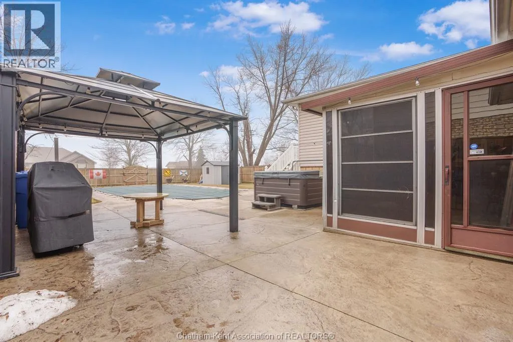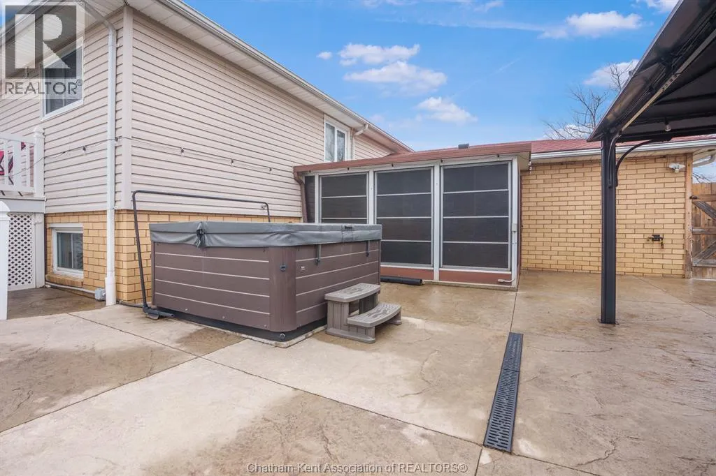middle road- to Raymond- To William Discover this expectational rancher in the quiet community of Comber! Conveniently located just 3 minutes from Hwy 401. The fully fenced-in backyard has been converted into the ultimate summertime oasis with a heated inground 5.5 ft deep saltwater sports pool, 6 person hot tub, fire pit, and a gazebo, and three season sunroom! The front foyer leads to an open concept living room/dining room/kitchen, featuring updated cabinets and new large front windows that bring in loads of natural light (2020). The primary bedroom is tucked away at the back of the home, with garden doors leading to your private vinyl deck overlooking the yard. The lower level features a spacious second living room with a cozy gas fireplace (2022), a bathroom, and two bedrooms, Revamped lower level bathroom! New dishwasher (2025) New pool pump (2025) Large maintenance items have been taken care of with a new hot water heater in 2019, new sump pump in 2021, and a new roof in 2015. The home shows incredibly well! You will not be disappointed in this one! Sauna included in sale. Sellers would like some time to find their next home. (id:27476)